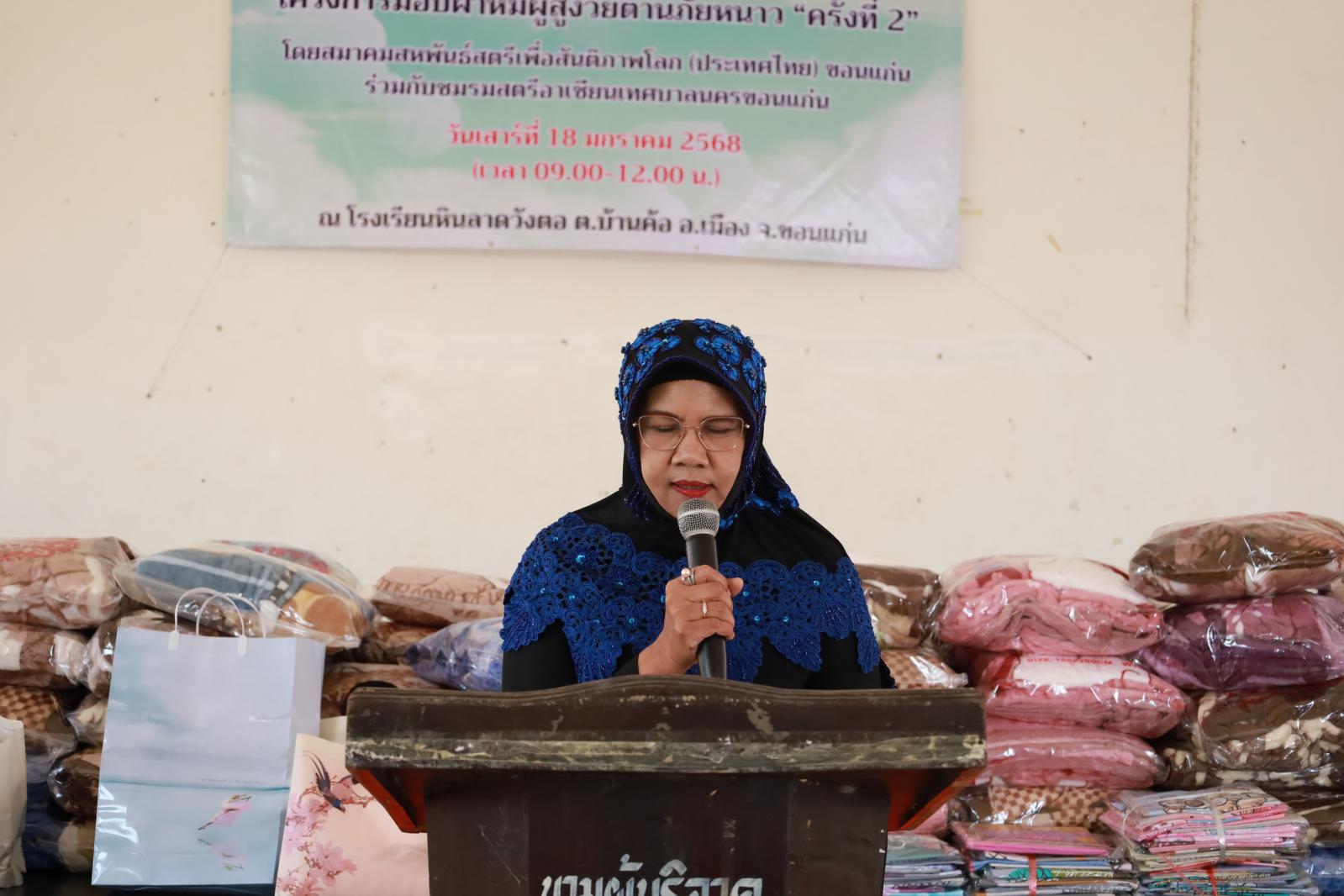 เมื่อวันที่ 18 มกราคม 2568 เวลา 09.00 น. นายวัฒนา ช่างเหลา นายกองค์การบริหารส่วนจังหวัดขอนแก่น มอบหมายให้ นางอาซีซะห์ ว่องไว รองปลัดองค์การบริหารส่วนจังหวัดขอนแก่น เป็นประธานเปิดงานโครงการมอบผ้าห่มผู้สูงวัยต้านภัยหนาว ครั้งที่ 2 โดยมี สมาคมสหพันธ์สตรีเพื่อสันติภาพโลก (ประเทศไทย) พร้อมมอบผ้าห่มให้ผู้สูงอายุจำนวน 20 หมู่บ้าน ๆ ละ 5 ท่าน รวมเป็น 100 ท่าน ณ โรงเรียนบ้านลาด ต. บ้านค้อ อ.เมือง จ.ขอนเเก่น