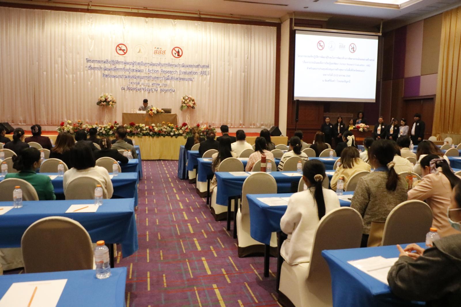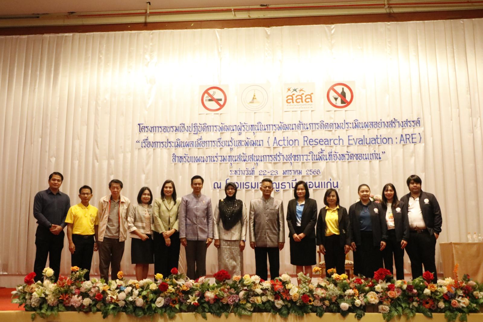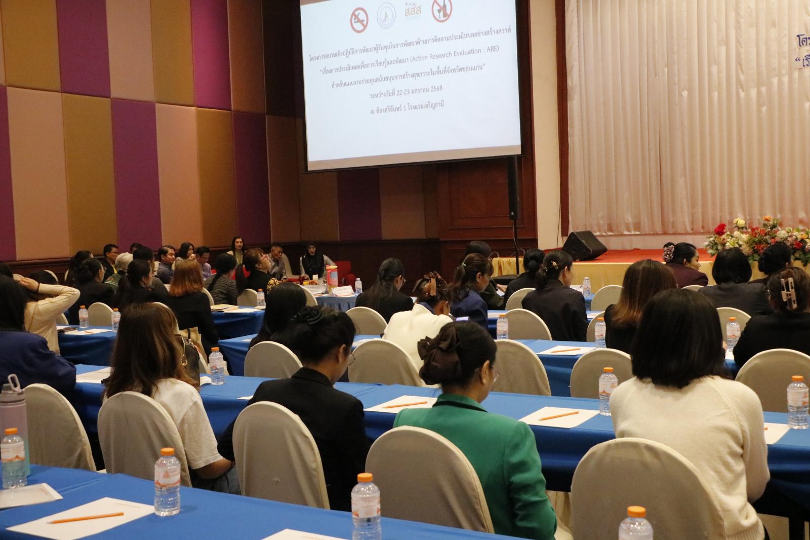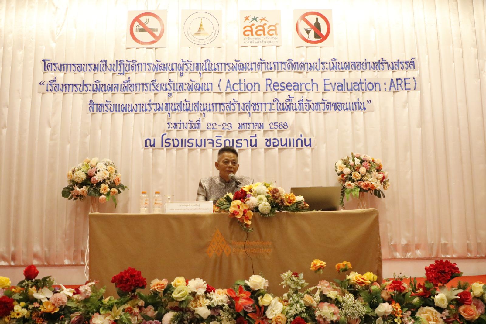 พิธีเปิดโครงการอบรมเชิงปฎิบัติการพัฒนาด้านการติดตามประเมินผลอย่างสร้างสรรค์ (แผนงานร่วมทุนสนับสนุนการสร้างสุขภาวะในพื้นที่จังหวัดขอนแก่น)