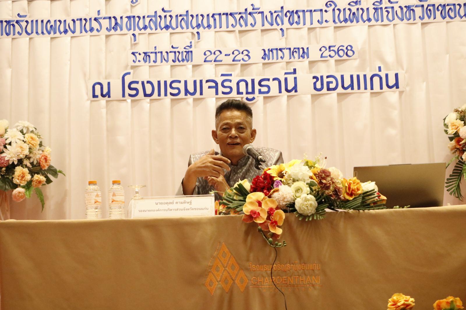 เมื่อวันที่ 22 มกราคม 2568 เวลา 09.30 น. องค์การบริหารส่วนจังหวัดขอนแก่น นำโดย นายวัฒนา ช่างเหลา นายกองค์การบริหารส่วนจังหวัดขอนแก่น มอบหมายให้ นายอดุลย์ คามดิษฐ์ รองนายกองค์การบริหารส่วนจังหวัดขอนแก่น เป็นประธานในพิธีเปิดโครงการอบรมเชิงปฎิบัติการพัฒนาด้านการติดตามประเมินผลอย่างสร้างสรรค์ (แผนงานร่วมทุนสนับสนุนการสร้างสุขภาวะในพื้นที่จังหวัดขอนแก่น) โดยมี นางสาวนิศากร ดอนกระสินธุ์ ผู้อำนวยการกองสาธารณสุข กล่าวรายงาน ในโอกาสนี้มี นางอาซีซะห์ ว่องไว รองปลัดองค์การบริหารส่วนจังหวัดขอนแก่น นายสุวนัย ภูมาศ ผู้อำนวยการกองการเจ้าหน้าที่ นางสาวกรวรรณ จุ้มอังวะ ผู้อำนวยการกองคลัง นางทิพานัน นามวิจิตร เลขานุการองค์การบริหารส่วนจังหวัดขอนแก่น ผศ.ดร.วิบูลย์ วัฒนนามกุล ภาคีเครือข่าย สสส. ผู้รับทุน คณะทำงานภายใต้แผนงานร่วมทุนฯ ข้าราชการ และเจ้าหน้าที่ สังกัดองค์การบริหารส่วนจังหวัดขอนแก่น เข้าร่วมพิธี ณ ห้องศรีจันทร์ 1 โรงแรมเจริญธานี อ.เมืองขอนแก่น จ.ขอนแก่น