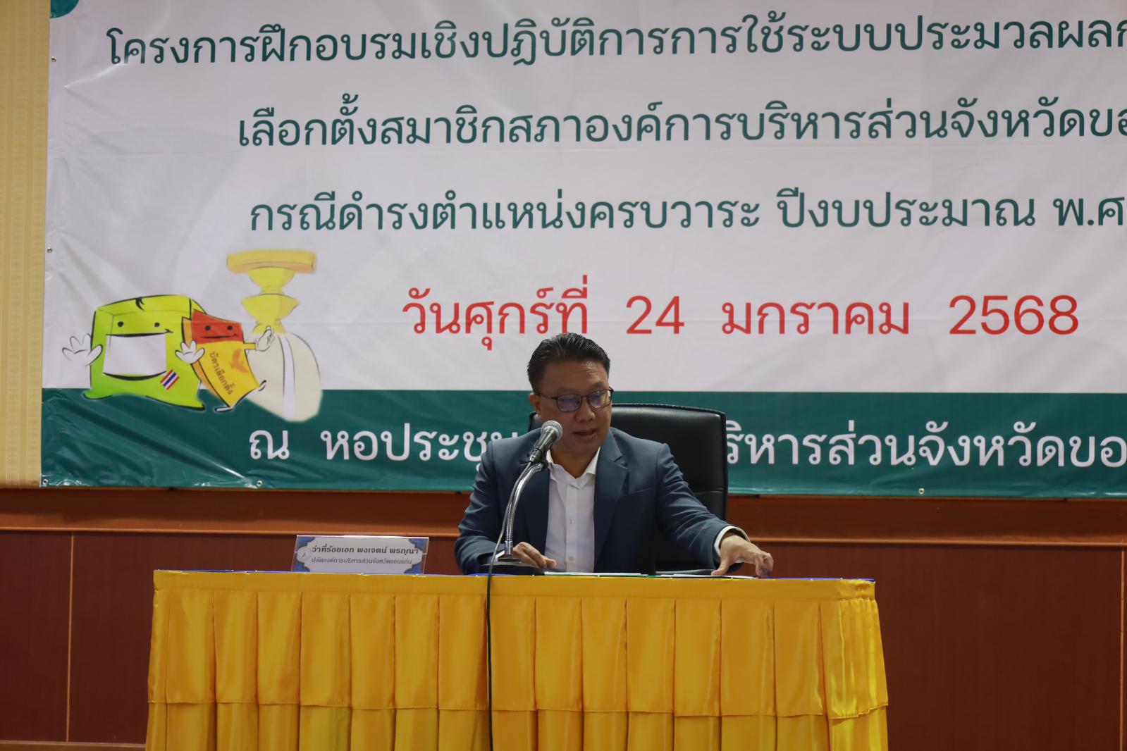 เปิดโครงการฝึกอบรมเชิงปฏิบัติการการใช้ระบบประมวลผลการรวมคะแนน เลือกตั้งสมาชิกสภาองค์การบริหารส่วนจังหวัดขอนเเก่น กรณีดำรงตำเเหน่งครบวาระ ปีงบประมาณ พ.ศ. 2568