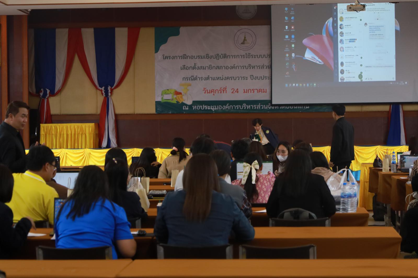 เมื่อวันที่ 24 มกราคม 2568 เวลา 09.00 น. นายวัฒนา ช่างเหลานายกองค์การบริหารส่วนจังหวัดขอนแก่น มอบหมายให้ ว่าที่ร้อยเอกพงเจตน์ พรกุณา ปลัดองค์การบริหารส่วนจังหวัดขอนแก่น เป็นประธานเปิดโครงการฝึกอบรมเชิงปฏิบัติการการใช้ระบบประมวลผลการรวมคะแนน เลือกตั้งสมาชิกสภาองค์การบริหารส่วนจังหวัดขอนเเก่น กรณีดำรงตำเเหน่งครบวาระ ปีงบประมาณ พ.ศ. 2568 โดยมี นางอาซีซะห์ ว่องไว รองปลัดองค์การบริหารส่วนจังหวัดขอนเเก่น นายมนตรี สิมมาคำ หัวหน้ากลุ่มงานจัดการเลือกตั้งเเละการมีส่วนร่วม สำนักงานคณะกรรมการการเลือกตั้งประจำจังหวัดขอนเเก่น พร้อมด้วยหัวหน้าส่วนราชการ ข้าราชการ พนักงาน เข้าร่วมด้วย ณ หอประชุมองค์การบริหารส่วนจังหวัดขอนเเก่น