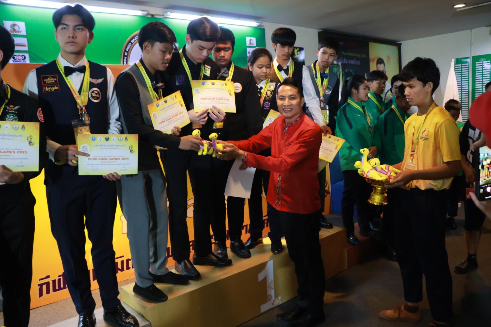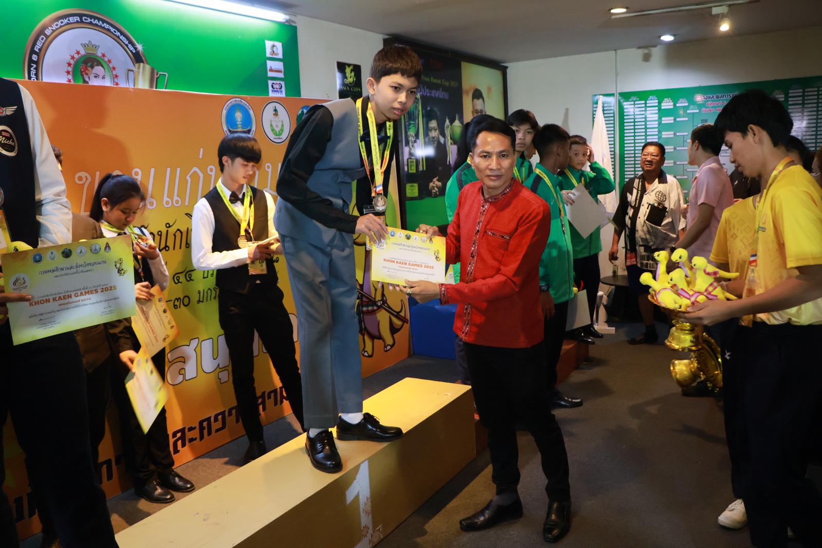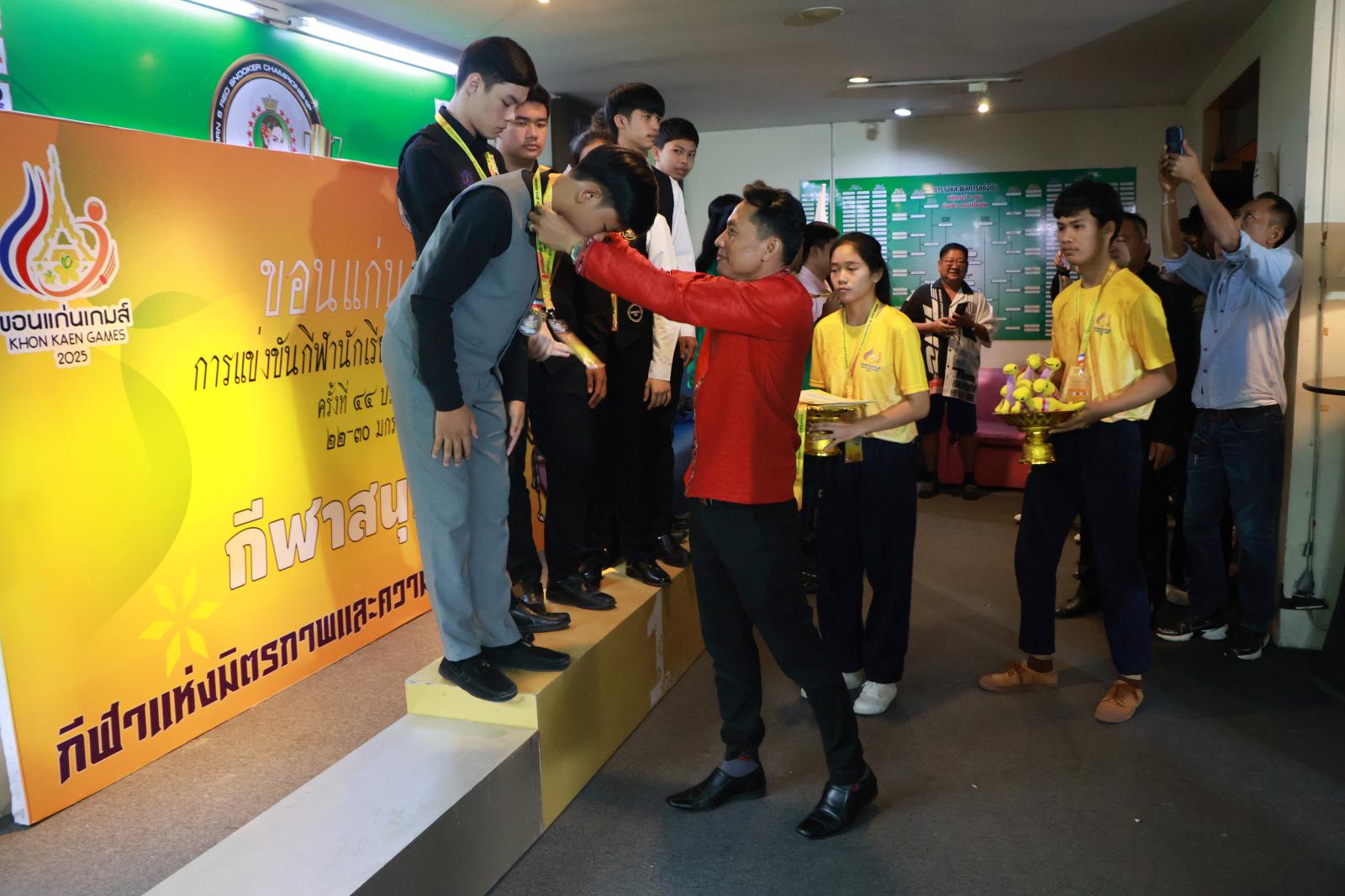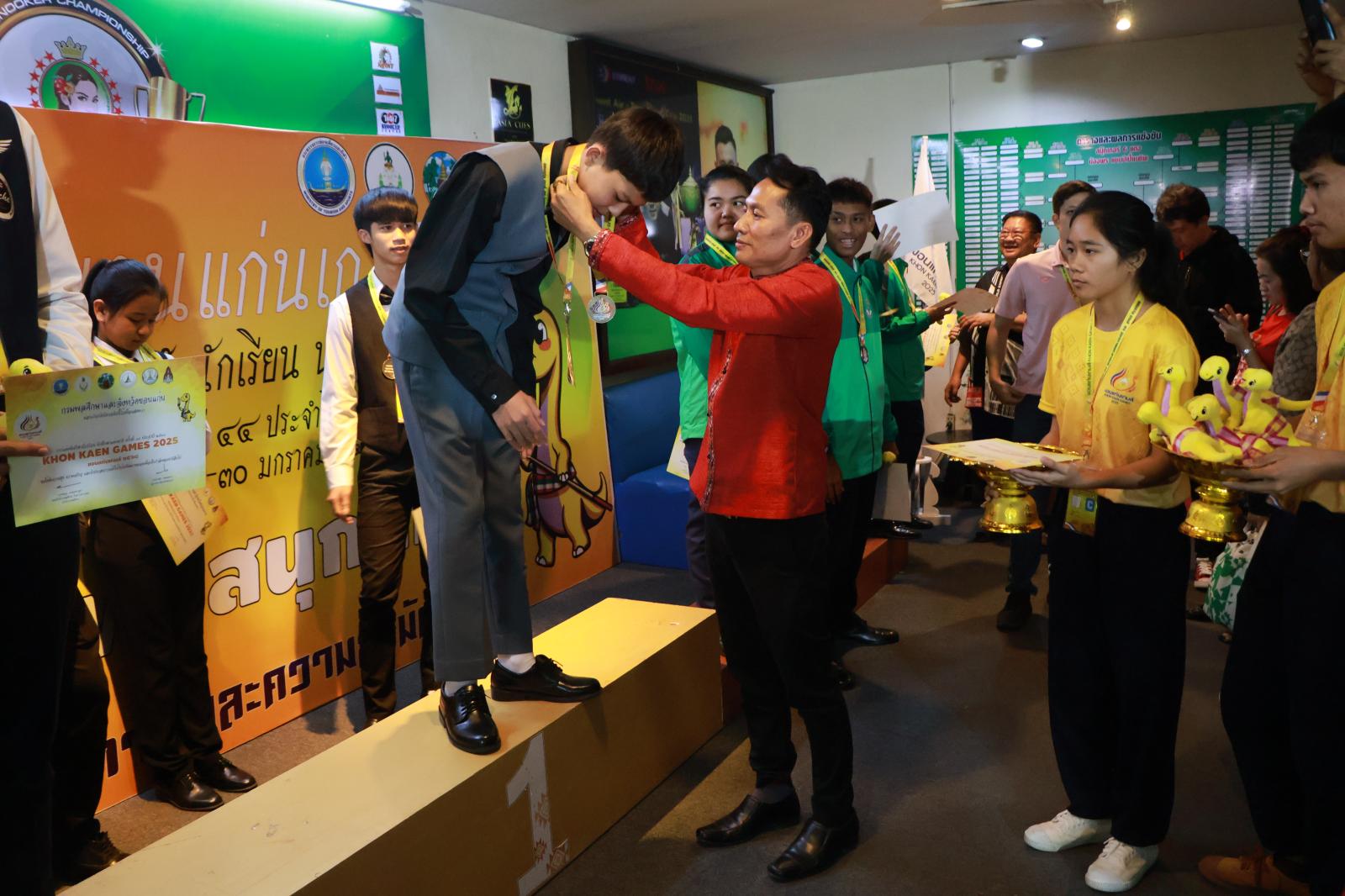 ประธานมอบเหรียญรางวัลให้กับนักกีฬาสนุกเกอร์ ในการแข่งขันกีฬานักเรียน นักศึกษาแห่งชาติ ครั้งที่ 44 ประจำปี 2568 “ขอนแก่นเกมส์“