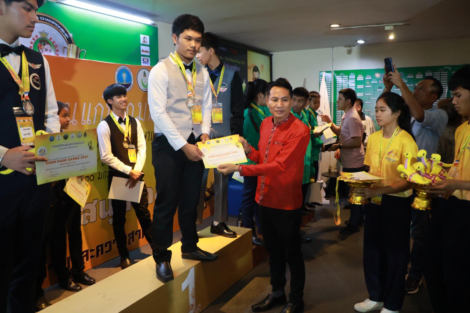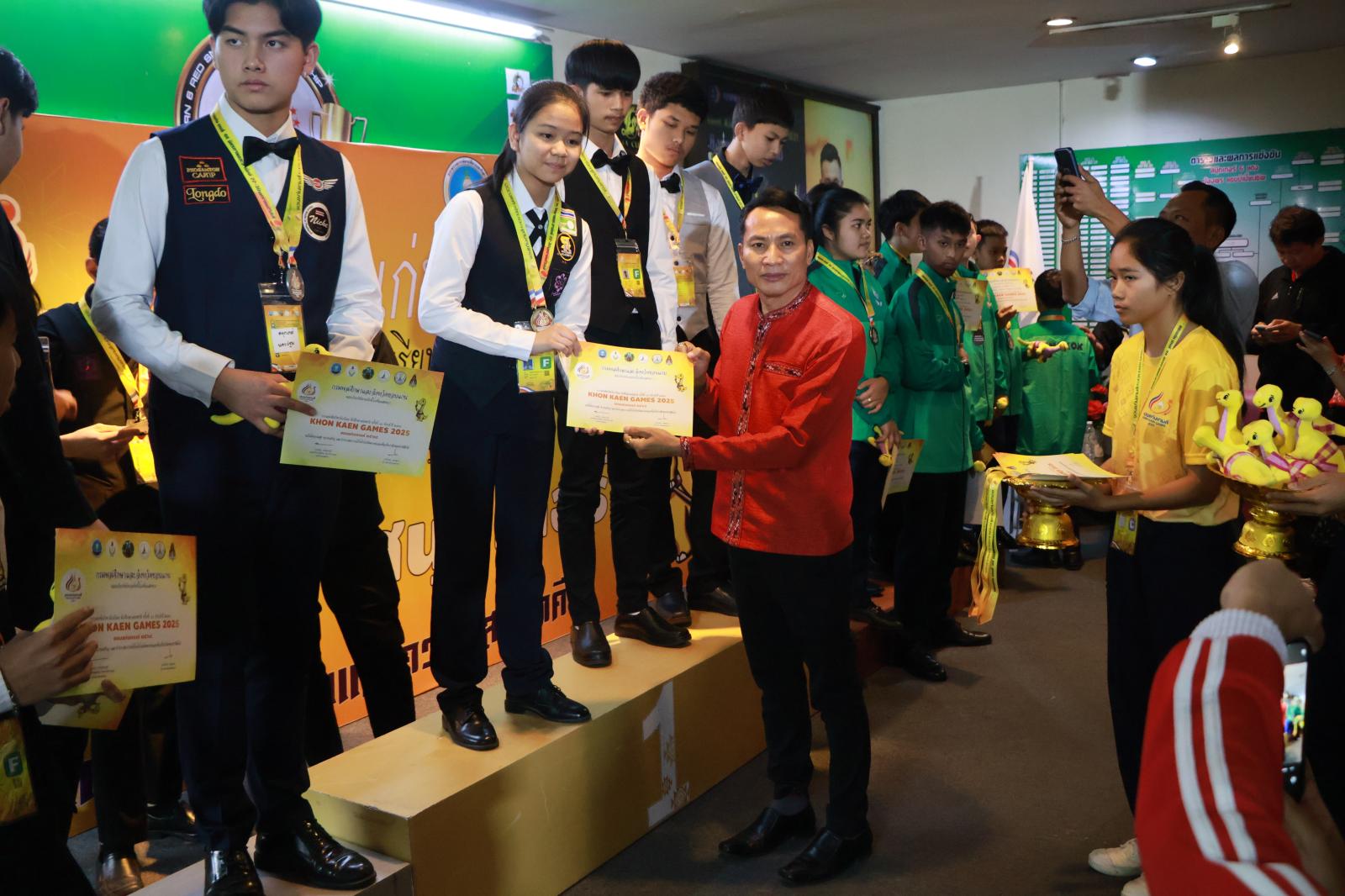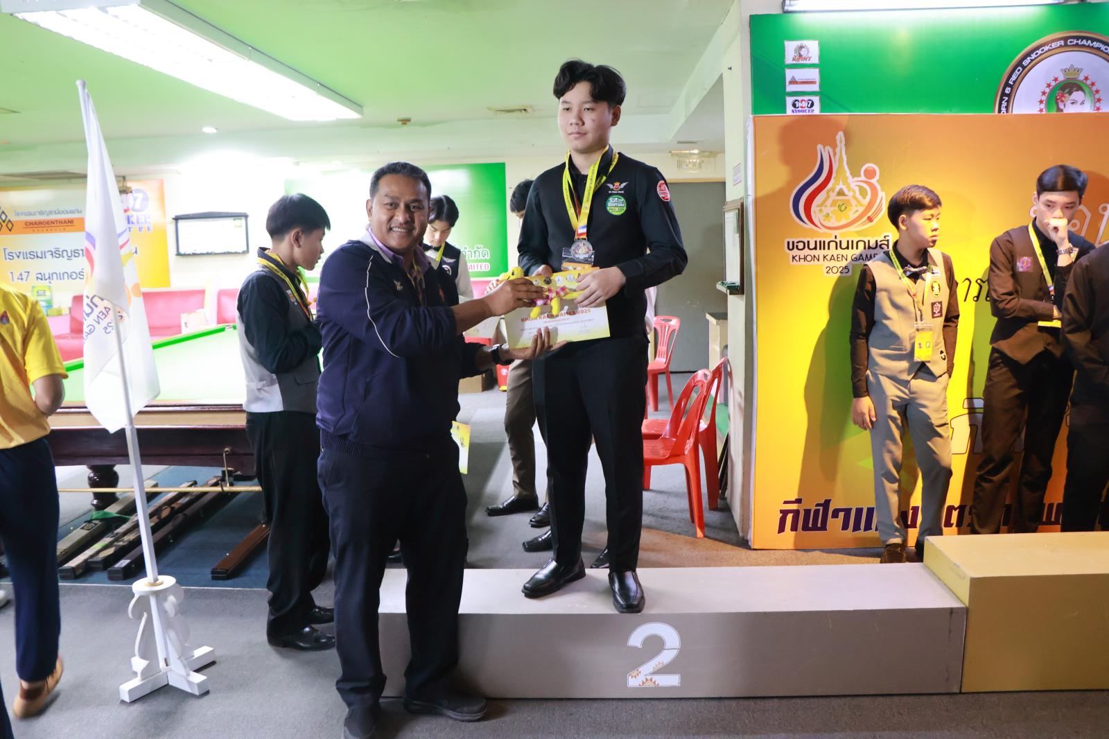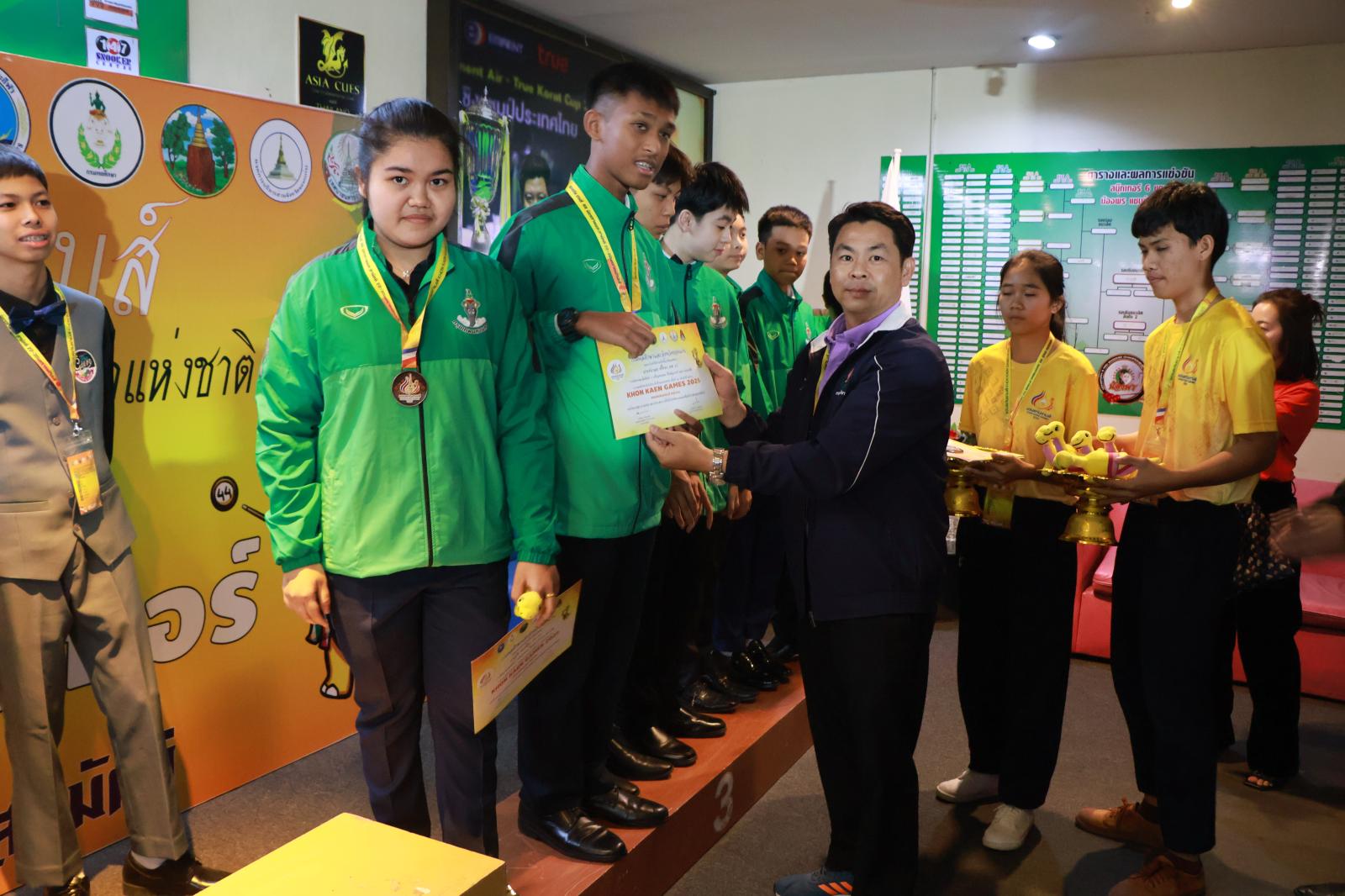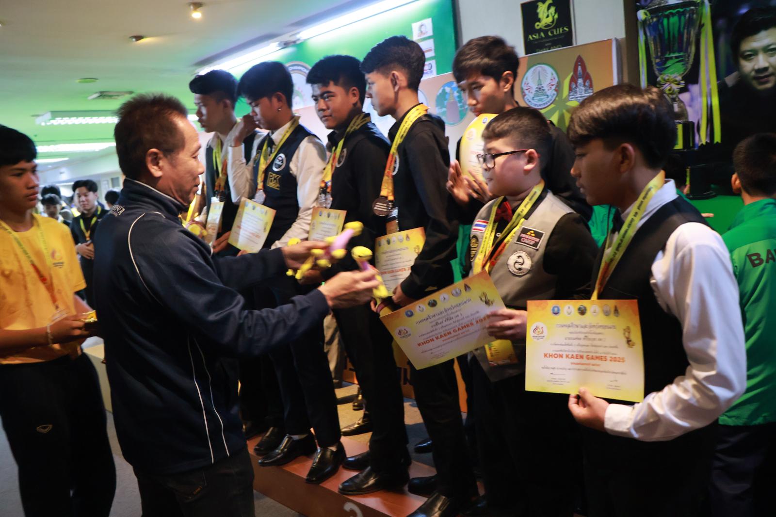 ประธานมอบเหรียญรางวัลให้กับนักกีฬาสนุกเกอร์ ในการแข่งขันกีฬานักเรียน นักศึกษาแห่งชาติ ครั้งที่ 44 ประจำปี 2568 “ขอนแก่นเกมส์“