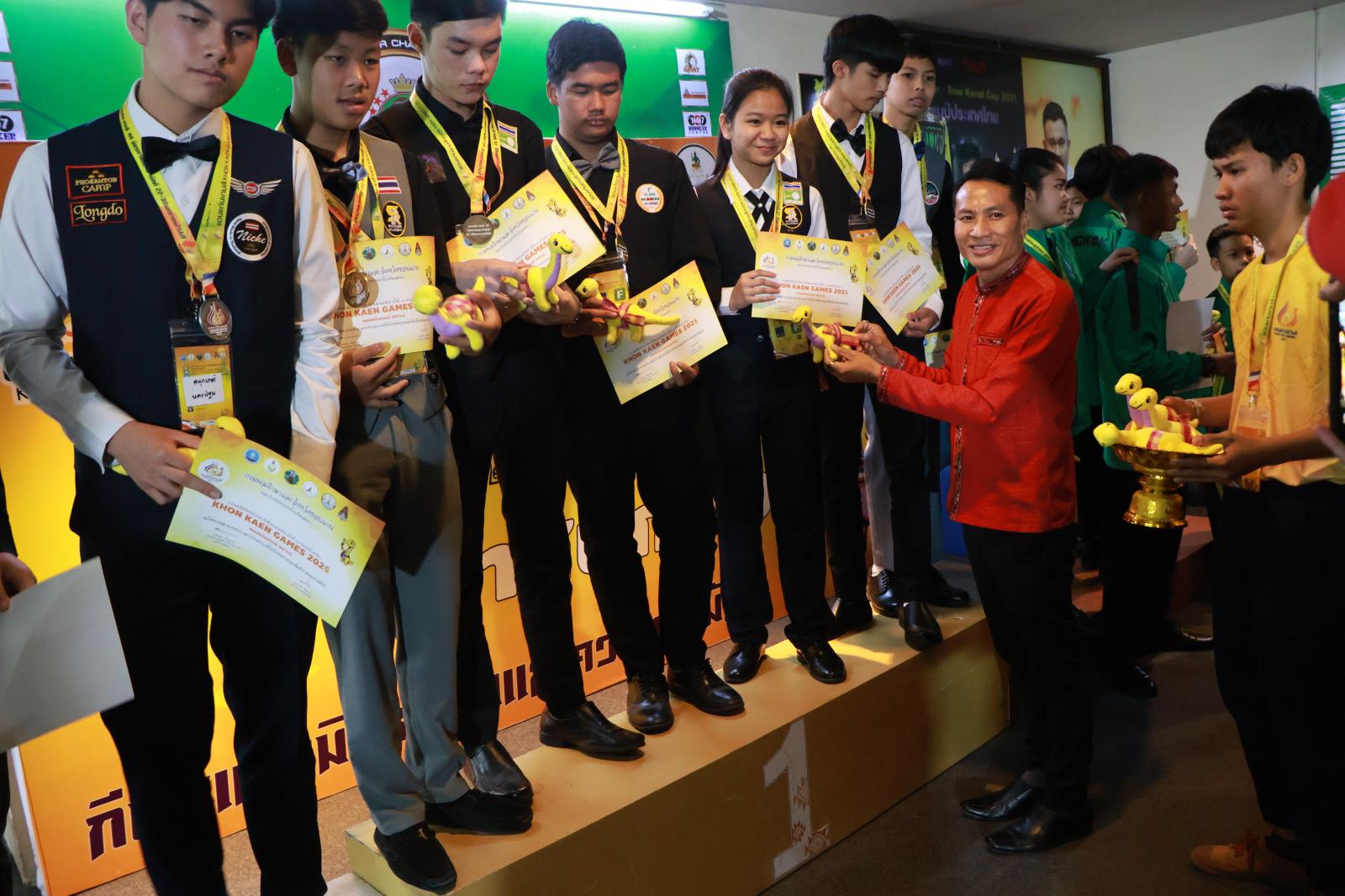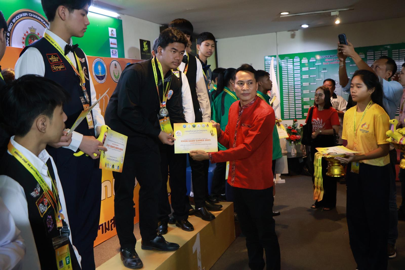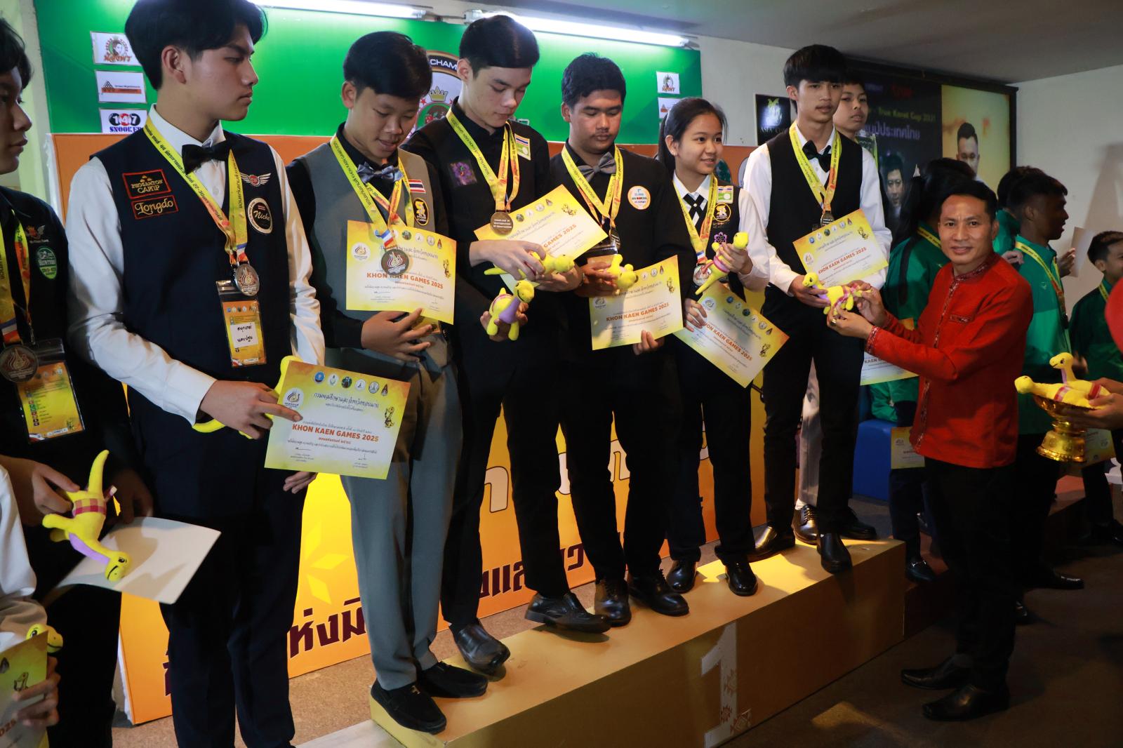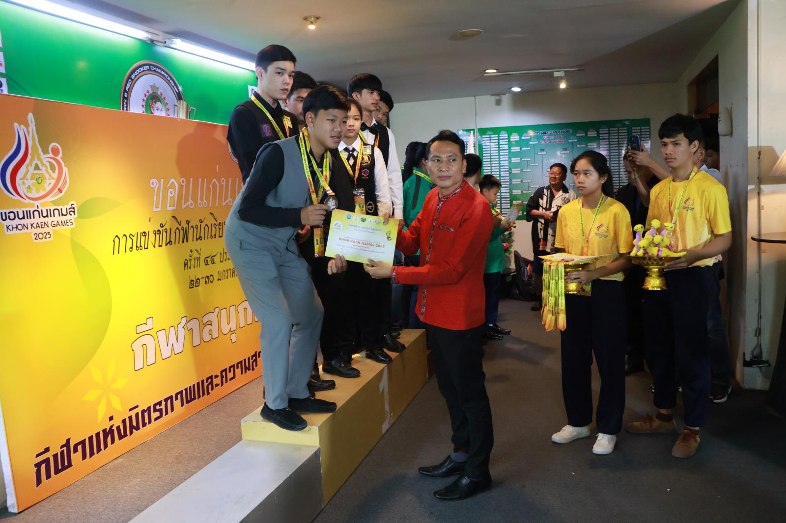 ประธานมอบเหรียญรางวัลให้กับนักกีฬาสนุกเกอร์ ในการแข่งขันกีฬานักเรียน นักศึกษาแห่งชาติ ครั้งที่ 44 ประจำปี 2568 “ขอนแก่นเกมส์“