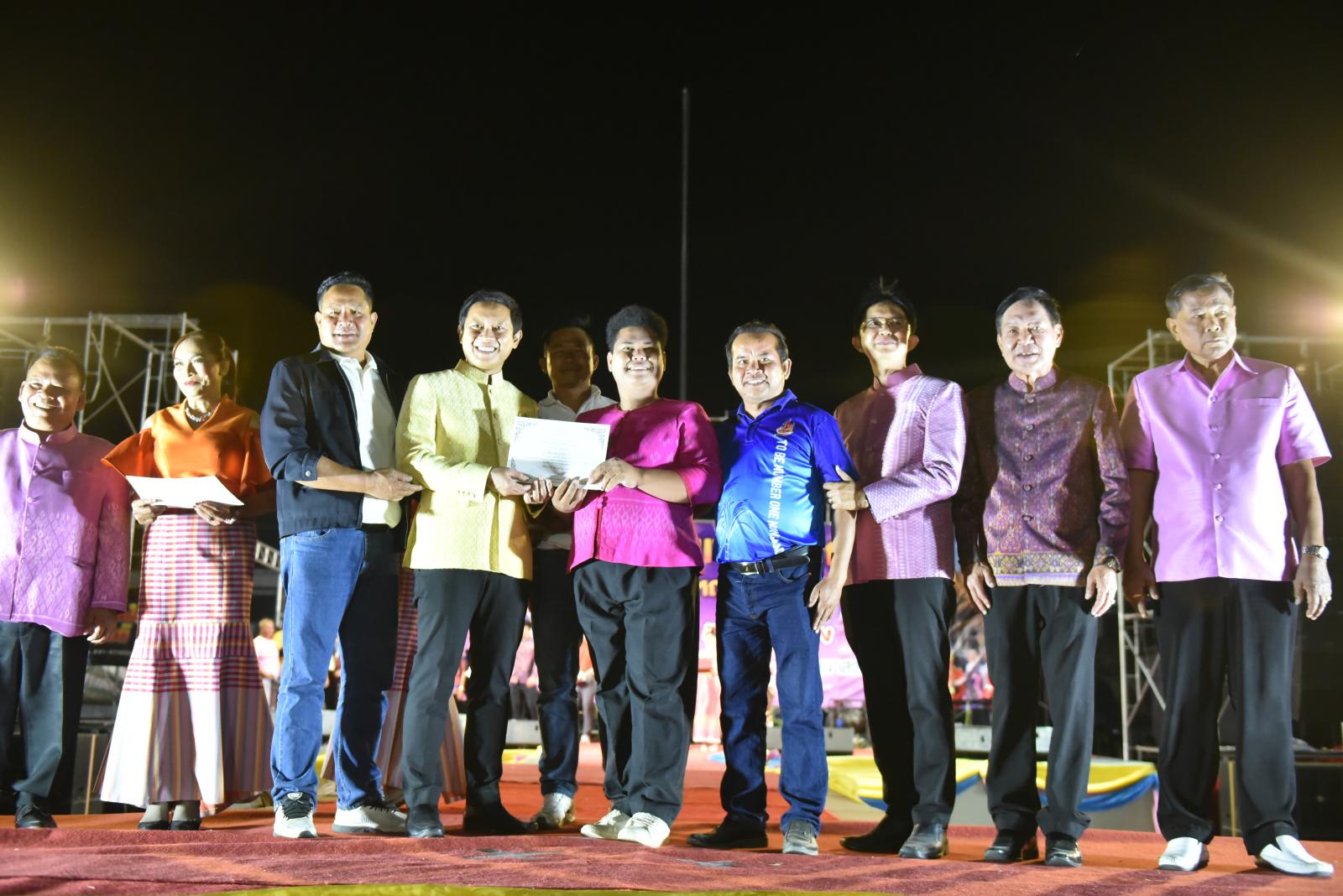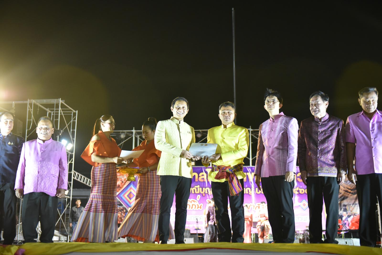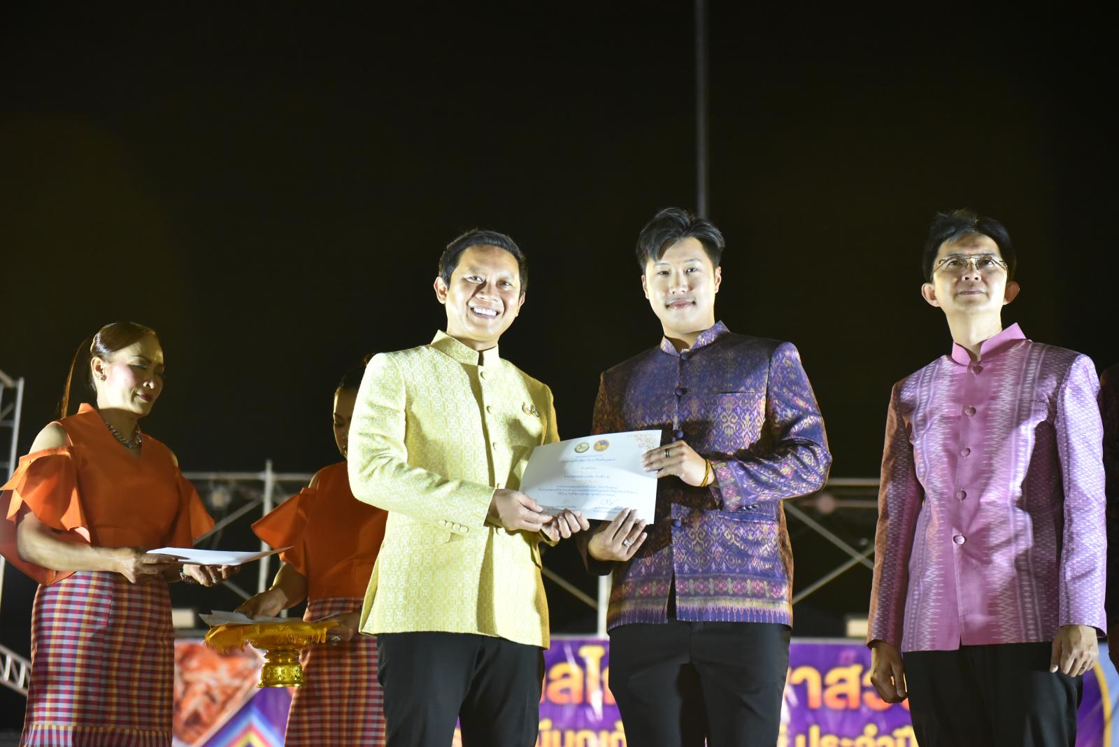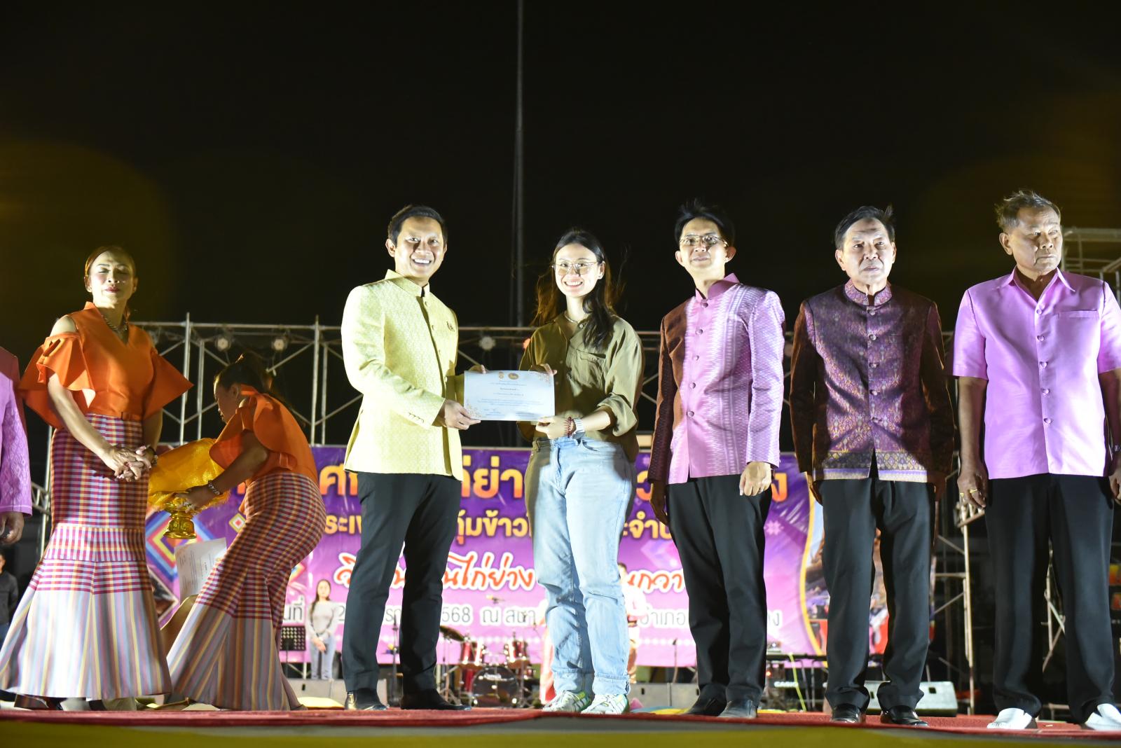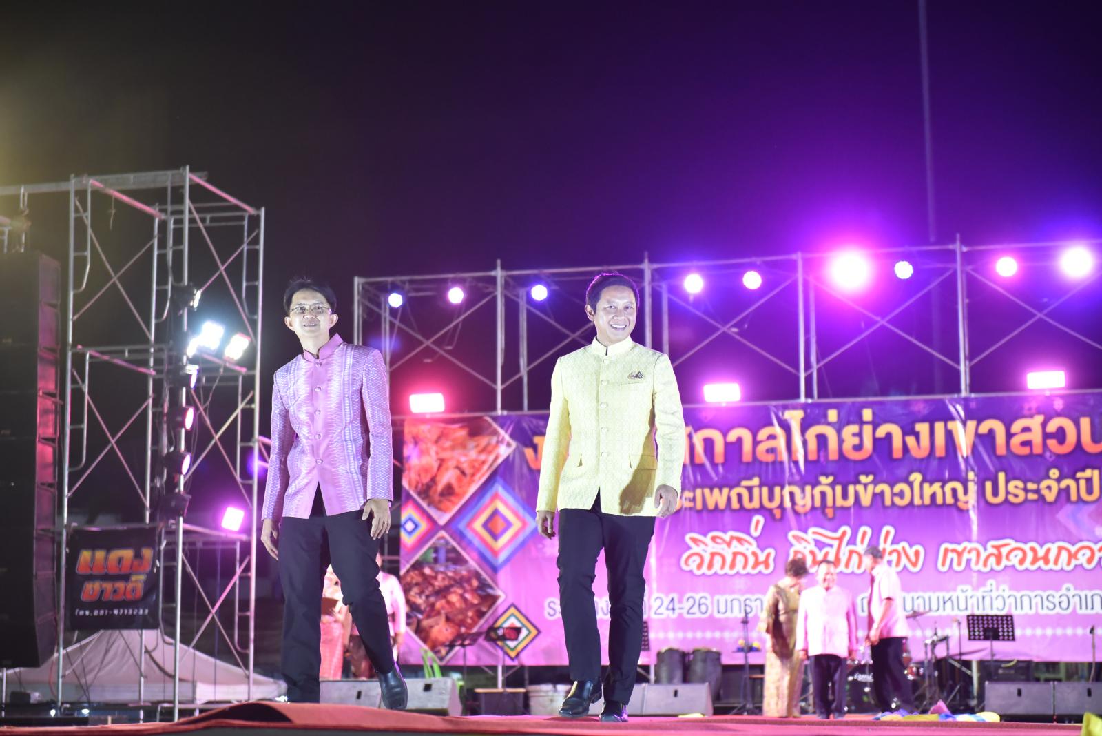 เปิดกิจกรรมเดินแบบผ้าไทย ในงานเทศกาลไก่ย่างเขาสวนกวางและประเพณีบุญกุ้มข้าวใหญ่ ประจำปี 2568