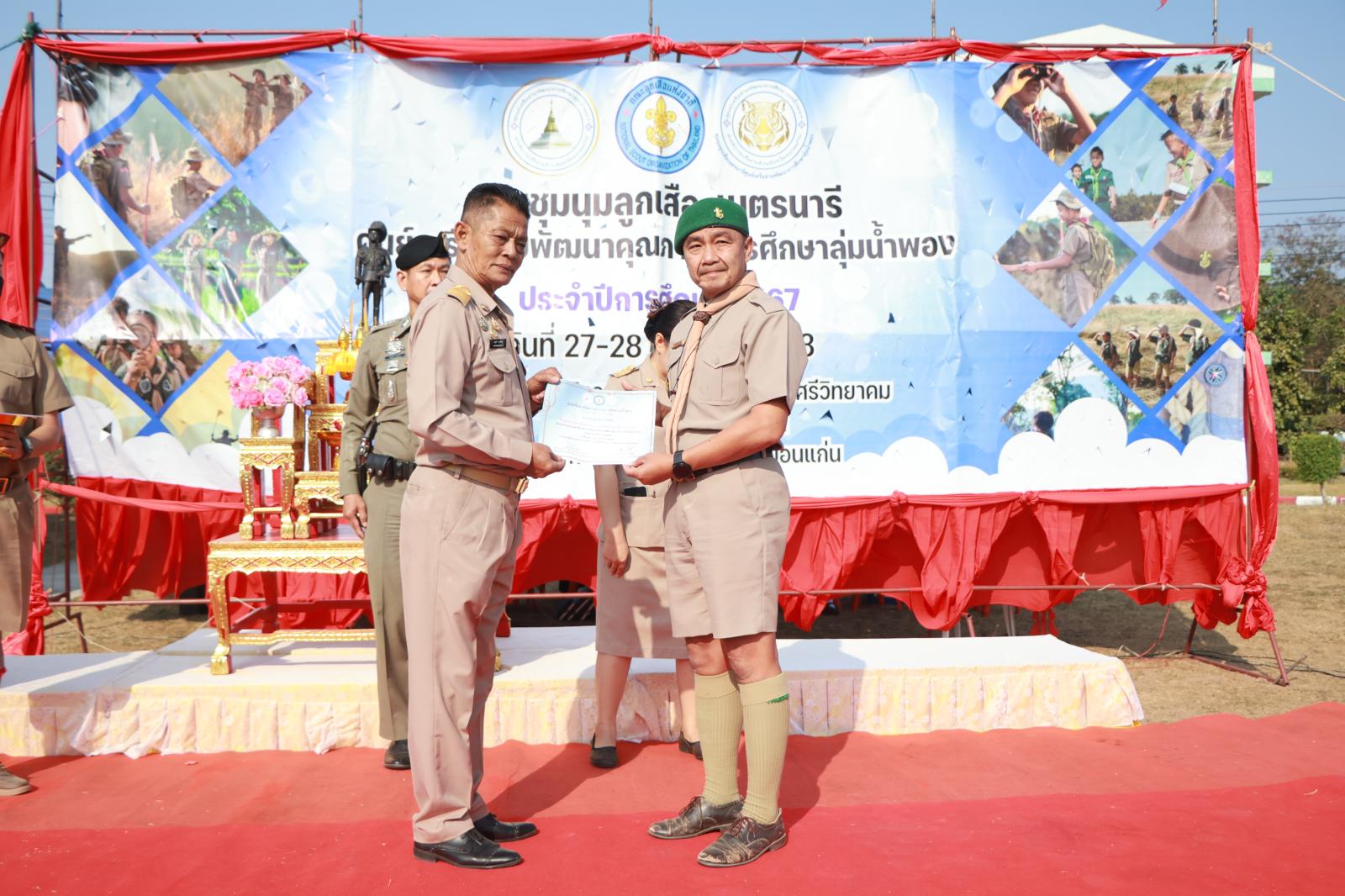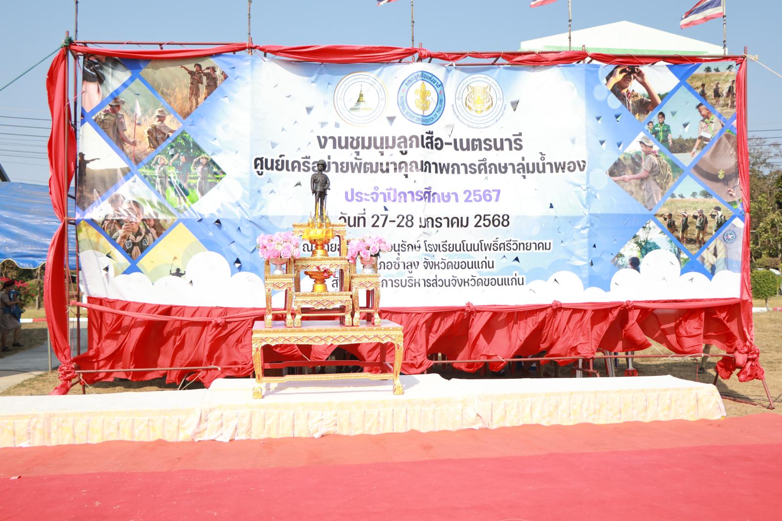 เมื่อวันที่ 27 มกราคม 2568 เวลา 09.00 น. องค์การบริหารส่วนจังหวัดขอนแก่น นำโดย นายวัฒนา ช่างเหลา นายกองค์การบริหารส่วนจังหวัดขอนแก่น มอบหมายให้ นายอดุลย์ คามดิษฐ์ รองนายกองค์การบริหารส่วนจังหวัดขอนแก่น เป็นประธานในพิธีเปิดงานชุมนุมลูกเสือเนตรนารีศูนย์เครือข่ายพัฒนาการศึกษาลุ่มน้ำพอง ประจำปีการศึกษา 2568 โดยมี นางสุภลักษณ์ ดียิ่ง ผู้อำนวยการโรงเรียนหนองโนประชาสรรค์ กล่าวรายงาน ในโอกาสนี้มี นายกิตติชัย อุทธา ผู้อำนวยการส่วนบริหารการศึกษา พ.ต.ท.วิศรุตม์ โสมทัต รอง ผกก.สภ.ซำสูง นางศศิธร ฐานะ ผู้อำนวยการ รพ.สต.บ้านโนน ผู้บริหารโรงเรียน คณะครู และเจ้าหน้าที่ สังกัดองค์การบริหารส่วนจังหวัดขอนแก่น เข้าร่วมพิธี ณ ค่ายลูกเสือเชิงอนุรักษ์ โรงเรียนโนนโพธิ์ศรีวิทยาคม อ.ซำสูง จ.ขอนแก่น