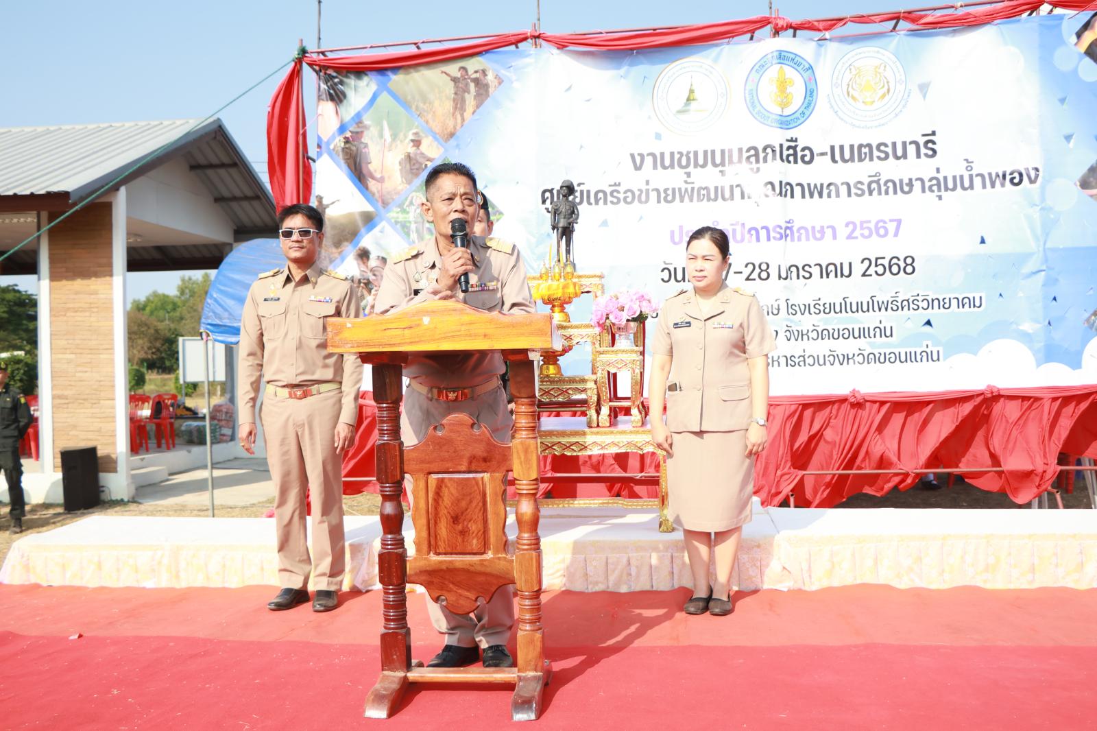พิธีเปิดงานชุมนุมลูกเสือเนตรนารีศูนย์เครือข่ายพัฒนาการศึกษาลุ่มน้ำพอง ประจำปีการศึกษา 2568