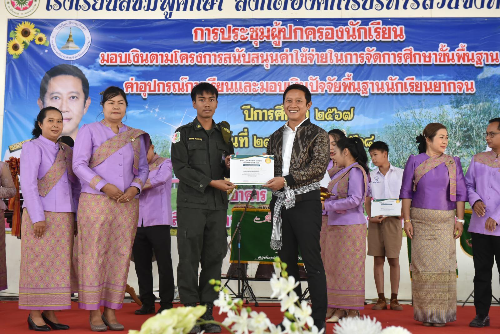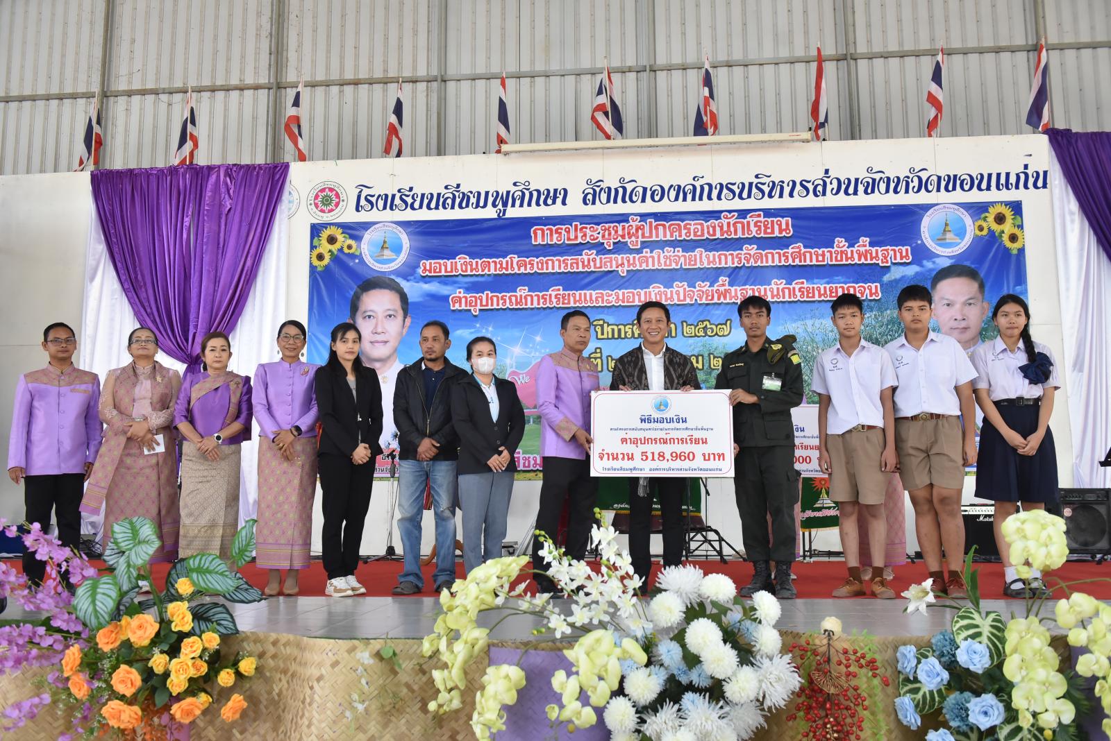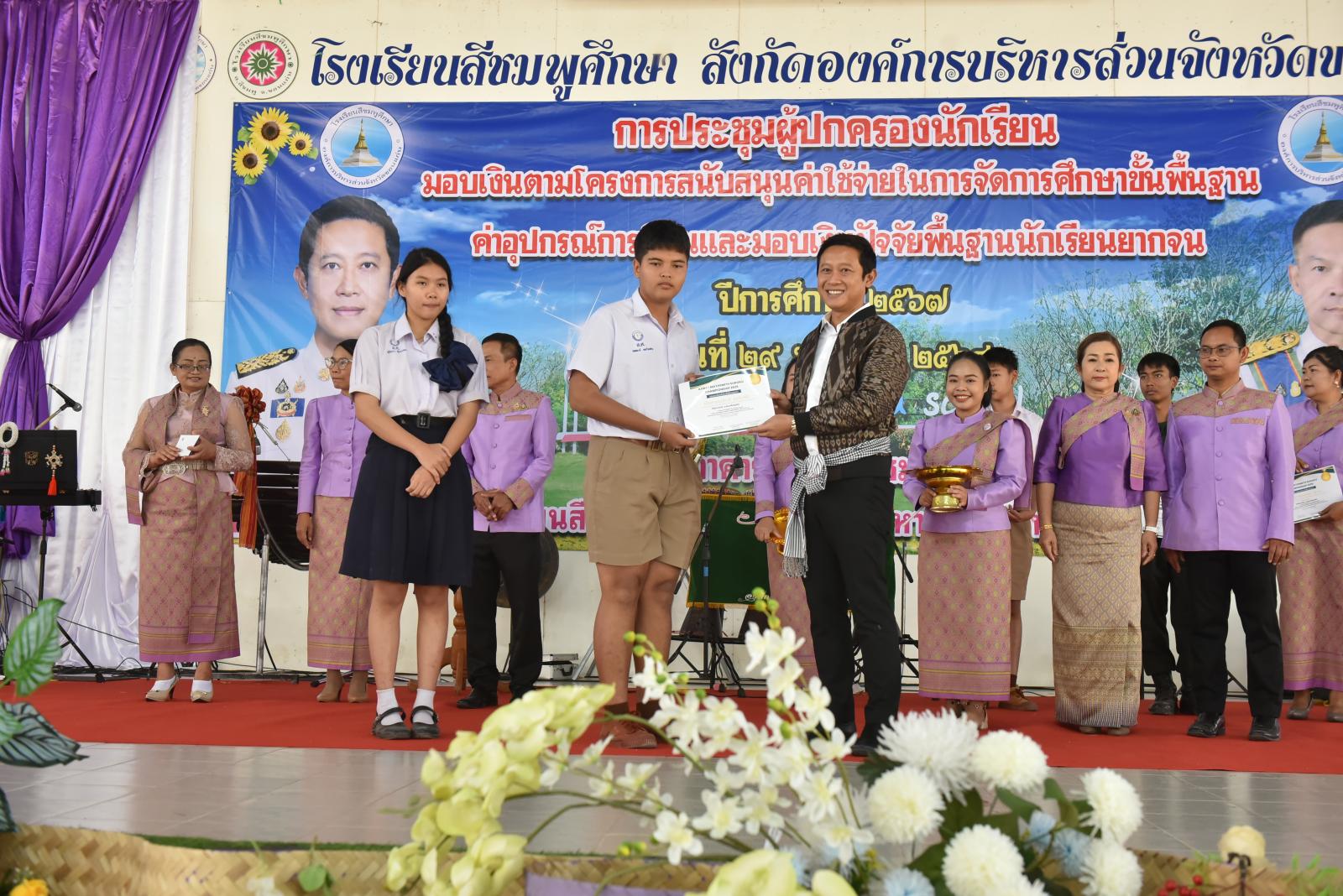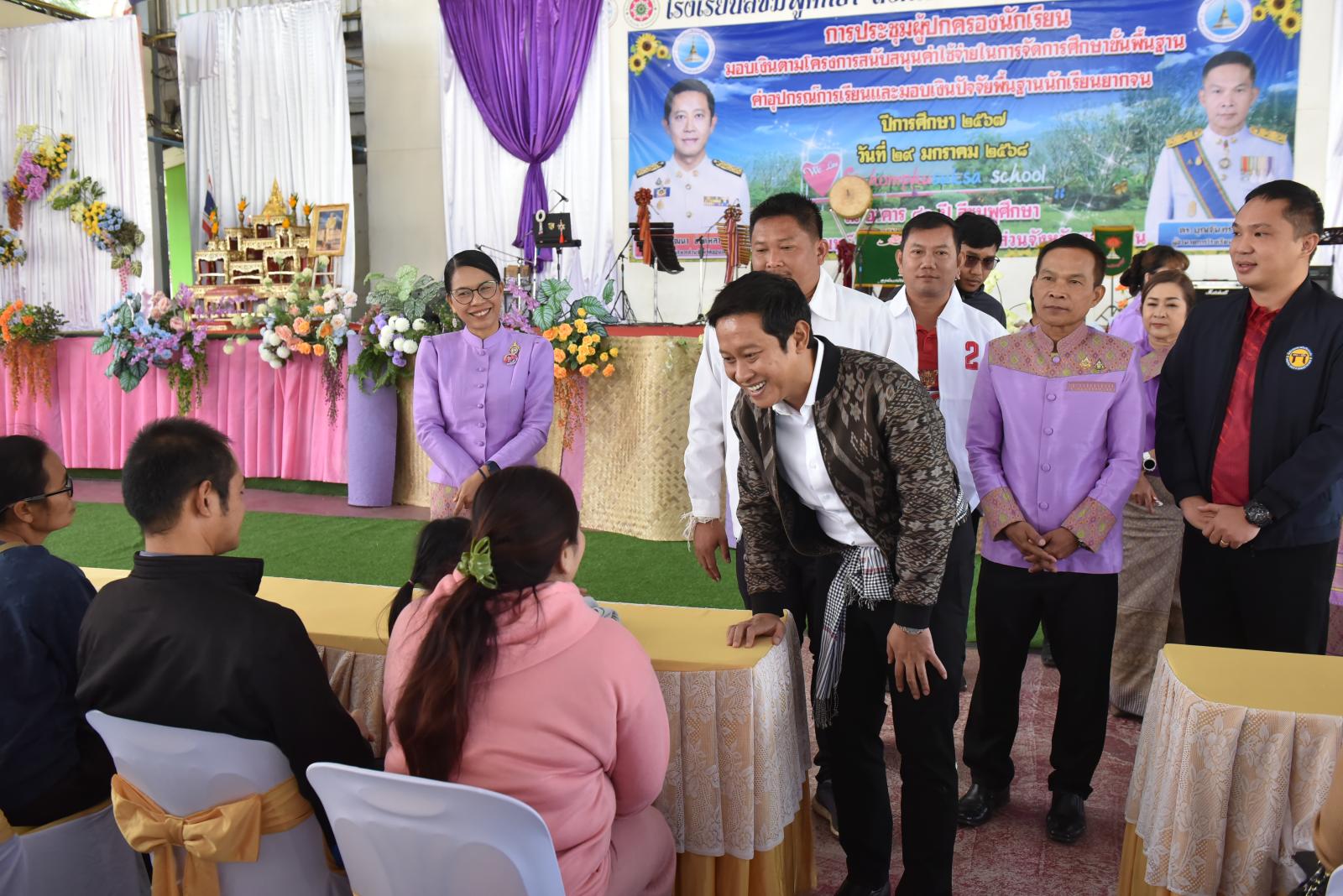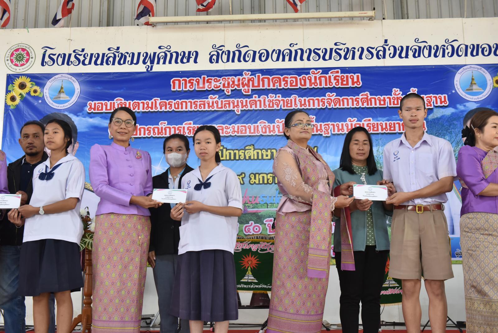 เปิดการประชุมผู้ปกครองนักเรียน มอบเงินตามโครงการสนับสนุนค่าใช้จ่ายในการจัดการศึกษาขั้นพื้นฐาน ค่าอุปกรณ์การเรียนและมอบเงินปัจจัยพื้นฐานนักเรียนยากจน ของโรงเรียนสีชมพูศึกษา ภาคเรียนที่ 2 ปีการศึกษา 2567