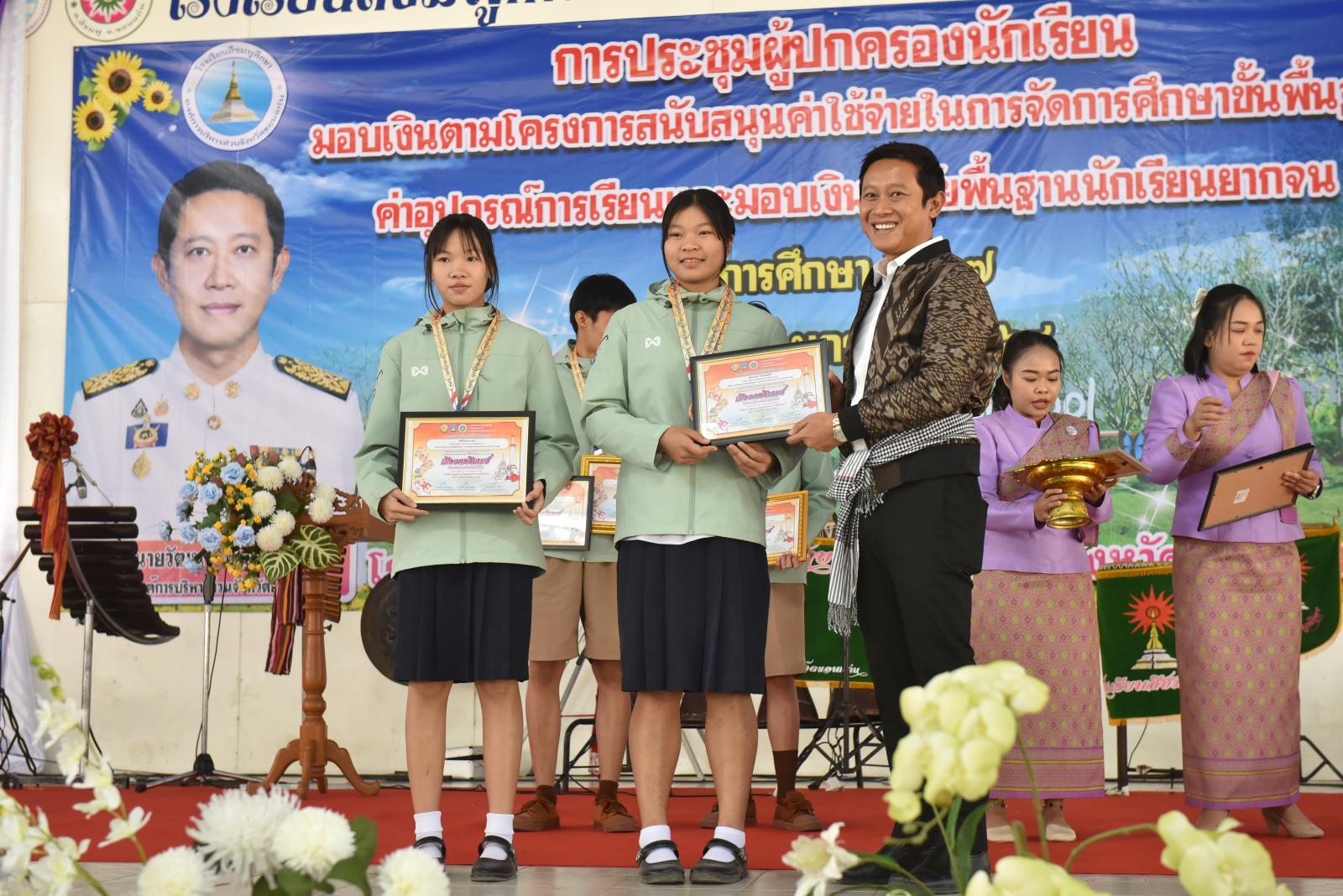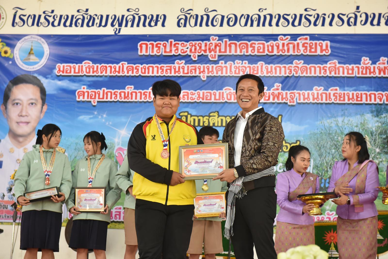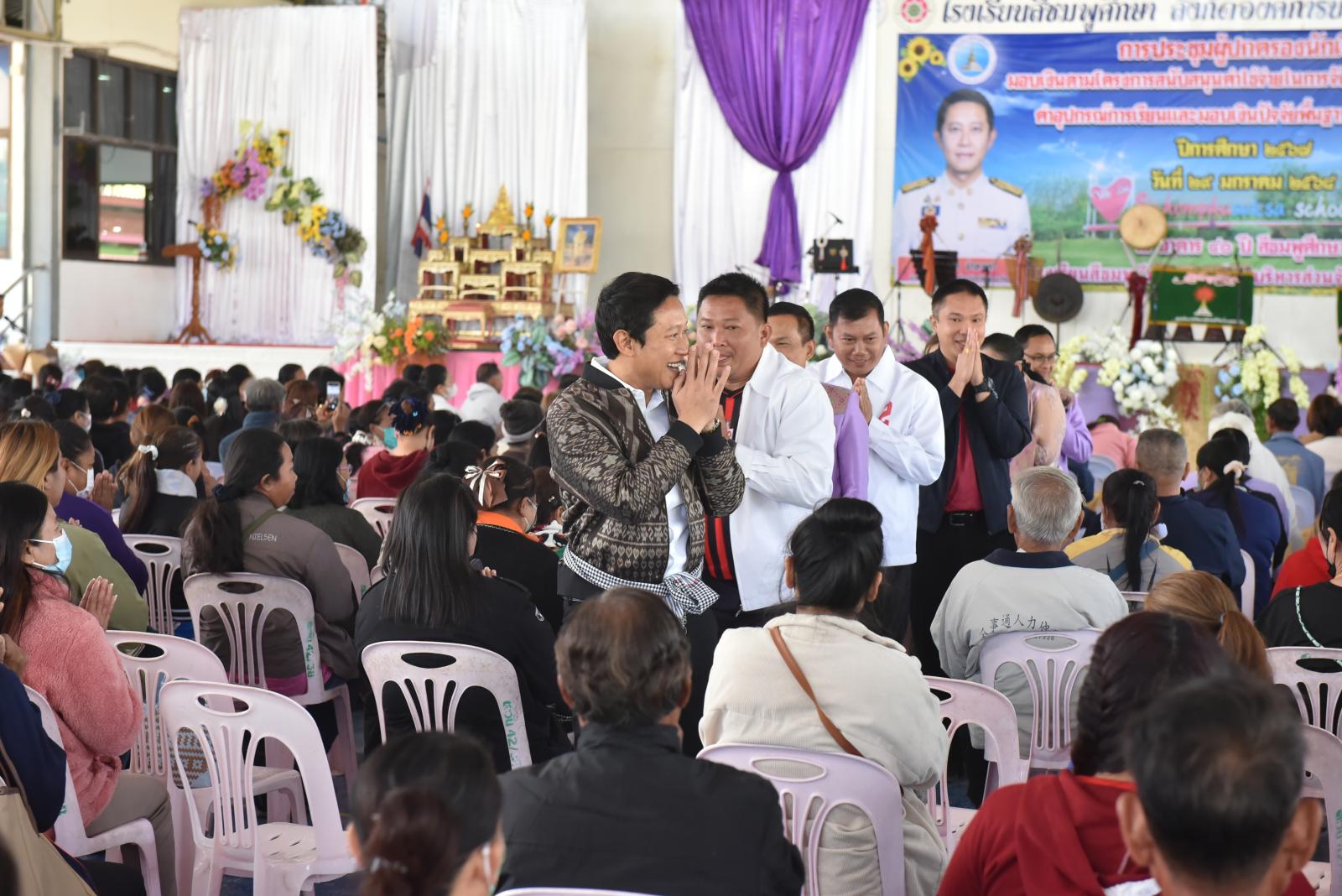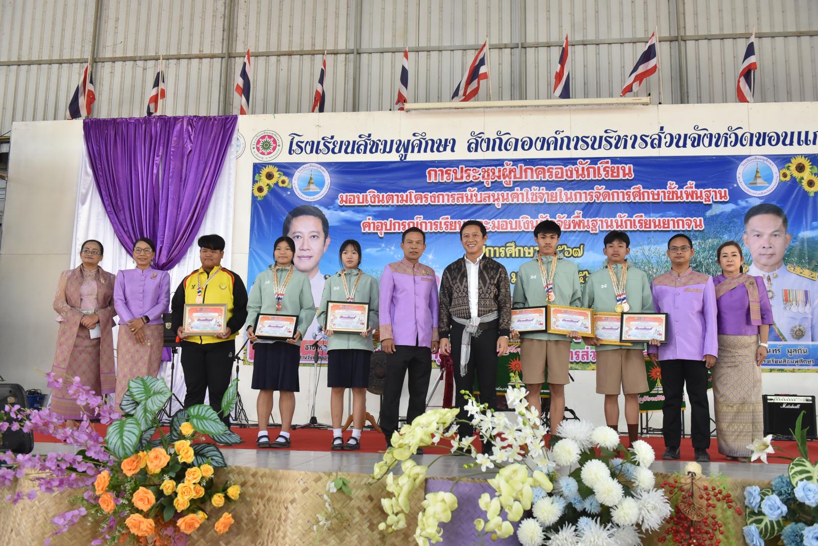 เปิดการประชุมผู้ปกครองนักเรียน มอบเงินตามโครงการสนับสนุนค่าใช้จ่ายในการจัดการศึกษาขั้นพื้นฐาน ค่าอุปกรณ์การเรียนและมอบเงินปัจจัยพื้นฐานนักเรียนยากจน ของโรงเรียนสีชมพูศึกษา ภาคเรียนที่ 2 ปีการศึกษา 2567