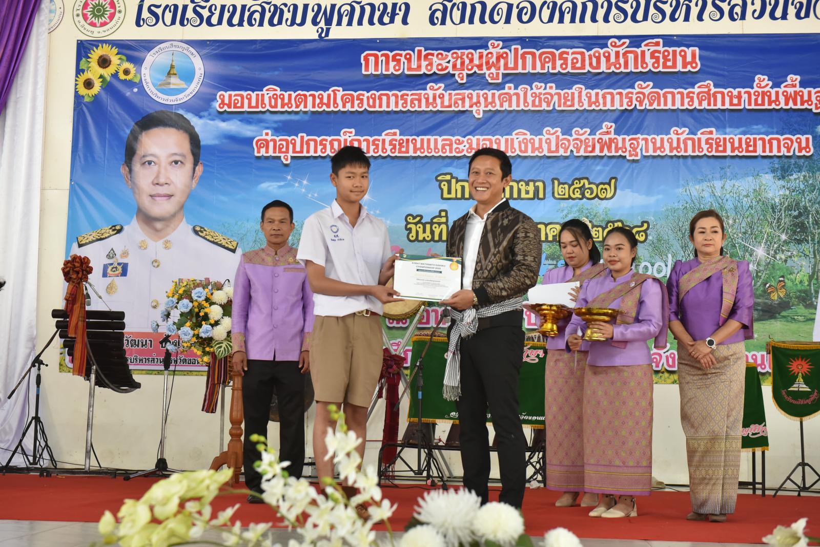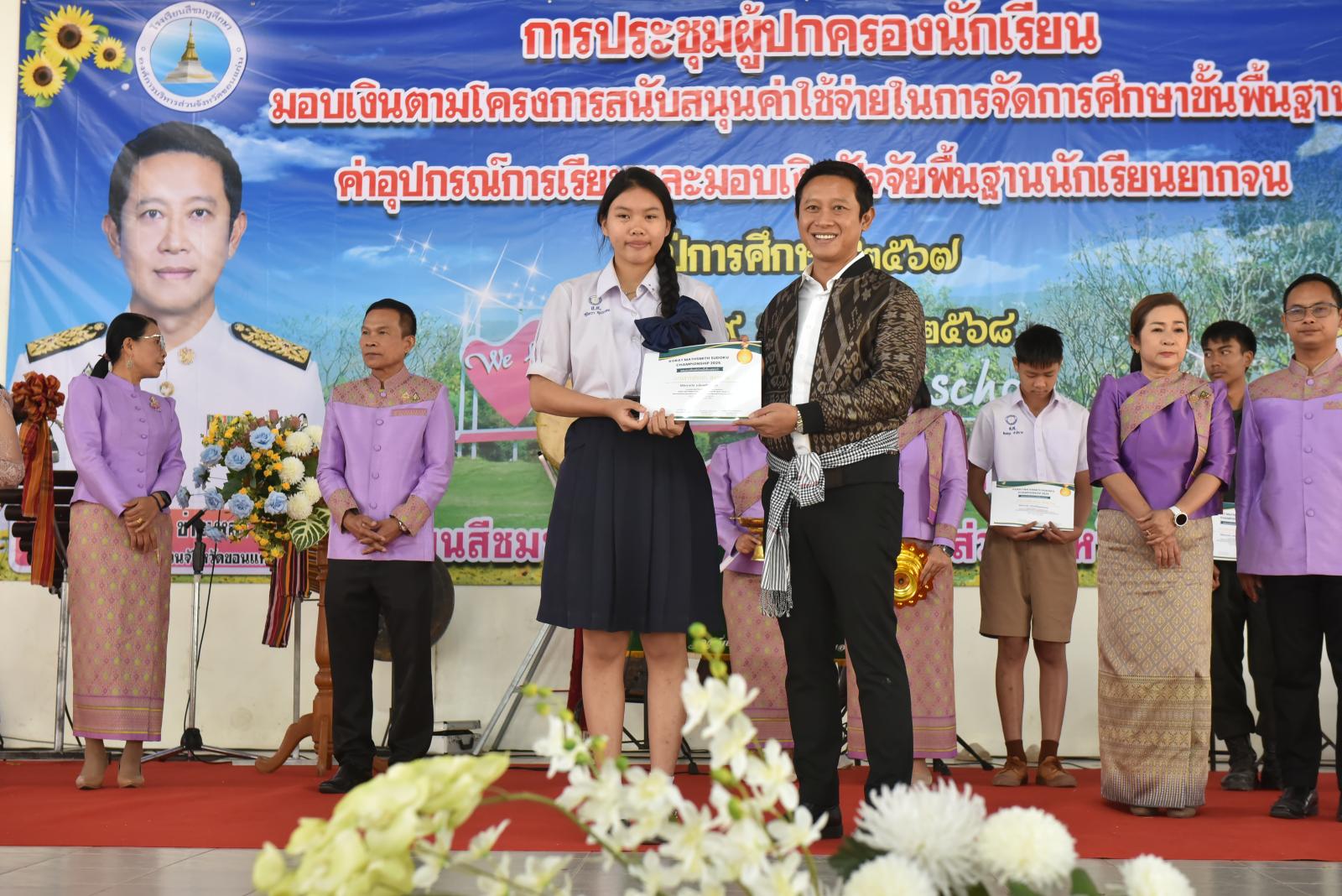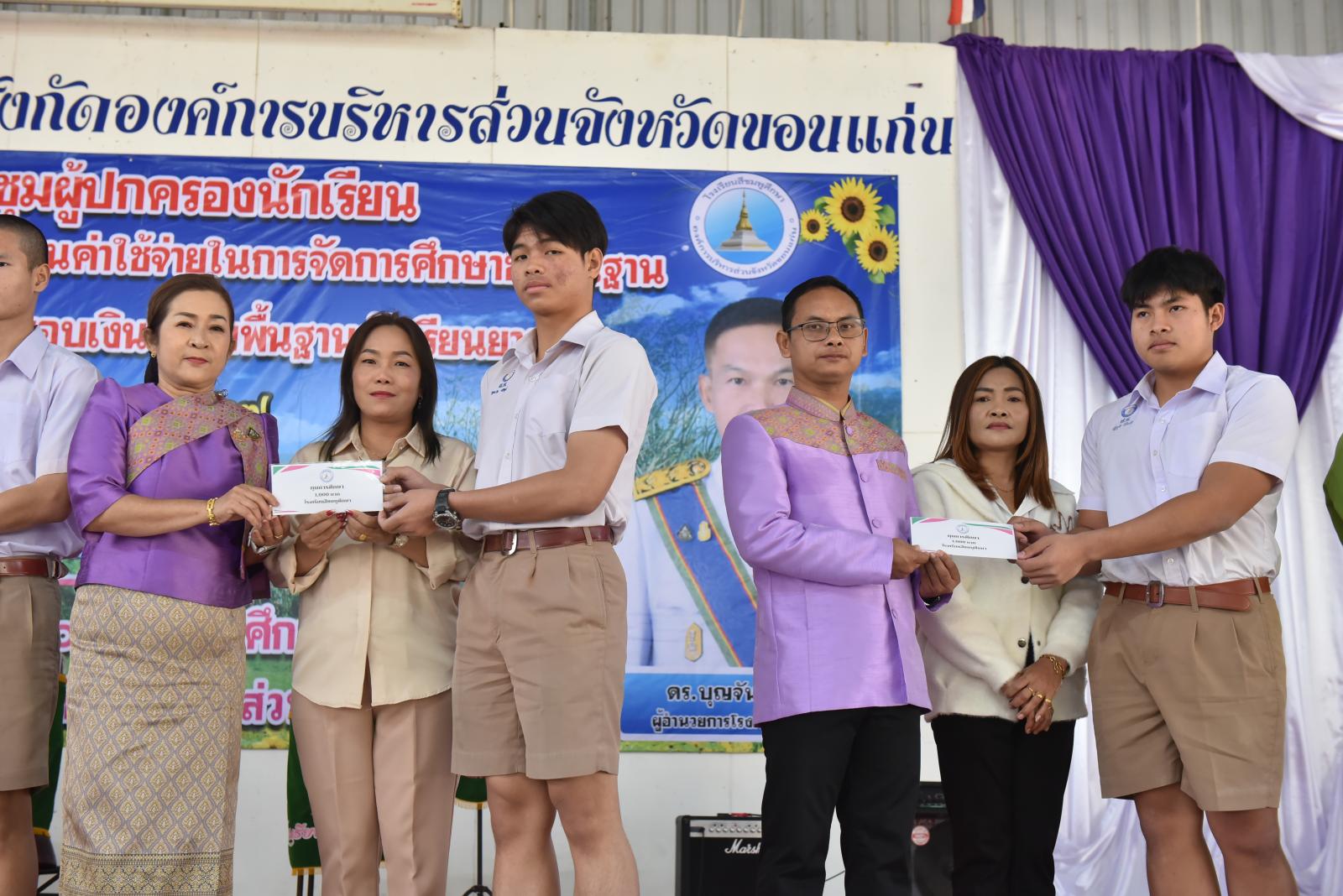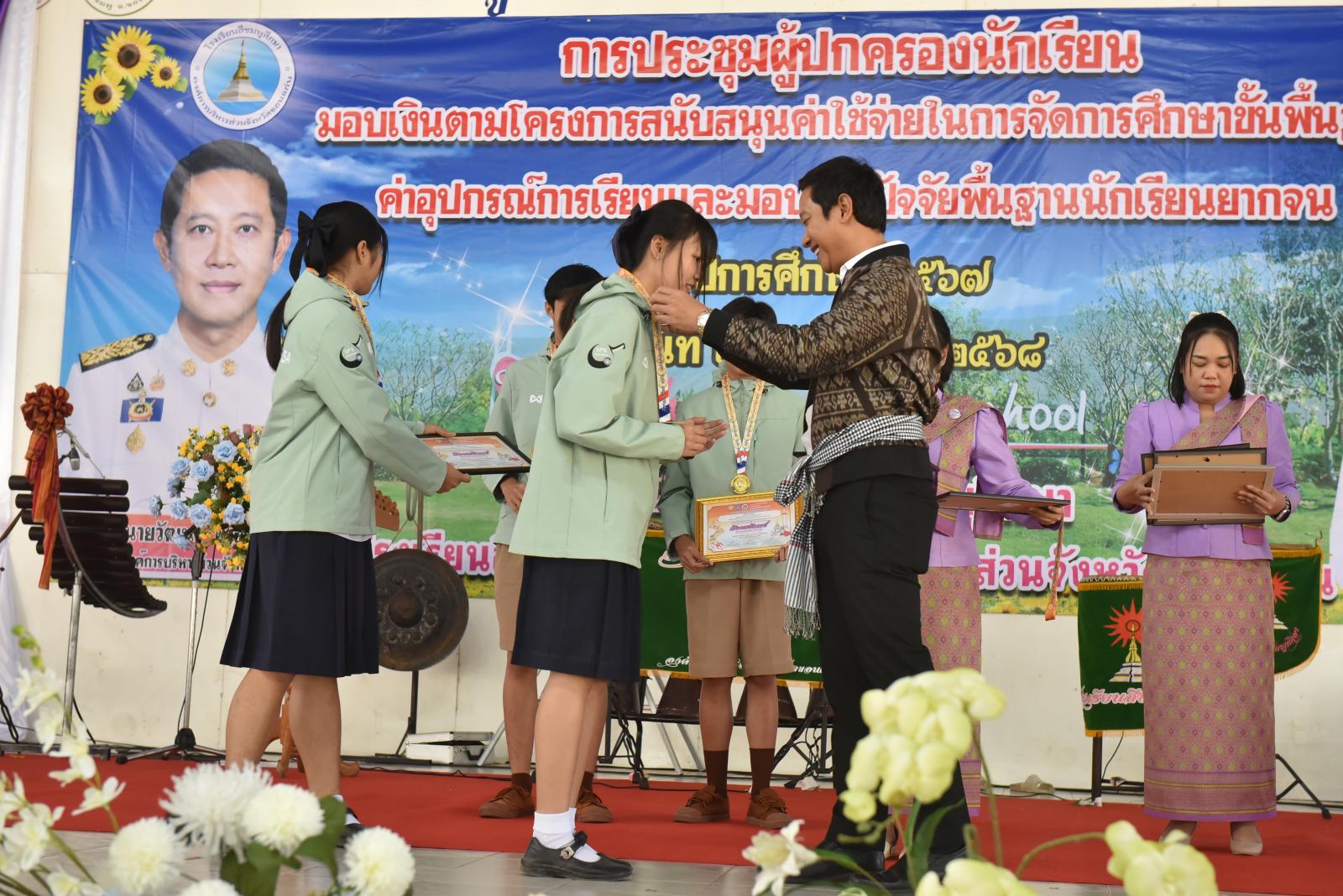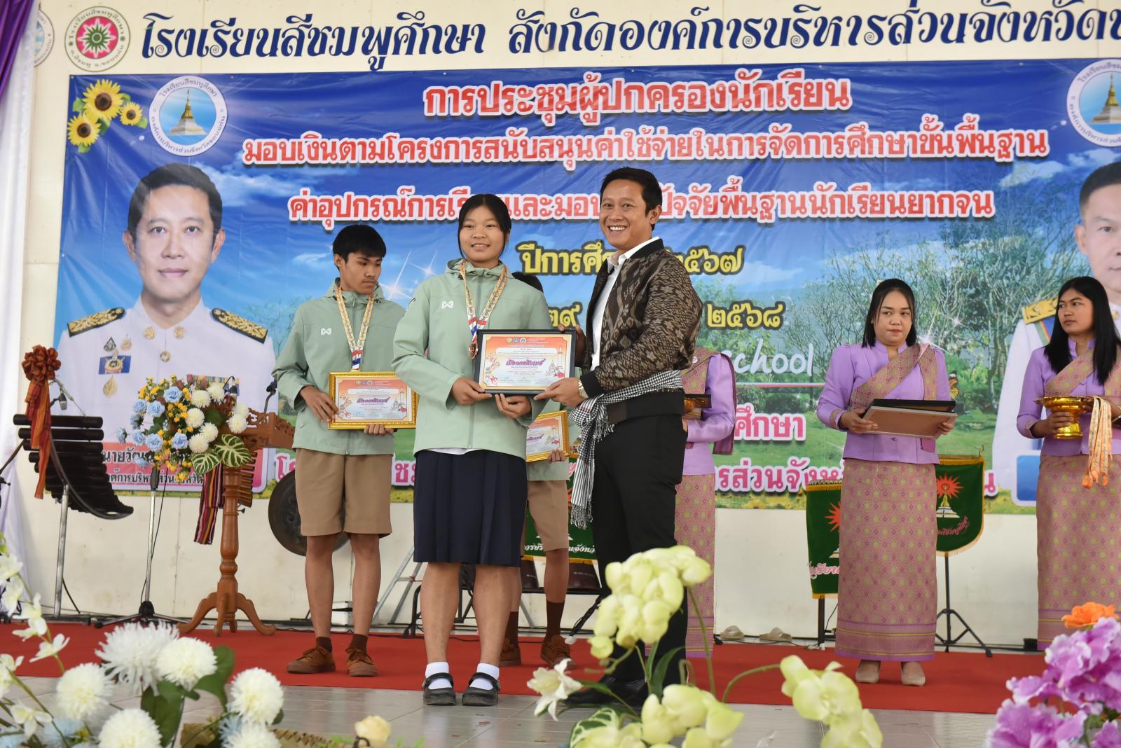 เปิดการประชุมผู้ปกครองนักเรียน มอบเงินตามโครงการสนับสนุนค่าใช้จ่ายในการจัดการศึกษาขั้นพื้นฐาน ค่าอุปกรณ์การเรียนและมอบเงินปัจจัยพื้นฐานนักเรียนยากจน ของโรงเรียนสีชมพูศึกษา ภาคเรียนที่ 2 ปีการศึกษา 2567
