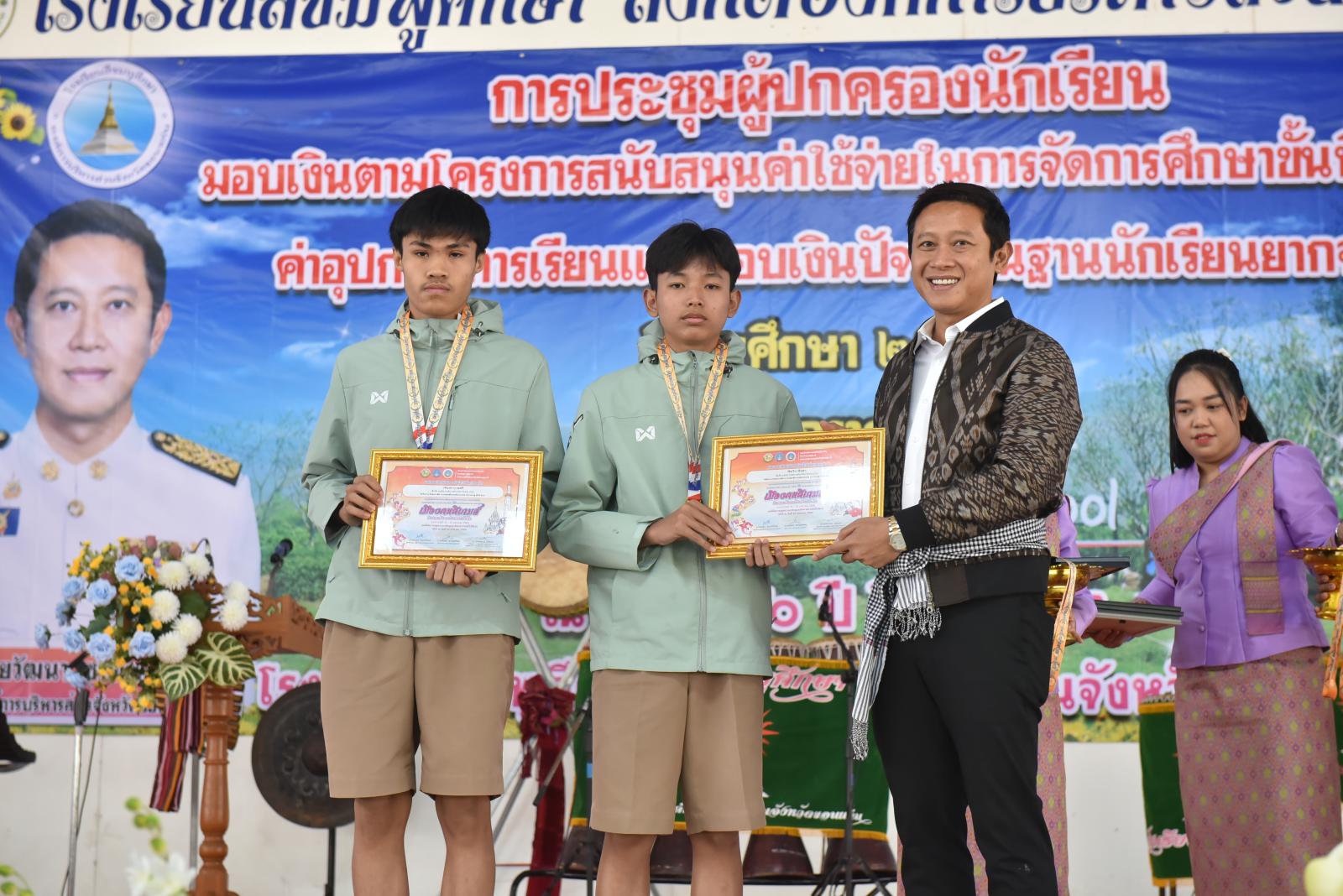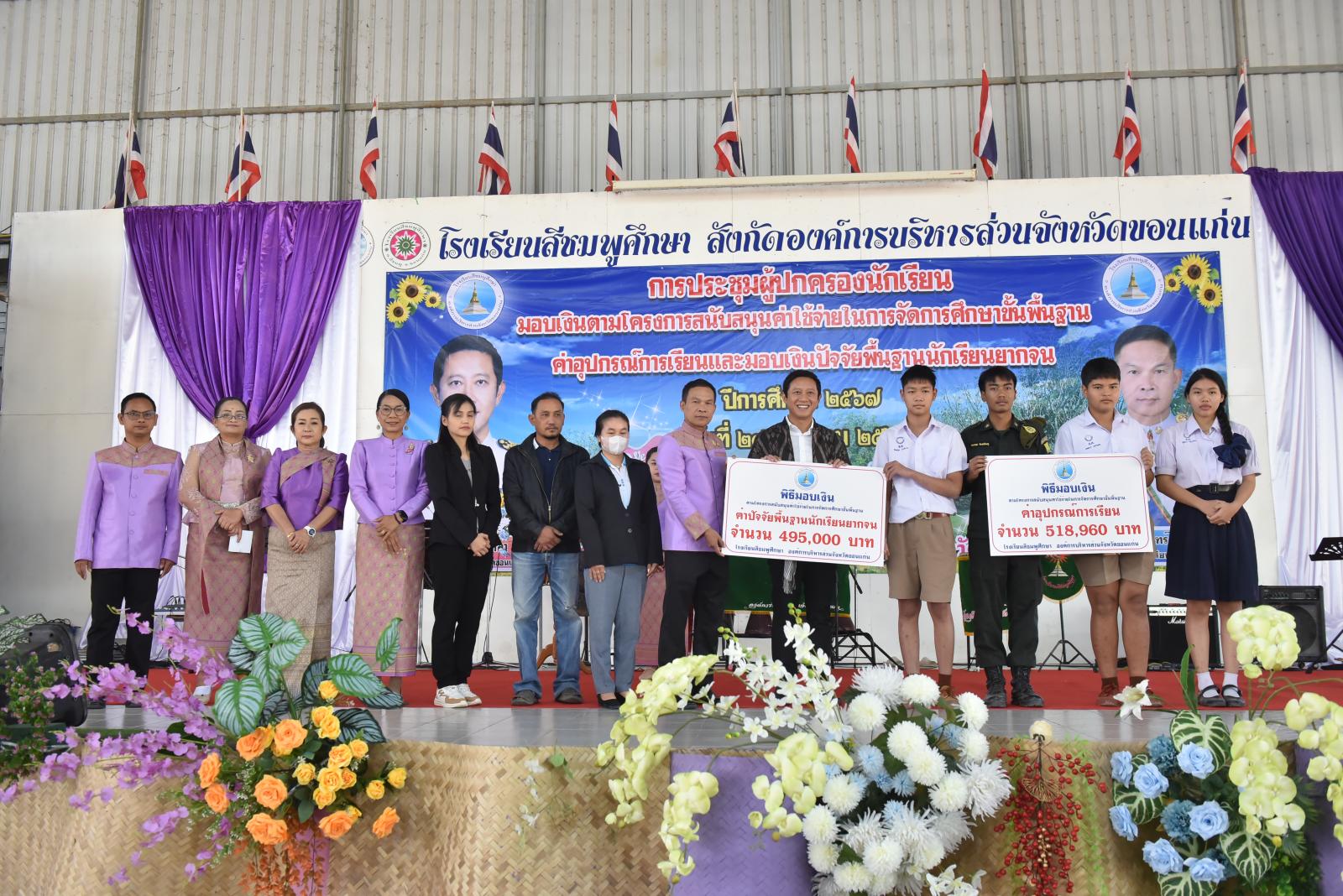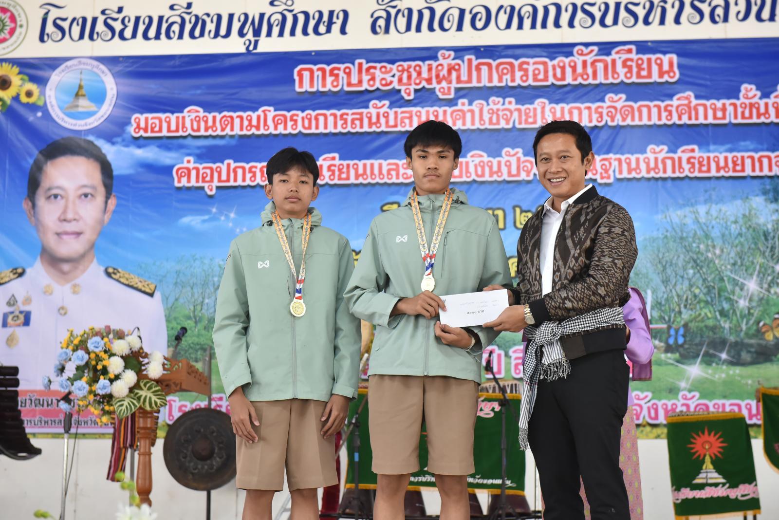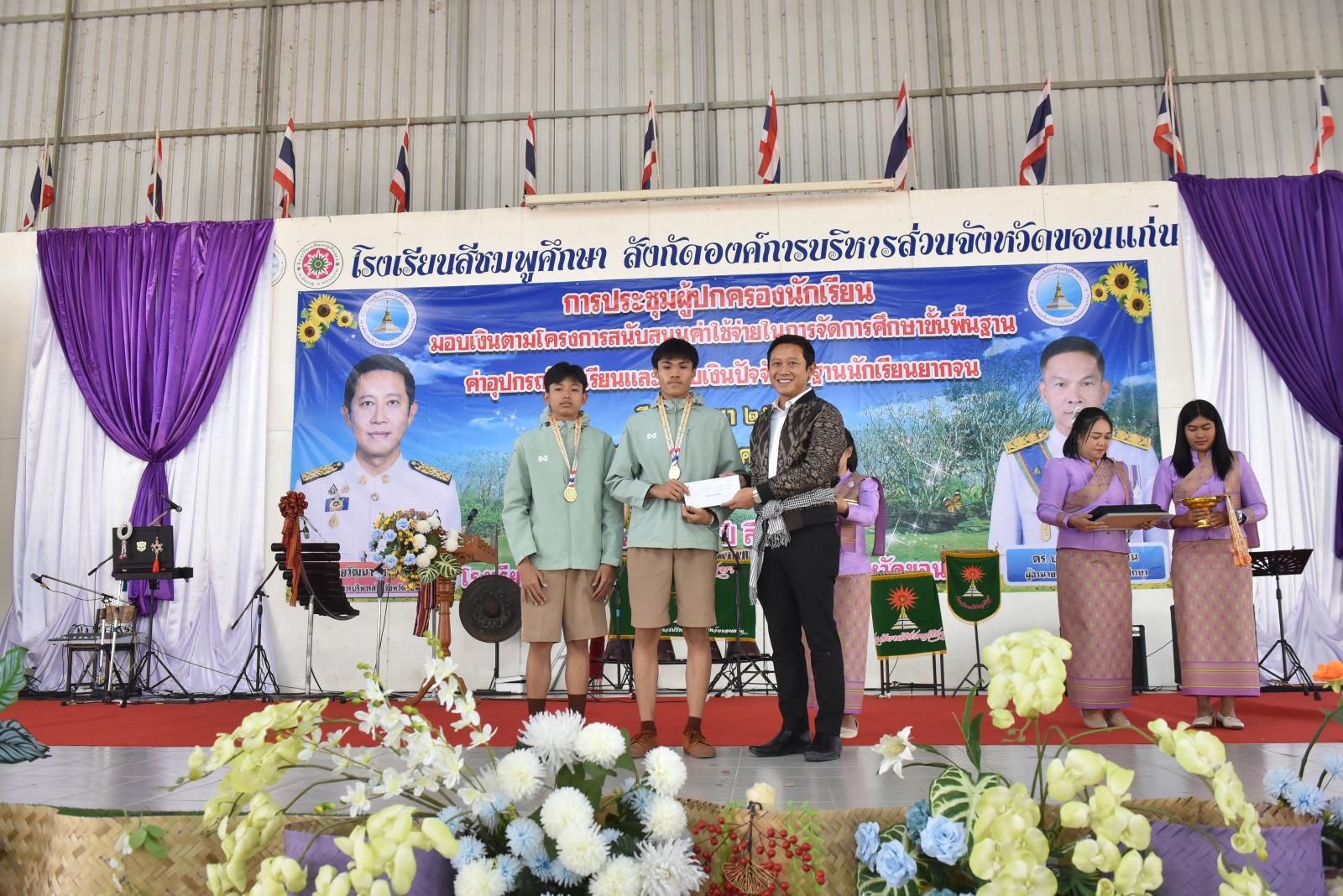 เปิดการประชุมผู้ปกครองนักเรียน มอบเงินตามโครงการสนับสนุนค่าใช้จ่ายในการจัดการศึกษาขั้นพื้นฐาน ค่าอุปกรณ์การเรียนและมอบเงินปัจจัยพื้นฐานนักเรียนยากจน ของโรงเรียนสีชมพูศึกษา ภาคเรียนที่ 2 ปีการศึกษา 2567
