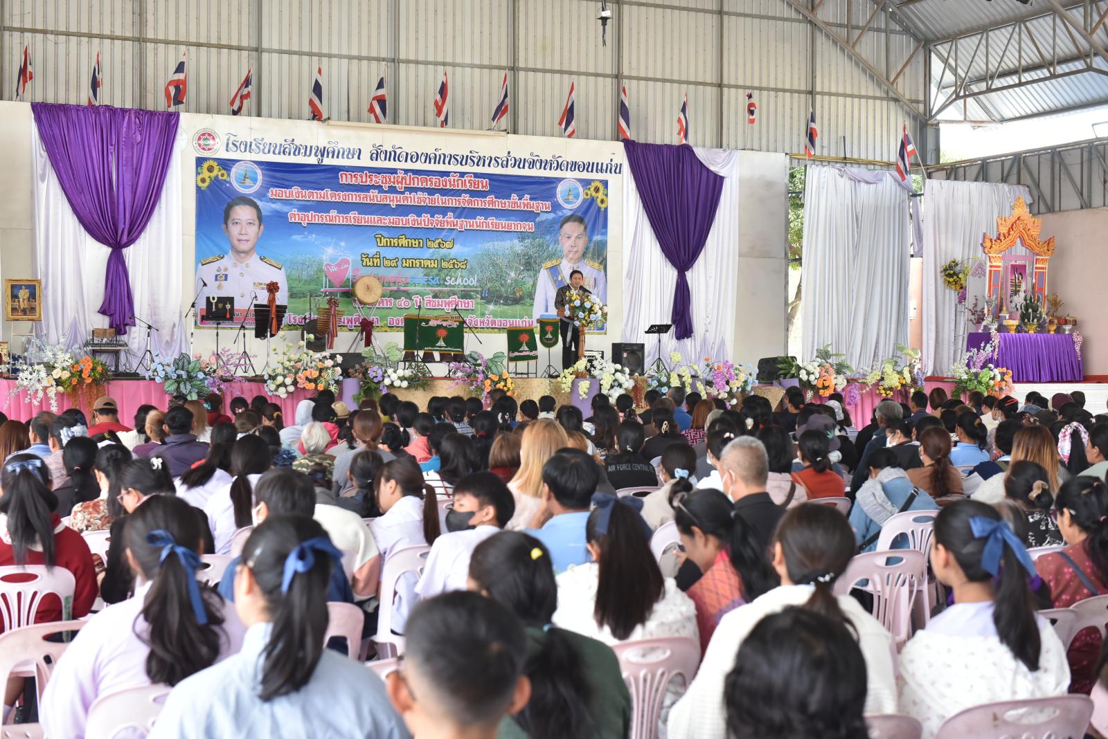 เมื่อวันที่ 29 มกราคม 2568 เวลา 09.30 น. นายวัฒนา ช่างเหลา นายก อบจ.ขอนแก่น เป็นประธานเปิดการประชุมผู้ปกครองนักเรียน มอบเงินตามโครงการสนับสนุนค่าใช้จ่ายในการจัดการศึกษาขั้นพื้นฐาน ค่าอุปกรณ์การเรียนและมอบเงินปัจจัยพื้นฐานนักเรียนยากจน ของโรงเรียนสีชมพูศึกษา ภาคเรียนที่ 2 ปีการศึกษา 2567 โดยมี ดร.บุญจันทร์ มูลกัน ผอ.โรงเรียนสีชมพูศึกษา กล่าวรายงาน ในโอกาสนี้มี คณะผู้บริหารโรงเรียน คณะกรรมการบริหารสถานศึกษา ผู้ปกครองนักเรียนโรงเรียนสีชมพูศึกษา เข้าเป็นเกียรติในพิธี ณ หอประชุมโรงเรียนสีชมพูศึกษา อ.สีชมพู จ.ขอนแก่น