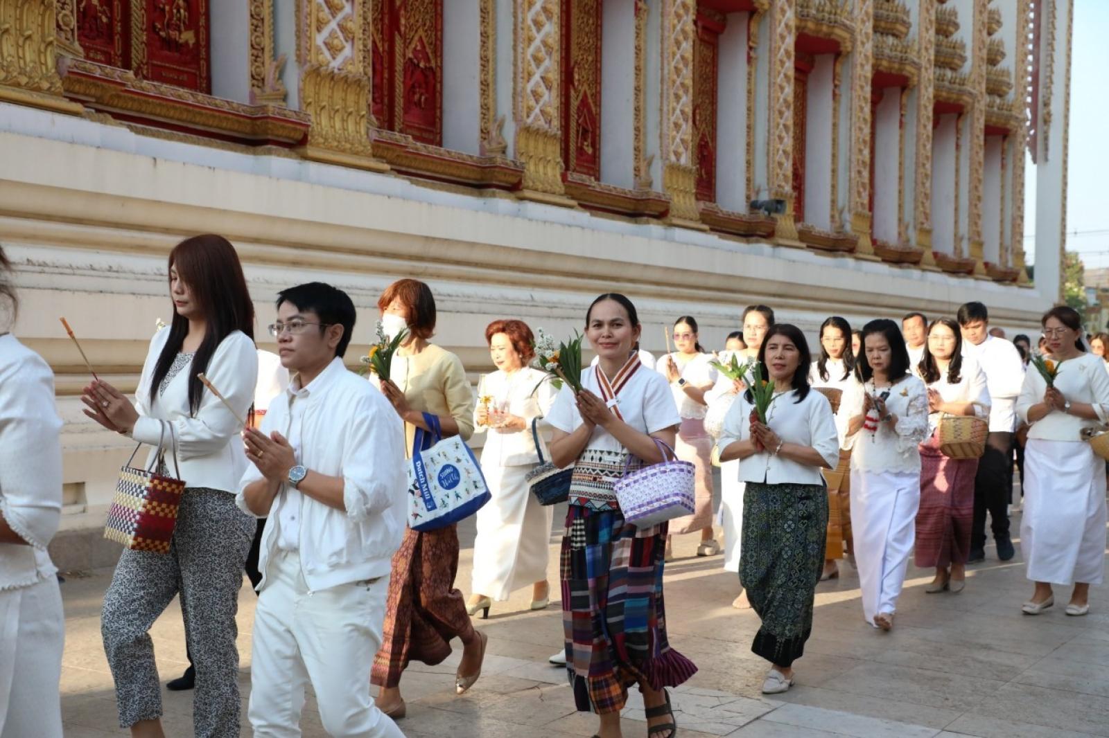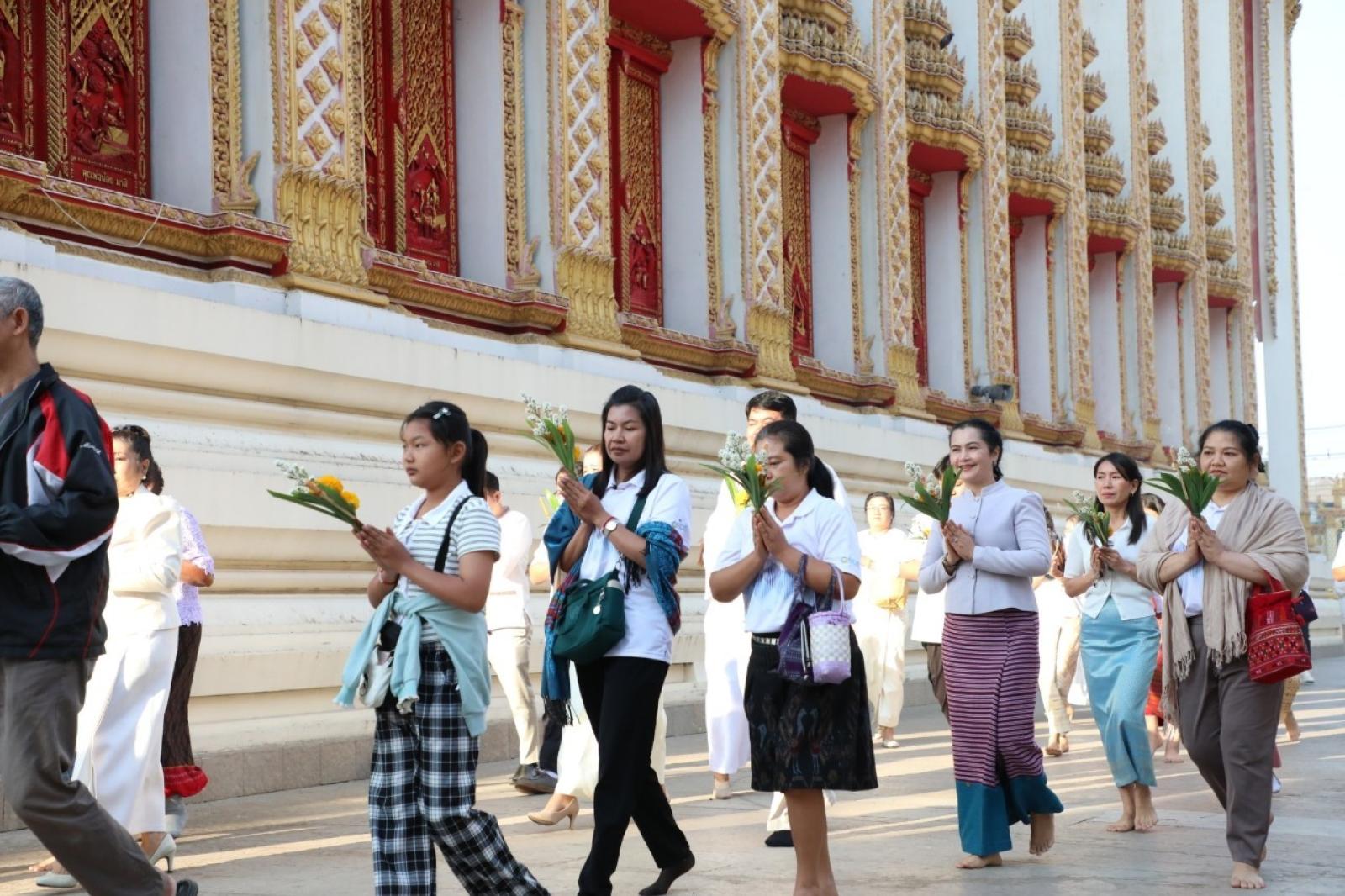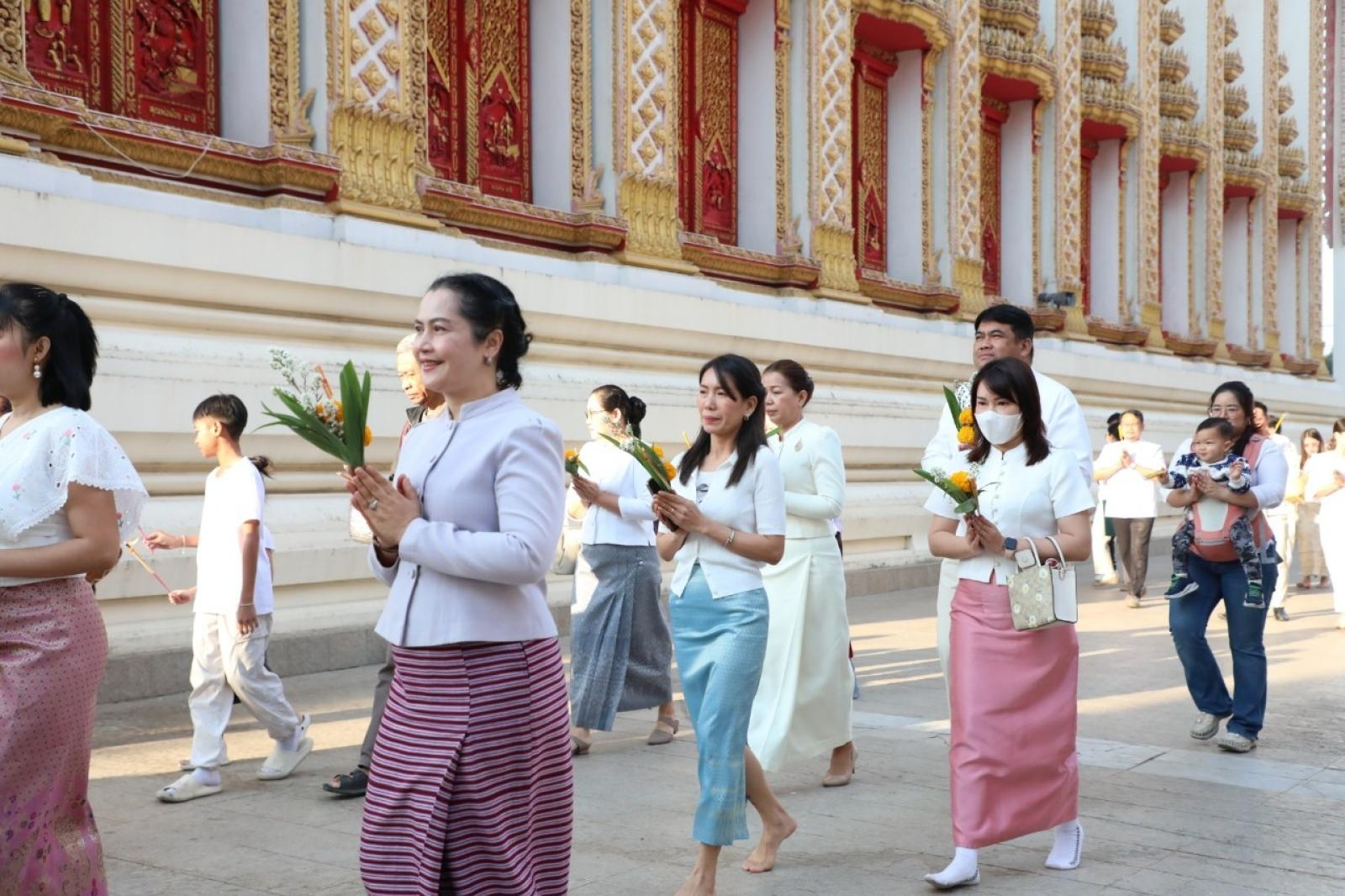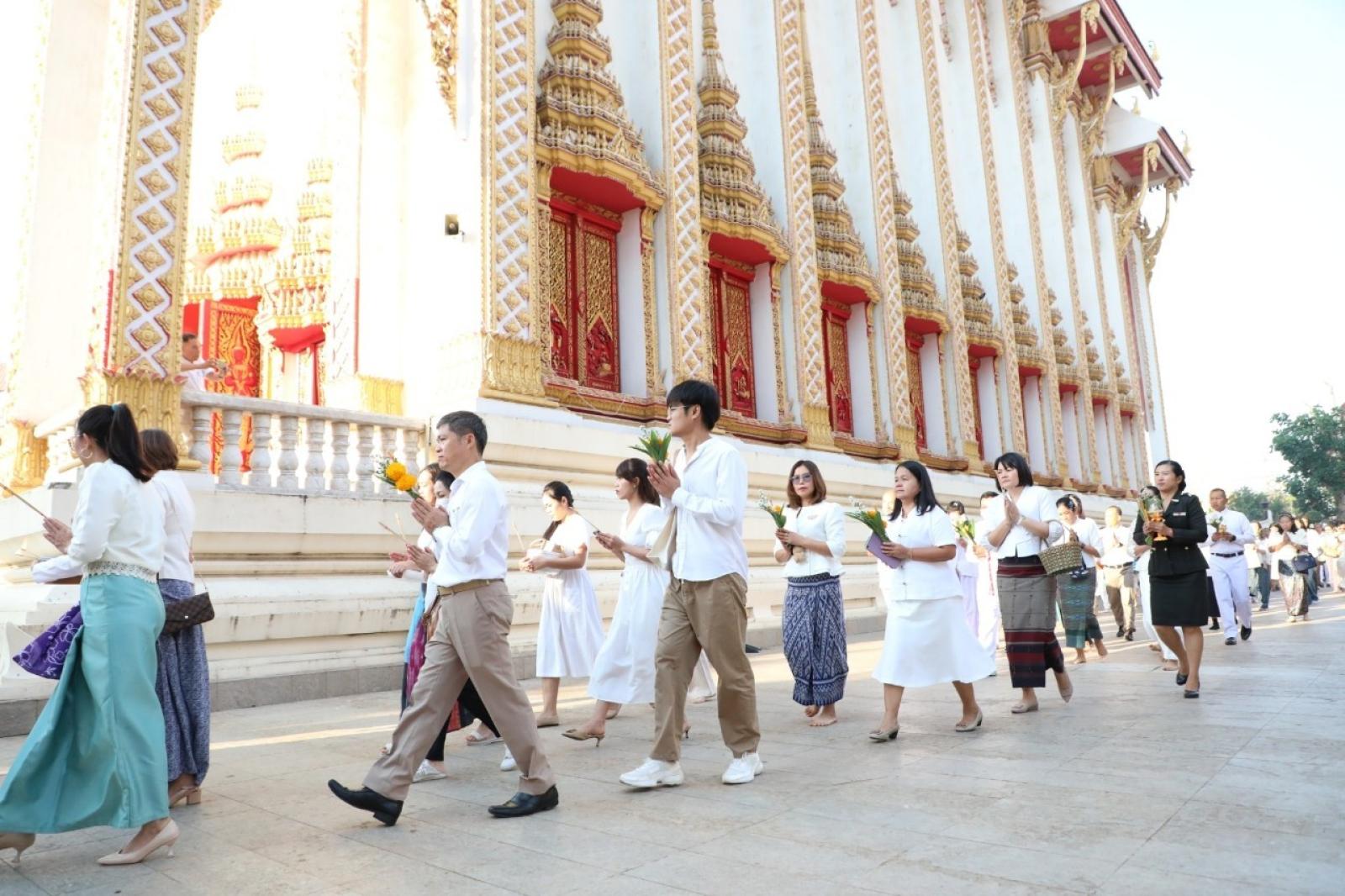 วันที่ 12 กุมภาพันธ์ 2568 เวลา 07.00 น. นายวัฒนา ช่างเหลา นายกองค์การบริหารส่วนจังหวัดขอนแก่น มอบหมายให้นางบุษกร ศรีสุวรรณ์ ผู้อำนวยการส่วนส่งเสริมการศึกษา ศาสนาและวัฒนธรรม พร้อมด้วยหัวหน้าส่วนราชการจากองค์การบริหารส่วนจังหวัดขอนแก่น เข้าร่วมกิจกรรมส่งเสริมพระพุทธศาสนา เนื่องในเทศกาลวันมาฆบูชา ประจำปี 2568 เพื่อส่งเสริมให้พุทธศาสนิกชนได้มีส่วนร่วมกิจกรรมทางพระพุทธศาสนา และกิจกรรมส่งเสริมคุณธรรม จริยธรรม ณ วัดธาตุ พระอารามหลวง ตำบลในเมือง อำเภอเมือง จังหวัดขอนแก่น โดยมีนายประจวบ รักแพทย์ รองผู้ว่าราชการจังหวัดขอนแก่น เป็นประธานในพิธี