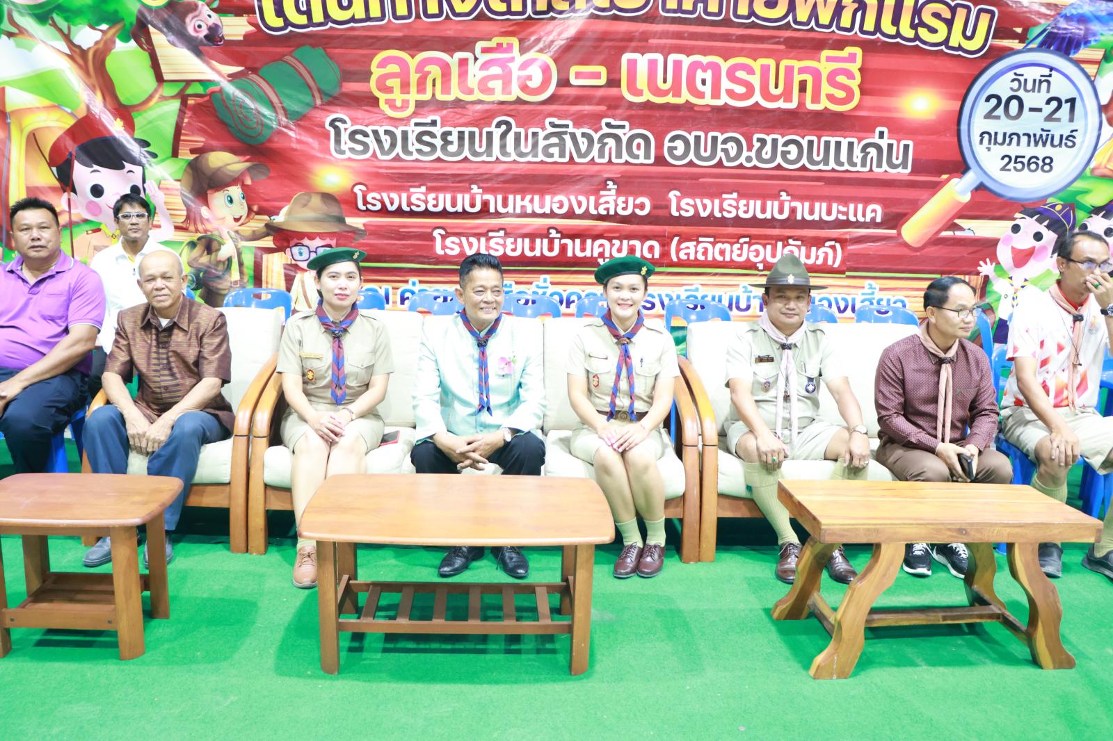 วันที่ 20 กุมภาพันธ์ 2568 เวลา 19.30 น. นายกองค์การบริหารส่วนจังหวัดขอนแก่น นายวัฒนา ช่างเหลา มอบหมายให้ นายอดุลย์ คามดิษฐ์ รองนายกองค์การบริหารส่วนจังหวัดขอนแก่น เป็นประธานในพิธีเปิดค่ายชุมนุมรอบกองไฟลูกเสือ - เนตรนารี โรงเรียนในสังกัด อบจ.ขอนแก่น ปีการศึกษา 2568 ในโอกาสนี้มี นายกิตติชัย อุทธา ผู้อำนวยการส่วนบริหารการศึกษา รักษาราชการแทน ผู้อำนวยการสำนักการศึกษา ศาสนาและวัฒนธรรม ผู้อำนวยการสถานศึกษา รองผู้อำนวยการสถานศึกษา คณะกรรมการสถานศึกษา ผู้นำท้องถิ่น ผู้นำท้องที่ เข้าร่วมพิธีเปิดในครั้งนี้ ณ ค่ายลูกเสือชั่วคราวโรงเรียนบ้านหนองเสี้ยว ตำบลวังหิน อ.หนองสองห้อง จังหวัดขอนแก่น โดยกิจกรรมดังกล่าวจัดขึ้นเพื่อเป็นการทดสอบสมรรถภาพทางร่างกายและเดินทางไกล การอยู่ค่ายพักแรมของนักเรียนชั้นประถมศึกษาที่ 4-6 โดยมีโรงเรียนที่เข้าร่วมกิจกรรมดังกล่าว 3 โรงเรียน มีโรงเรียนบ้านหนองเสี้ยว โรงเรียนบ้านบะแค โรงเรียนคูขาดสถิตย์อุปถัมภ์