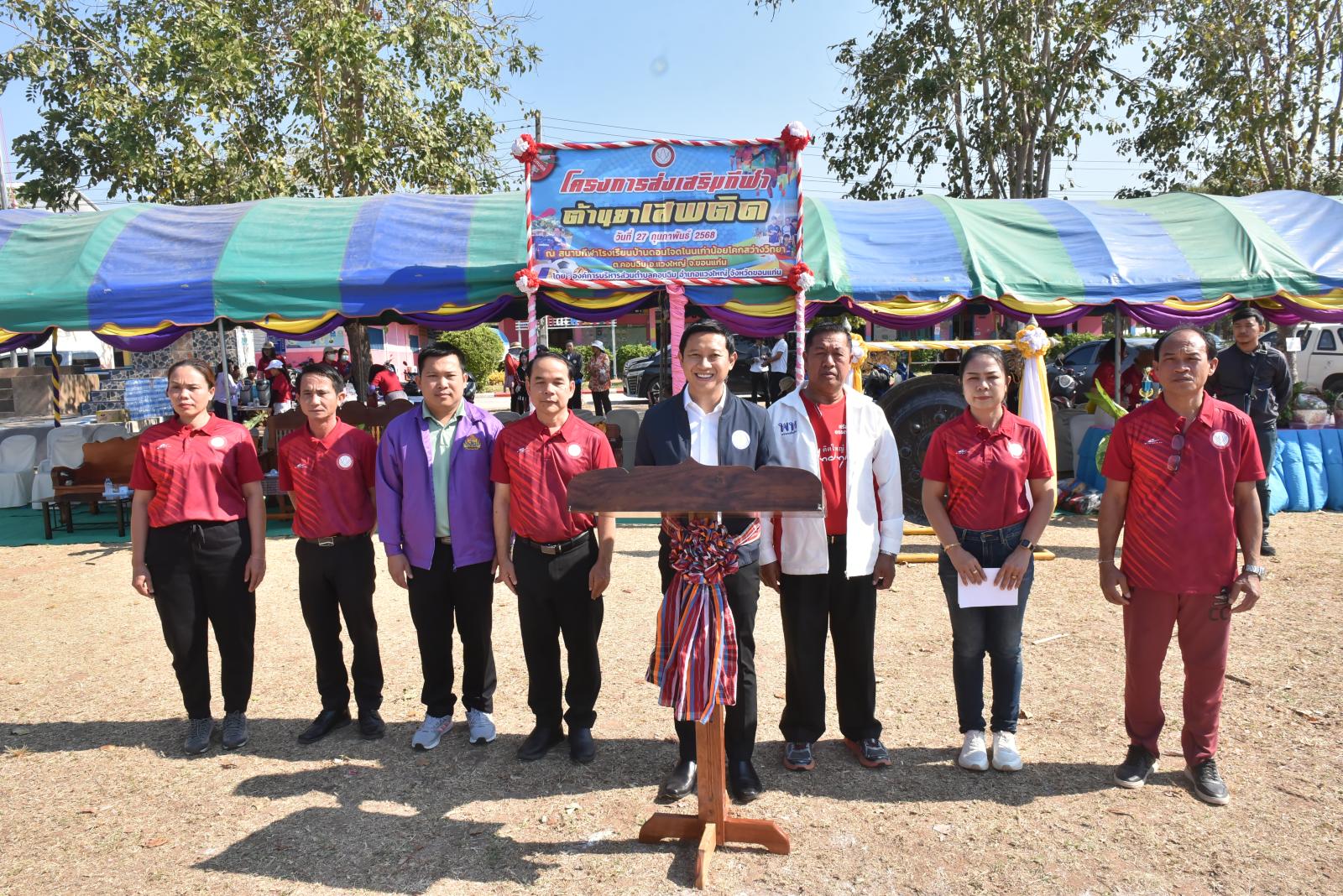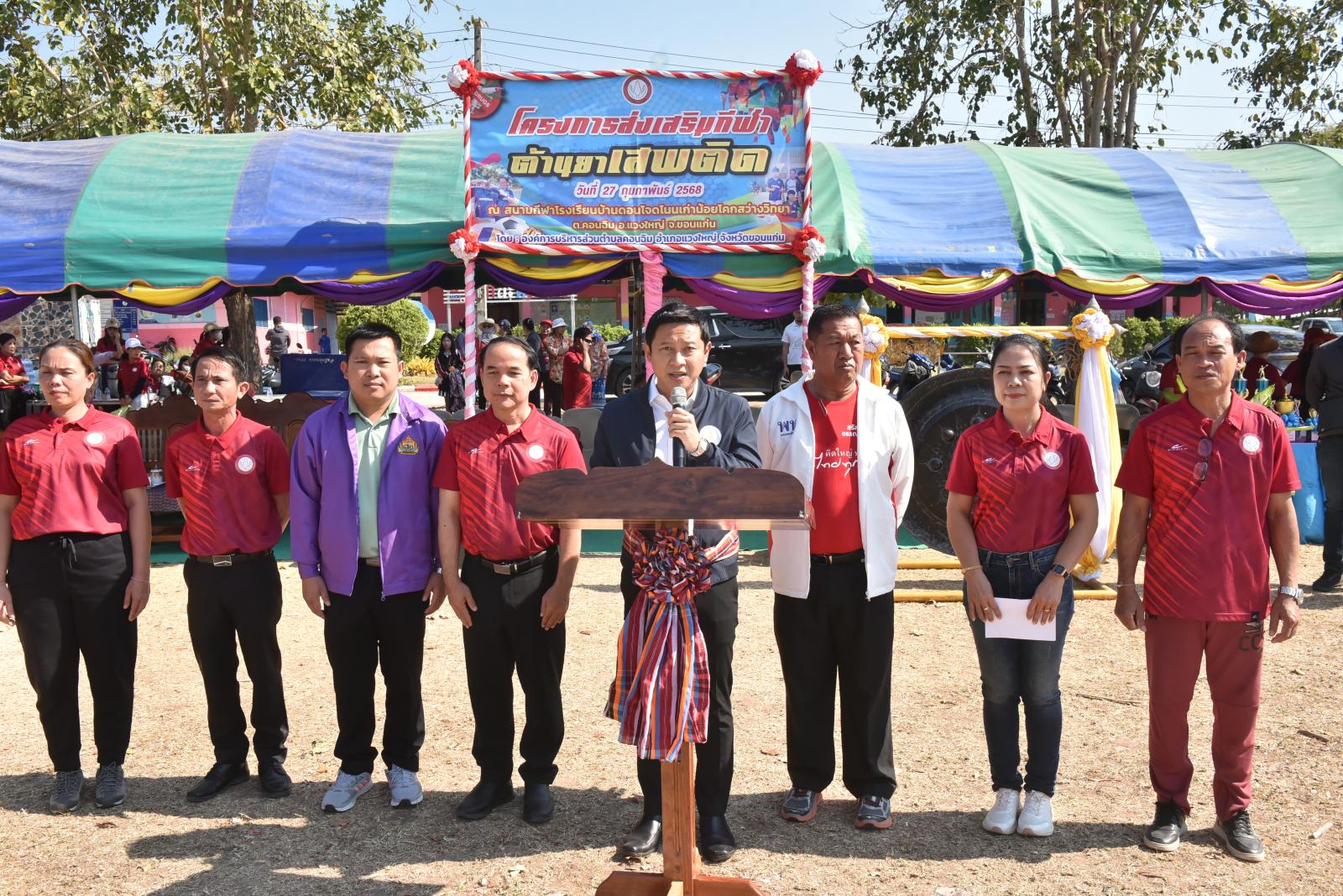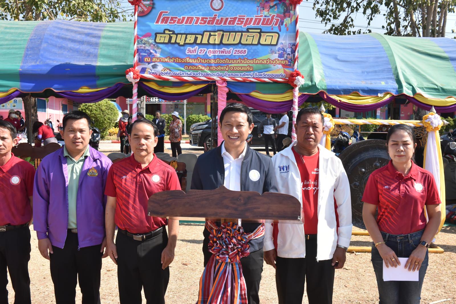 เมื่อวันที่ 27 กุมภาพันธ์ 2568 เวลา 09.30 น. นายวัฒนา ช่างเหลา นายก อบจ.ขอนแก่น เป็นประธานเปิดโครงการส่งเสริมกีฬาต้านยาเสพติด ประจำปีงบประมาณ พ.ศ.2568 โดยมี นายชัยวัฒน์ ดอกไม้งาม นายก อบต.คอนฉิม กล่าวรายงาน ในโอกาสนี้มี นายกิจจา หมอกเจริญ นายอำเภอแวงใหญ่ ผู้นำท้องถิ่น กำนัน ผู้ใหญ่บ้าน ในพื้นที่ตำบลคอนฉิม เข้าร่วมเป็นเกียรติในพิธี ณ สนามกีฬาโรงเรียนดอนโจดโนนเก่าน้อยโคกสว่างวิทยา อ.แวงใหญ่ จ.ขอนแก่น