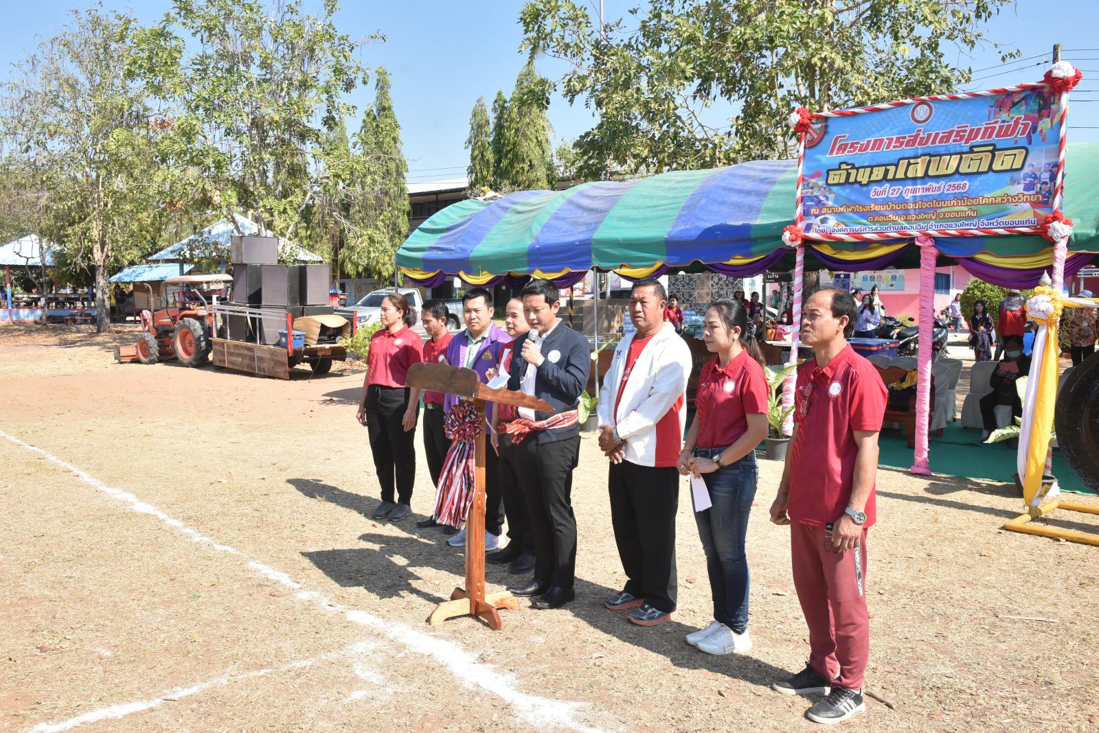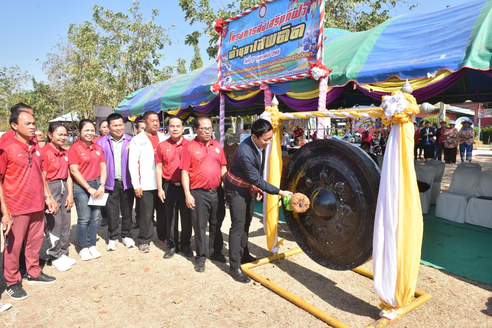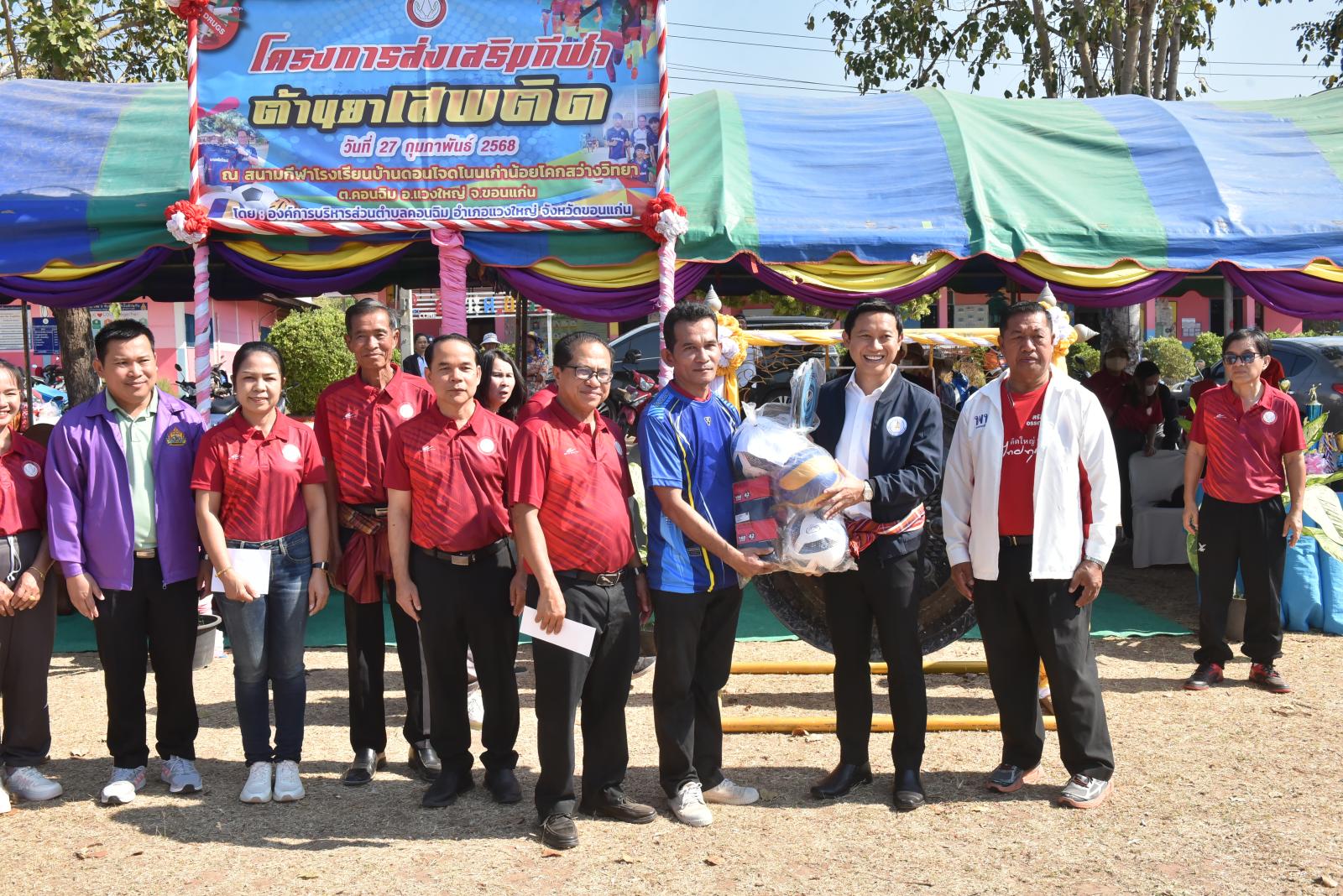 เมื่อวันที่ 27 กุมภาพันธ์ 2568 เวลา 09.30 น. นายวัฒนา ช่างเหลา นายก อบจ.ขอนแก่น เป็นประธานเปิดโครงการส่งเสริมกีฬาต้านยาเสพติด ประจำปีงบประมาณ พ.ศ.2568 โดยมี นายชัยวัฒน์ ดอกไม้งาม นายก อบต.คอนฉิม กล่าวรายงาน ในโอกาสนี้มี นายกิจจา หมอกเจริญ นายอำเภอแวงใหญ่ ผู้นำท้องถิ่น กำนัน ผู้ใหญ่บ้าน ในพื้นที่ตำบลคอนฉิม เข้าร่วมเป็นเกียรติในพิธี ณ สนามกีฬาโรงเรียนดอนโจดโนนเก่าน้อยโคกสว่างวิทยา อ.แวงใหญ่ จ.ขอนแก่น