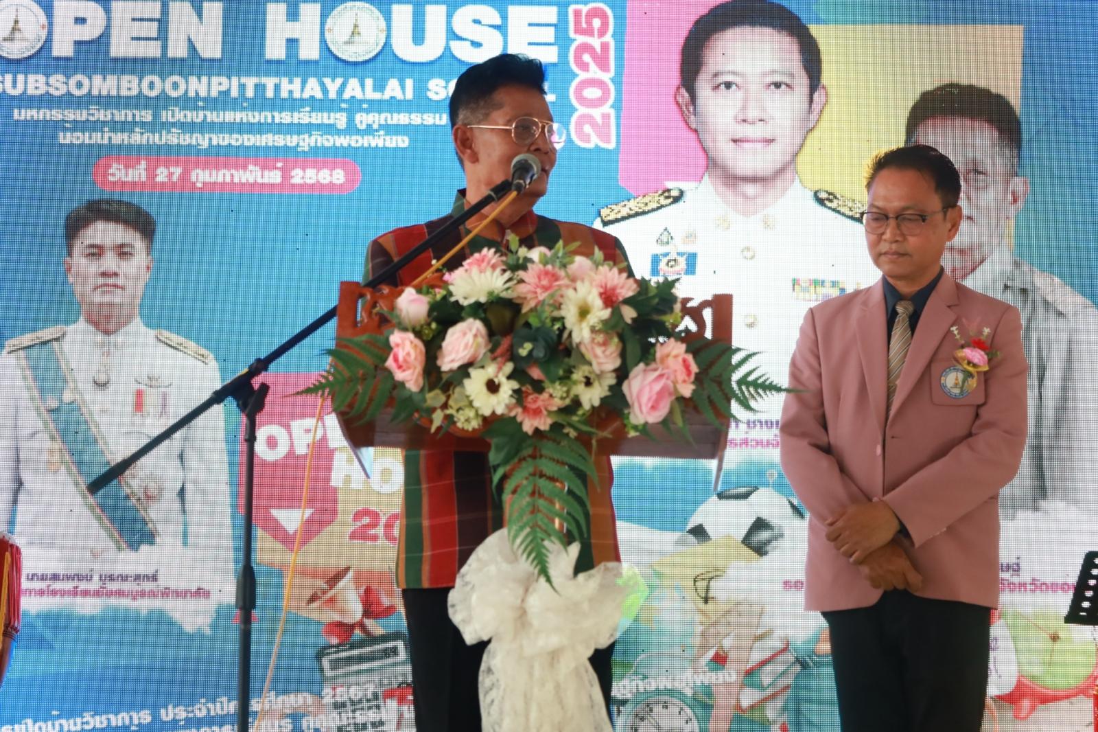 วันที่ 27 กุมภาพันธ์ 2568 เวลา 10.00 น. องค์การบริหารส่วนจังหวัดขอนแก่น นำโดย นายวัฒนา ช่างเหลา นายกองค์การบริหารส่วนจังหวัดขอนแก่น มอบหมายให้ นายอดุลย์ คามดิษฐ์ รองนายกองค์การบริหารส่วนจังหวัดขอนแก่น เป็นประธานในพิธีเปิดบ้านแห่งการเรียนรู้ คู่คุณธรรม น้อมนำหลักปรัชญาของเศรษฐกิจพอเพียง ประจำปี 2568 โดยมี นายสมพงษ์ บูรณะสุทธิ์ ผู้อำนวยการโรงเรียนซับสมบูรณ์พิทยาลัย กล่าวรายงานถึงวัตถุประสงค์เพื่อเปิดโอกาสให้นักเรียนและครูได้แสดงผลงานได้แลกเปลี่ยนเรียนรู้สิ่งต่างๆ ที่เกิดจากการจัดการเรียนการสอนบูรณาการเศรษฐกิจพอเพียง ในโอกาสนี้มี นายกิตติชัย อุทธา รักษาราชการแทน ผู้อำนวยการสำนักการศึกษา ศาสนา และวัฒธนธรรม ผู้บริหารโรงเรียน หัวหน้าส่วนราชการ ครู นักเรียน และผู้ปกครอง เข้าร่วมพิธี ณ หอประชุมโรงเรียนซับสมบูรณ์พิทยาลัย อ.โคกโพธิ์ไชย จังหวัดขอนแก่น