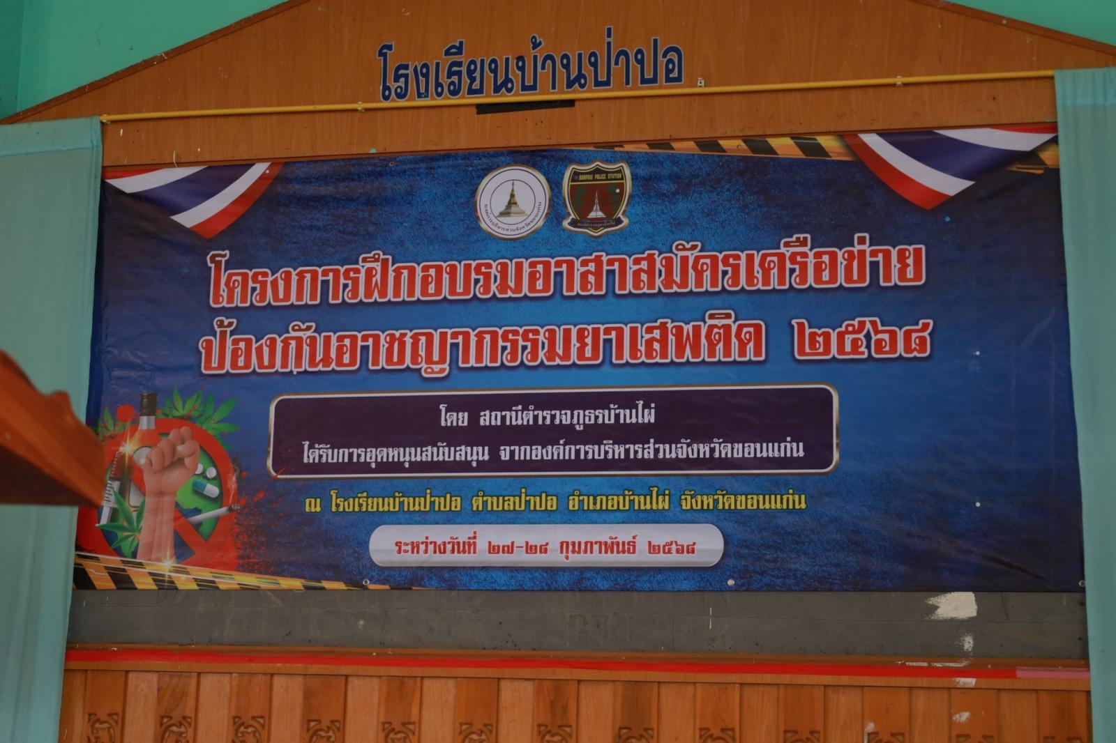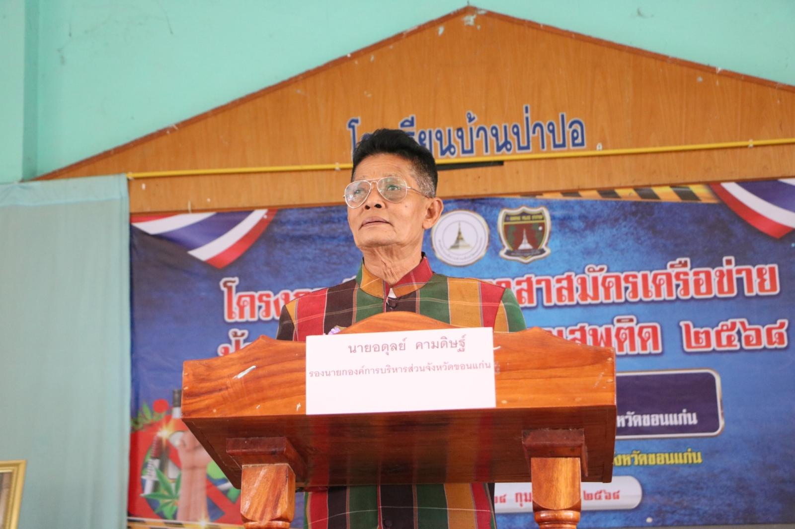 เมื่อวันที่ 27 กุมภาพันธ์ 2568 เวลา 11.00น. องค์การบริหารส่วนจังหวัดขอนแก่น นำโดย นายวัฒนา ช่างเหลา นายกองค์การบริหารส่วนจังหวัดขอนแก่น มอบหมายให้ นายอดุลย์ คามดิษฐ์ รองนายกองค์การบริหารส่วนจังหวัดขอนแก่น เป็นประธานในพิธีเปิดโครงการฝึกอบรมอาสาสมัครเครือข่ายป้องกันอาชญากรรมยาเสพติด ประจำปี พ.ศ.2568 โดยมี พ.ต.ต.ประสงค์ บรรเทา สารวัตรป้องกันปราบปรามอาชญากรรม สภ.บ้านไผ่ กล่าวรายงาน ในโอกาสนี้มี นายวัลลพ วลัยศรี ปลัดอาวุโสอำเภอบ้านไผ่ สาธารณสุขอำเภอบ้านไผ่ ผอ.รพ.สต.ตำบลป่าปอ หัวหน้าส่วนราชการ ผู้นำท้องที่ ผู้นำท้องถิ่น เข้าร่วมในพีธี ณ ห้องประชุมโรงเรียนบ้านป่าปอ ตำบลป่าปอ อำเภอบ้านไผ่ จังหวัดขอนแก่น
