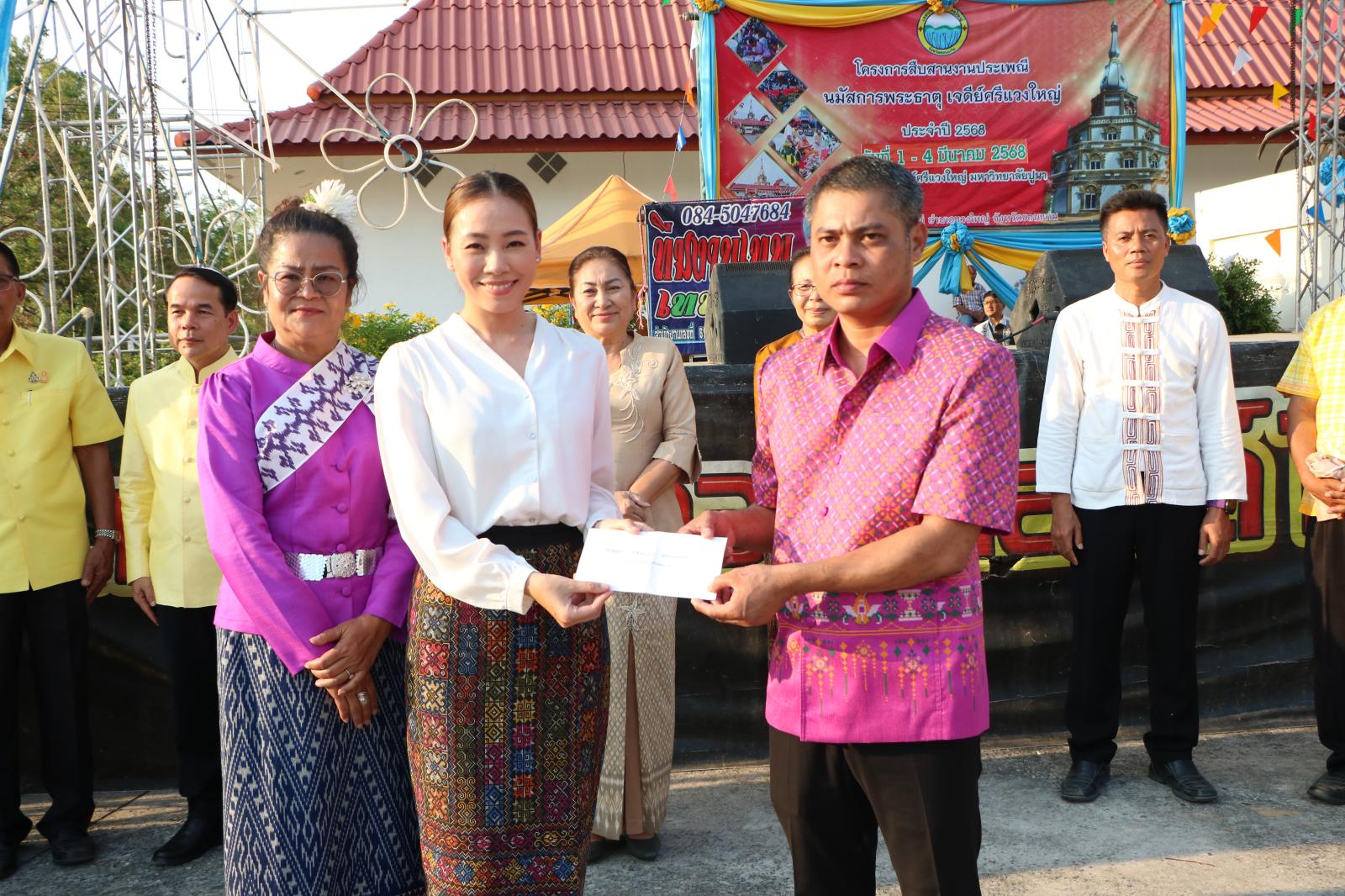 วันที่ 1 มีนาคม 2568 เวลา 16.00น. องค์การบริหารส่วนจังหวัดขอนแก่น นำโดย นายวัฒนา ช่างเหลา นายกองค์การบริหารส่วนจังหวัดขอนแก่น มอบหมายให้ นางดวงแข อรรณนพพร รองนายกองค์การบริหารส่วนจังหวัดขอนแก่น เข้าร่วมพิธีรำบวงสรวงบูชาพระธาตุเจดีย์ศรีแวงใหญ่ โดยมี นางสาวสรัสนันท์ อรรณนพพร สมาชิกสภาผู้แทนราษฎร จ.ขอนแก่น เขต 9 เป็นประธานในพิธี พร้อมด้วย นายกิจจา หมอกเจริญ นายอำเภอแวงใหญ่ นายทองสุข ธนูรัตน์ สมาชิกสภาองค์การบริหารส่วนจังหวัดขอนแก่นเขต อ.แวงใหญ่ นายสายัณห์ งวงช้าง นายกเทศมนตรีตำบลแวงใหญ่ คณะผู้บริหารโรงเรียน ผู้นำท้องที่ ผู้นำท้องถิ่น และแขกผู้มีเกียรติ เข้าร่วมในพิธี ณ บริเวณพระธาตุเจดีย์ศรีแวงใหญ่ ตำบลแวงใหญ่ อำเภอแวงใหญ่ จังหวัดขอนแก่น