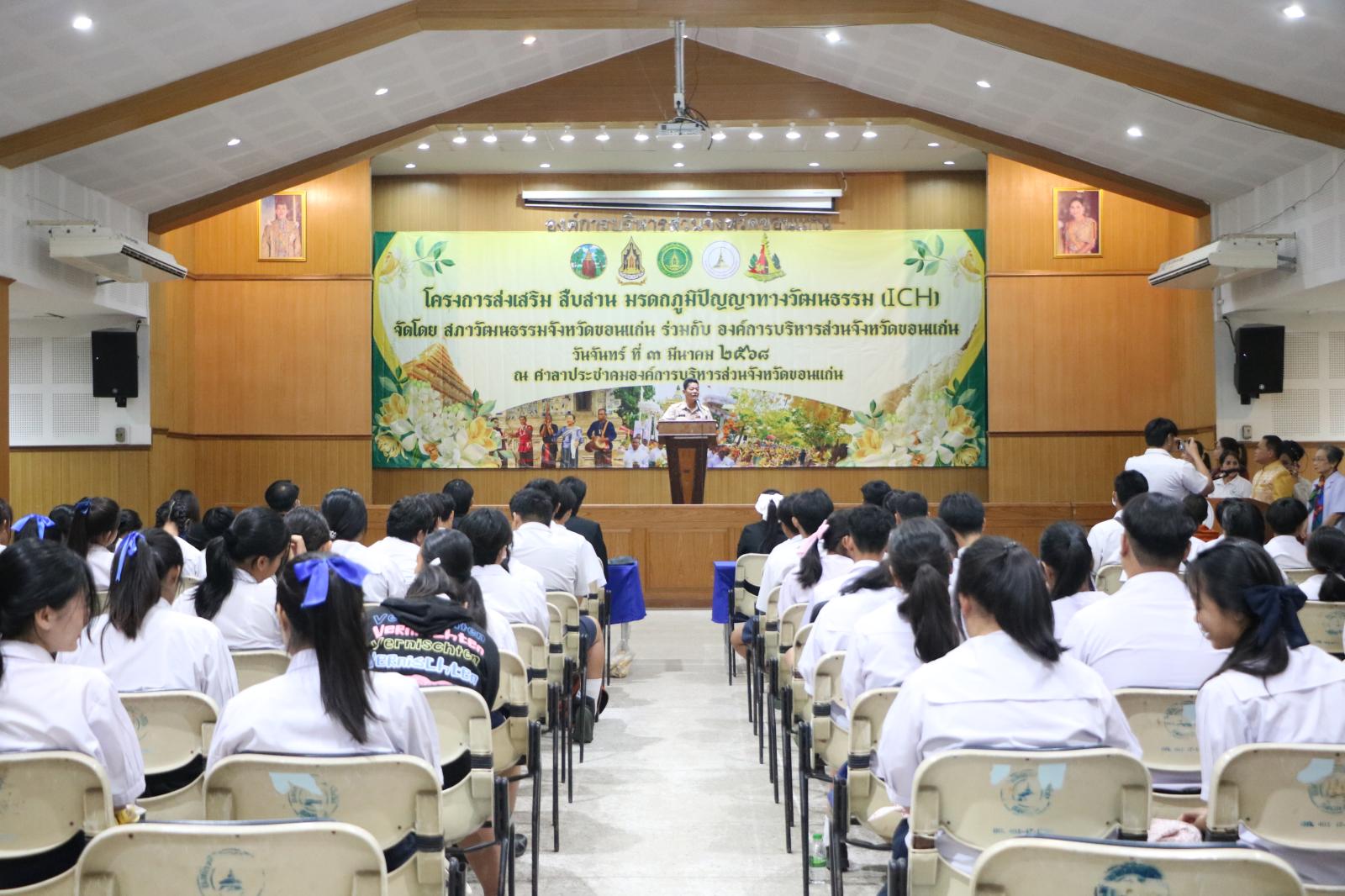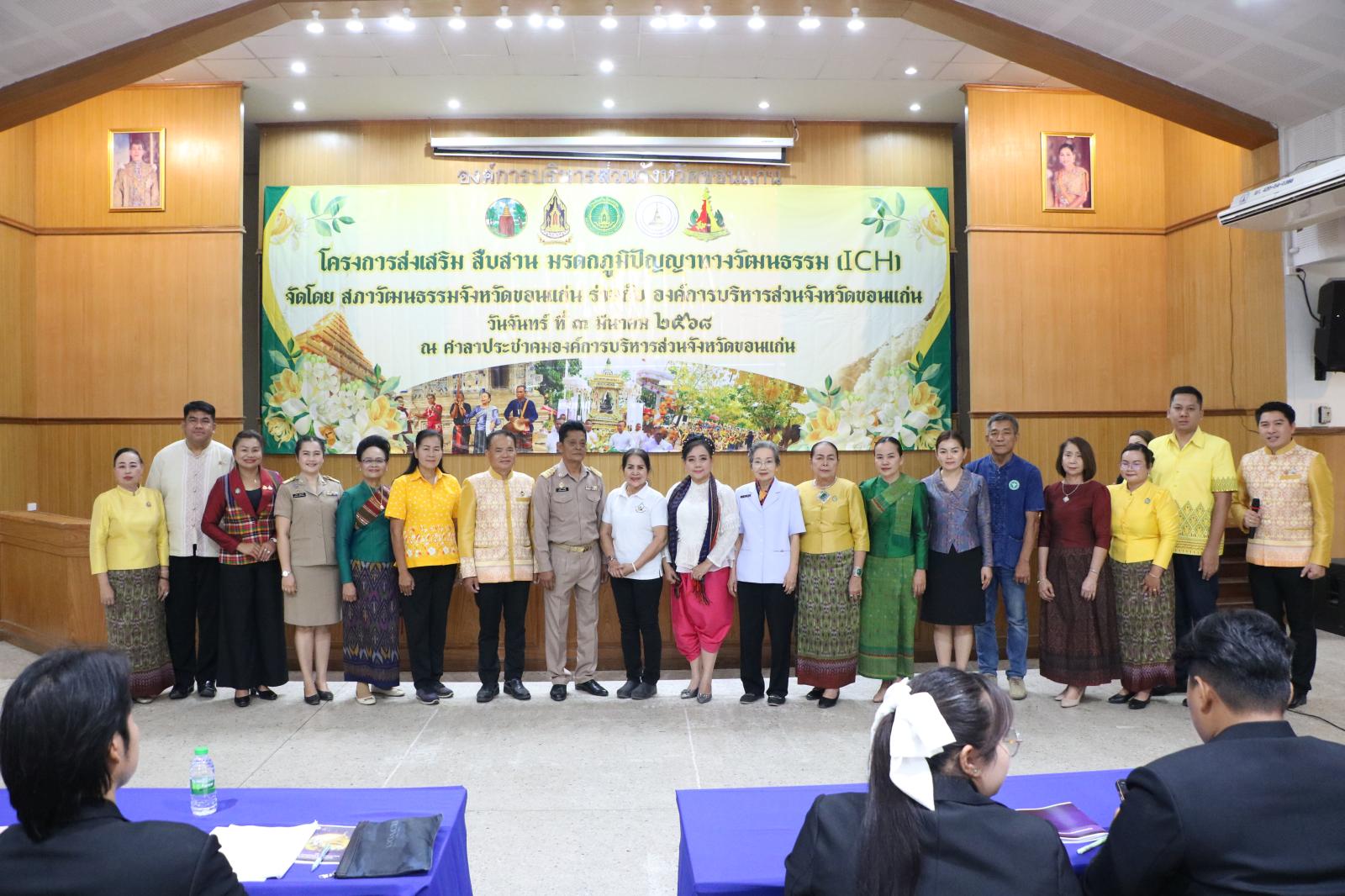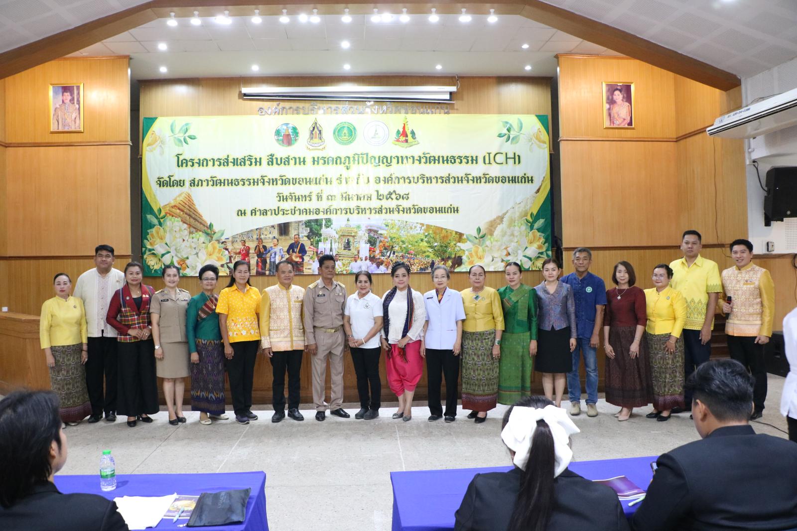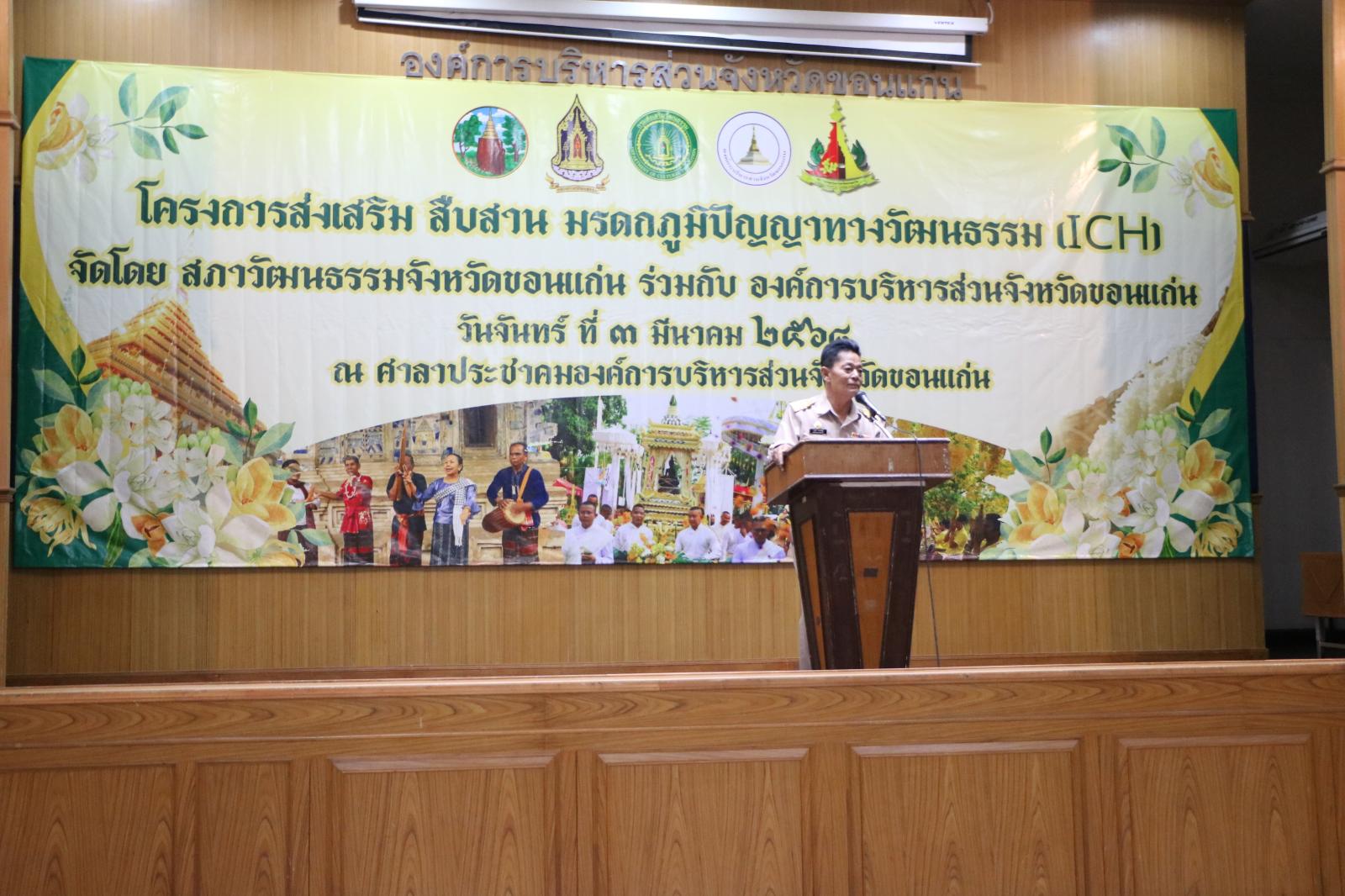 เมื่อวันที่ 3 มีนาคม 2568 เวลา 09.30 น. องค์การบริหารส่วนจังหวัดขอนแก่น นำโดย นายวัฒนา ช่างเหลา นายกองค์การบริหารส่วนจังหวัดขอนแก่น มอบหมายให้ นายอดุลย์ คามดิษฐ์ รองนายกองค์การบริหารส่วนจังหวัดขอนแก่น เป็นประธาน ในพิธีเปิดโครงการส่งเสริม สืบสาน มรดกภูมิปัญญาทางวัฒนธรรม (ICH) โดยมี ดร.เรืองยศ แวดล้อม รองประธานสภาวัฒนธรรม เป็นผู้กล่าวรายงานถึงวัตถุประสงค์ของโครงการ เพื่อปลูกฝังจิตสำนึกแก่เครือข่ายวัฒนธรรมให้เห็นคุณค่าของมรดกภูมิปัญญาทางวัฒนธรรม อีกทั้งเสริมสร้างภูมิคุ้มกันให้เด็กและเยาวชนให้มีคุณธรรมจริยธรรมเป็นคนดีของสังคม ตลอดจนเผยแพ่มรดกทางวัฒนธรรม ภาษาไทยและภาษาถิ่นภูมิปัญญาท้องถิ่น รวมทั้งความหลากหลายของศิลปวัฒนธรรมไทย การเรียนรู้ สร้างความภูมิใจในประวัติศาสตร์และความเป็นไทยให้คงอยู่สืบไป ในโอกาสนี้มีนางบุษกร ศรีสุวรรณ์ ผู้อำนวยการส่วนส่งเสริมการศึกษา ศาสนาและวัฒนธรรม แขกผู้มีเกียรติ คณะผู้บริหาร คณะวิทยากร คณะนักเรียนจากโรงเรียนศรีจันทร์ เข้าร่วมงาน ณ ศาลาประชาคมองค์การบริหารส่วนจังหวัดขอนแก่น