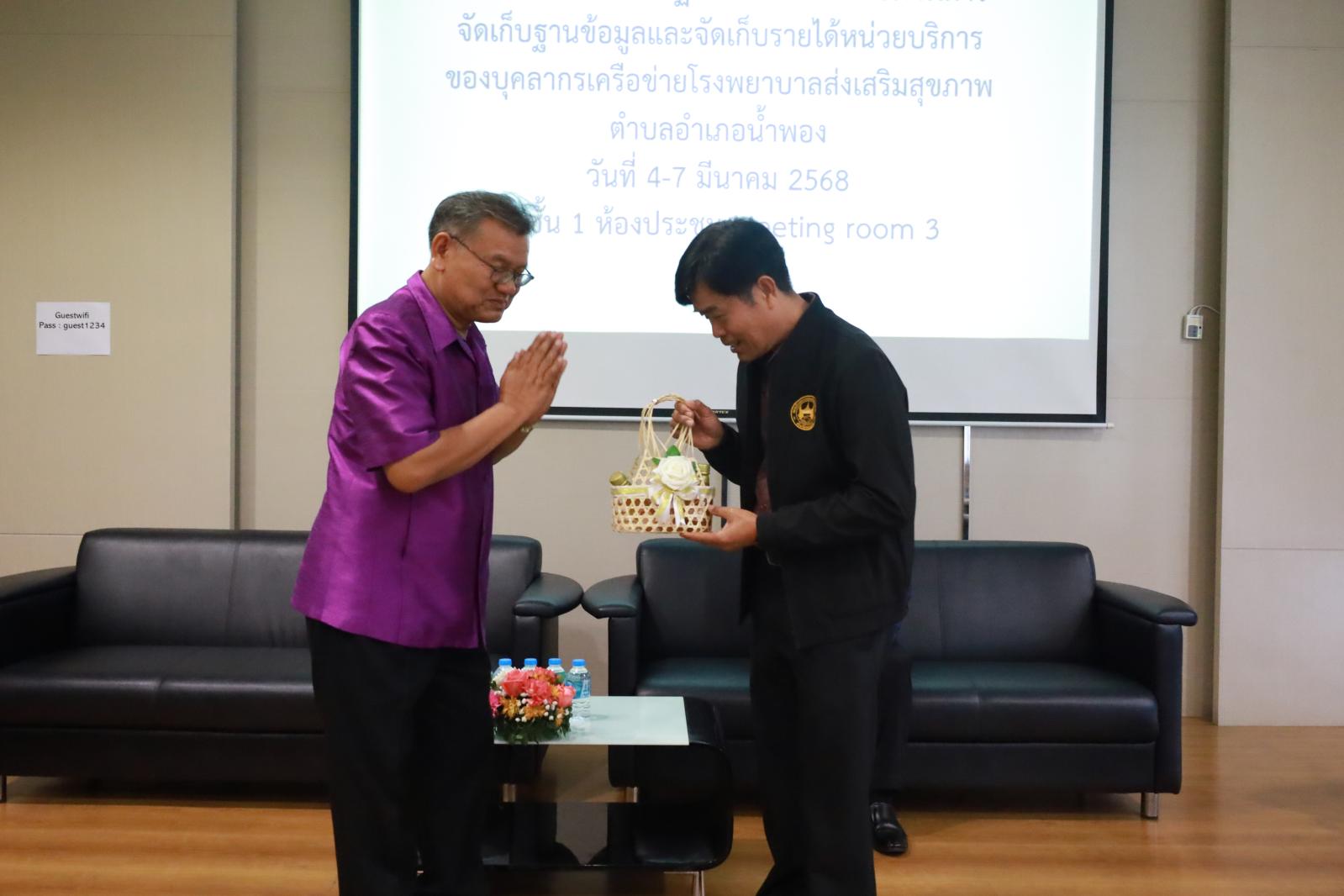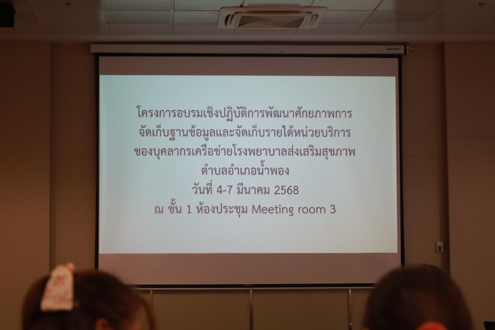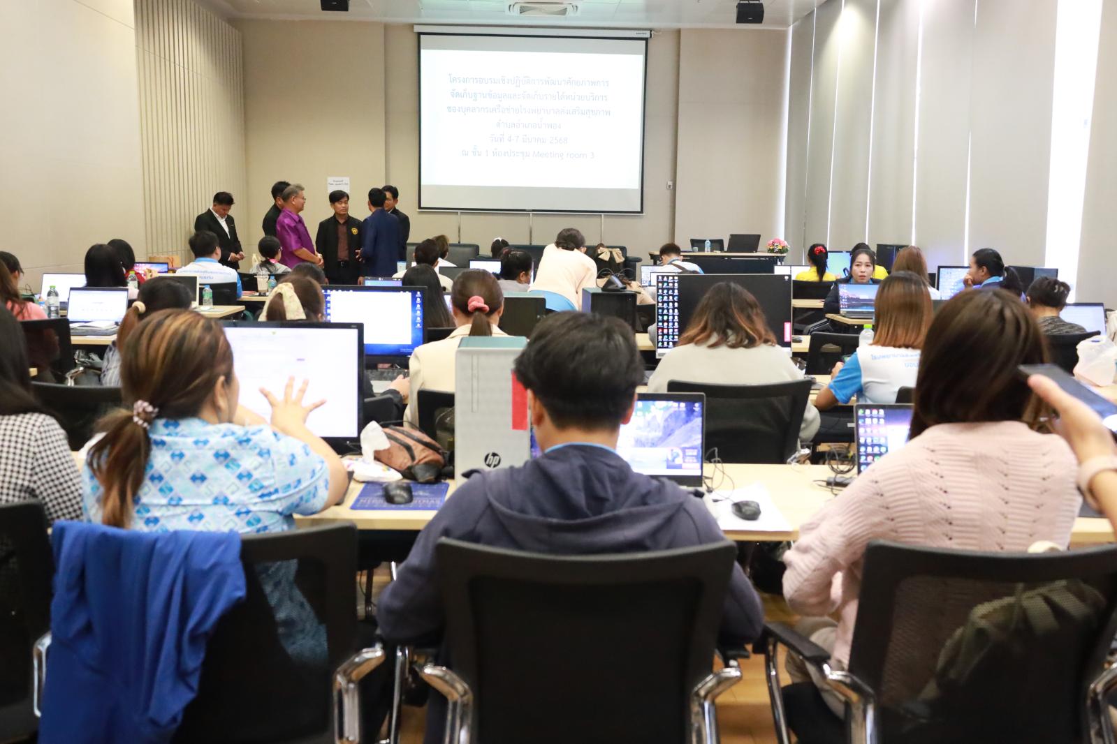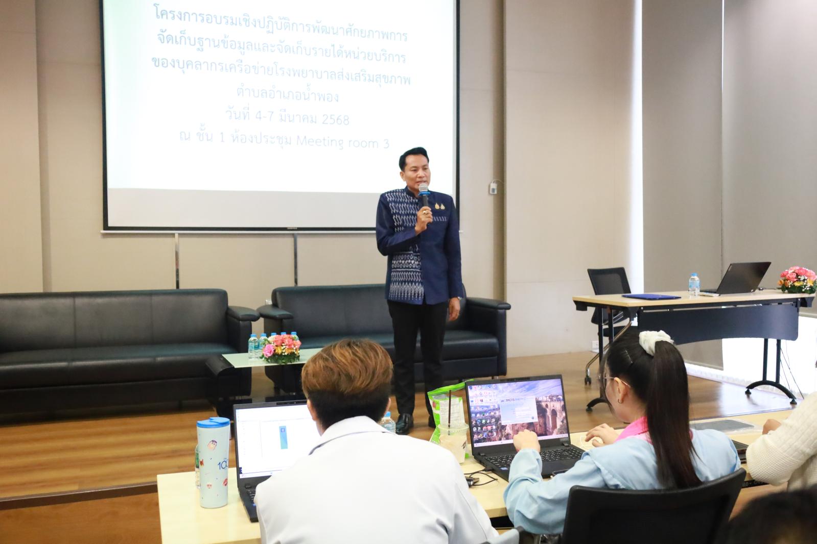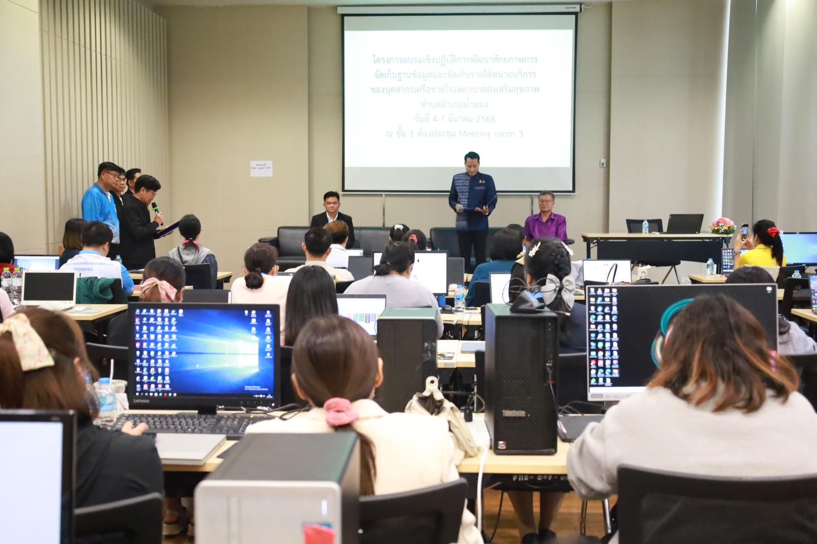 พิธีเปิดโครงการอบรมเชิงปฏิบัติการพัฒนาศักยภาพการจัดการฐานข้อมูลและจัดเก็บรายได้หน่วยบริการของบุคลากรเครือข่ายโรงพยาบาลส่งเสริมสุขภาพตำบล ปีงบประมาณ 2568