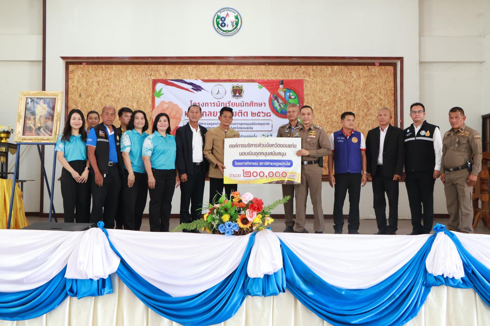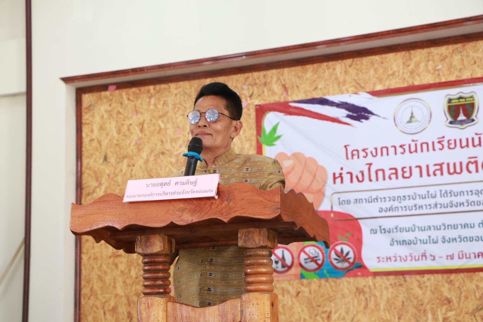 เมื่อวันที่ 5 มีนาคม 2568 เวลา 11.30น. องค์การบริหารส่วนจังหวัดขอนแก่น นำโดย นายวัฒนา ช่างเหลา นายกองค์การบริหารส่วนจังหวัดขอนแก่น มอบหมายให้ นายอดุลย์ คามดิษฐ์ รองนายกองค์การบริหารส่วนจังหวัดขอนแก่น เป็นประธานในพิธีเปิดโครงการนักเรียนนักศึกษาห่างไกลยาเสพติด ประจำปี พ.ศ.2568 พร้อมด้วย นางดวงแข อรรณนพพร รองนายกองค์การบริหารส่วนจังหวัดขอนแก่น โดยมี พ.ต.ต.ประสงค์ บรรเทา สารวัตรป้องกันปราบปรามอาชญากรรม สภ.บ้านไผ่ กล่าวรายงาน ในโอกาสนี้มี นายจิตรายุทธ ฉัตรชัยพลรัตน์ ส.อบจ.ขอนแก่น เขตอำเภอบ้านไผ่ เขต2 นายวัลลพ วลัยศรี ปลัดอาวุโสอำเภอบ้านไผ่ ดร.วราวุธ สร้อยพิมาย ผอ.โรงเรียนบ้านลานวิทยาคม ผู้บริหารท้องถิ่น หัวหน้าส่วนราชการ กำนัน ผู้ใหญ่บ้าน คณะครูและนักเรียนโรงเรียนบ้านลานวิทยาคม เข้าร่วมในพิธี ณ ห้องประชุมโรงเรียนบ้านลานวิทยาคม ตำบลหินตั้ง อำเภอบ้านไผ่ จังหวัดขอนแก่น