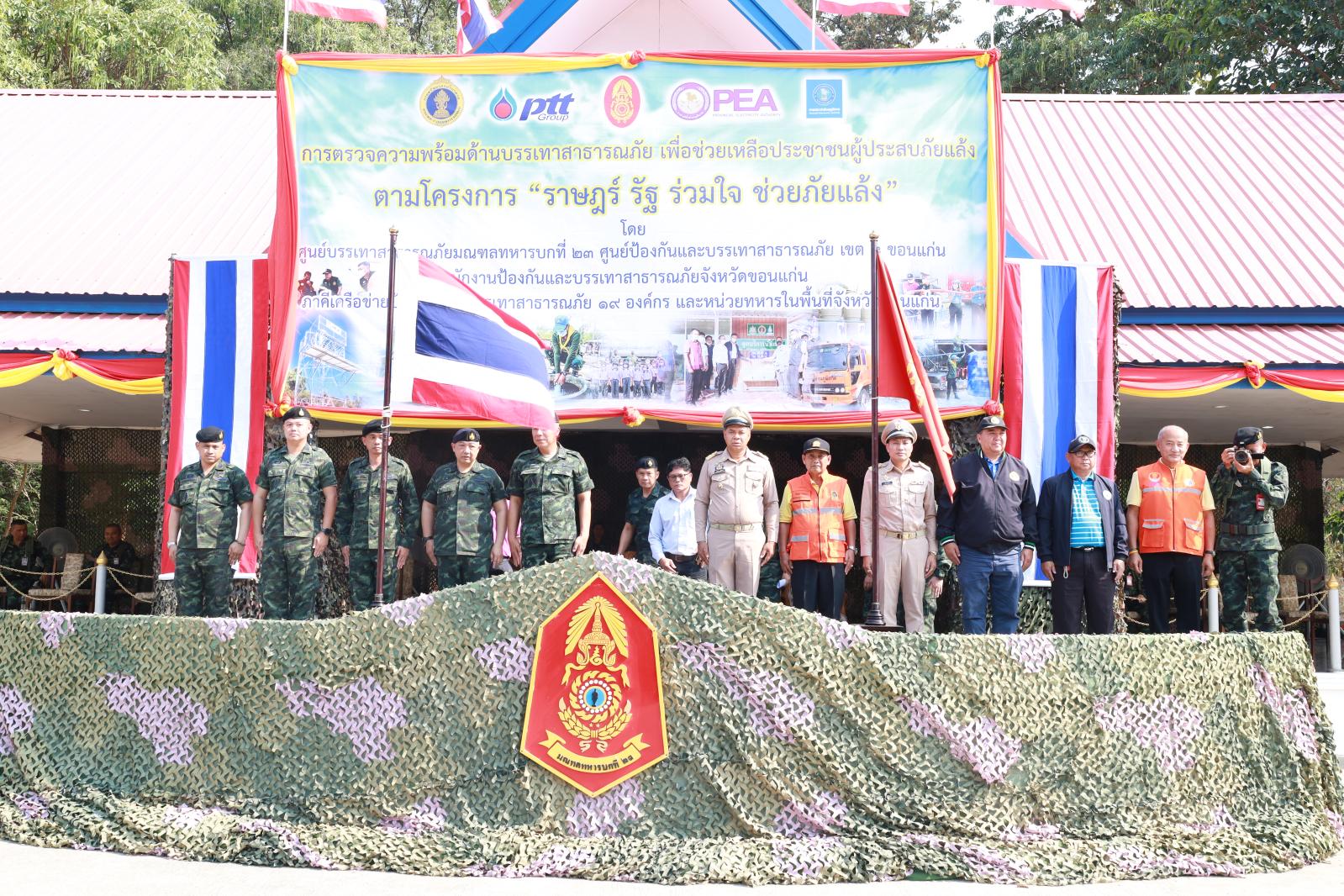 “ราษฎร์ รัฐ ร่วมใจ ช่วยภัยแล้ง” ประจำปี 2568 โดยมี พลตรีกิตติพงษ์ เนื่องชมภู ผู้บัญชาการมณฑลทหารบกที่ 23 เป็นประธานในพิธี พันเอกยุทธนา มหาวัน รองผู้บัญชาการมณฑลทหารบกที่ 23 กล่าวรายงาน ในโอกาสนี้มี หน่วยงานราชการ พลเรือน แขกผู้มีเกียรติ เข้าร่วมพิธี ณ ลานสวนสนาม ค่ายศรีพัชรินทร์ จังหวัดขอนแก่น