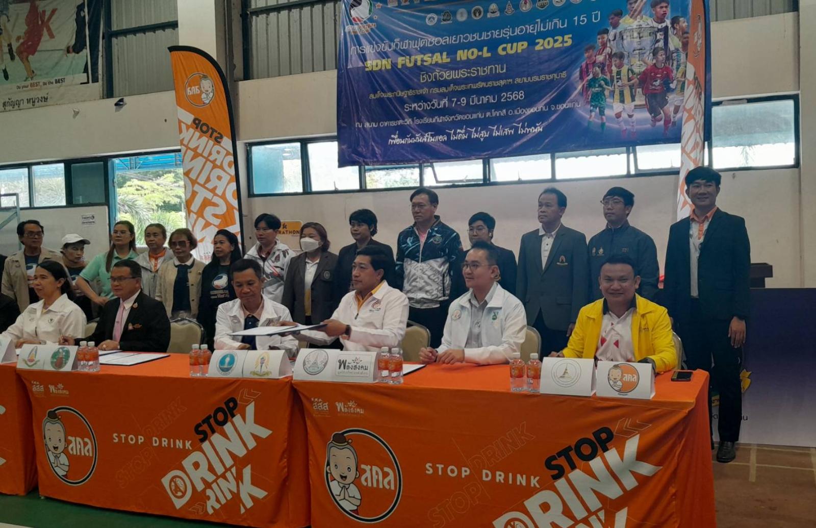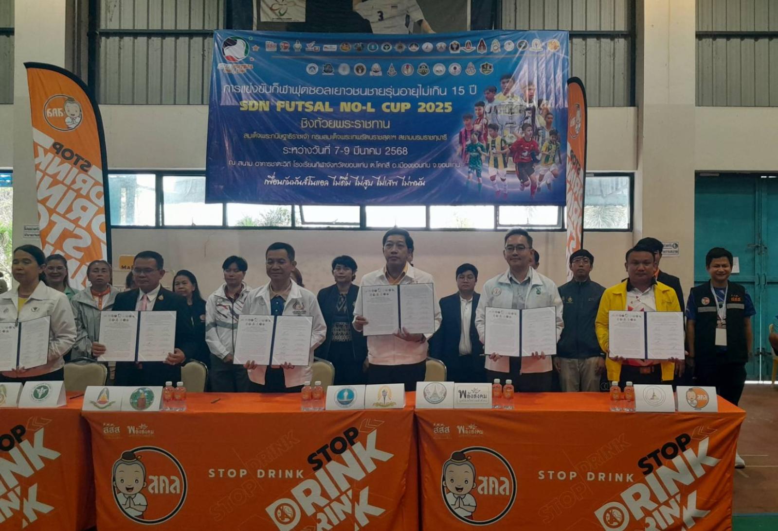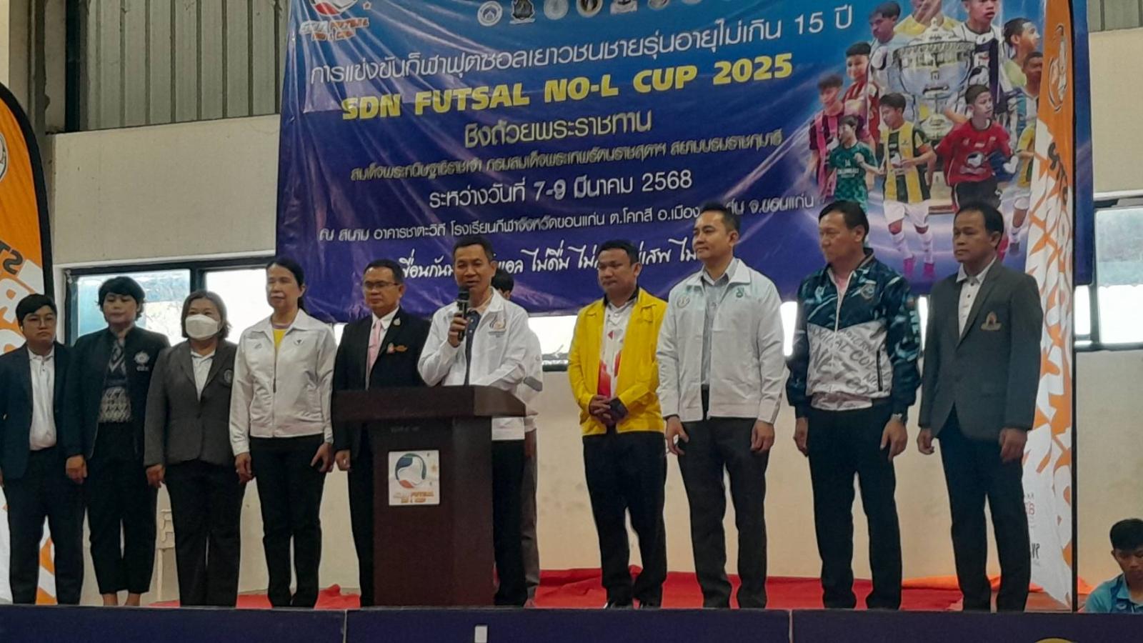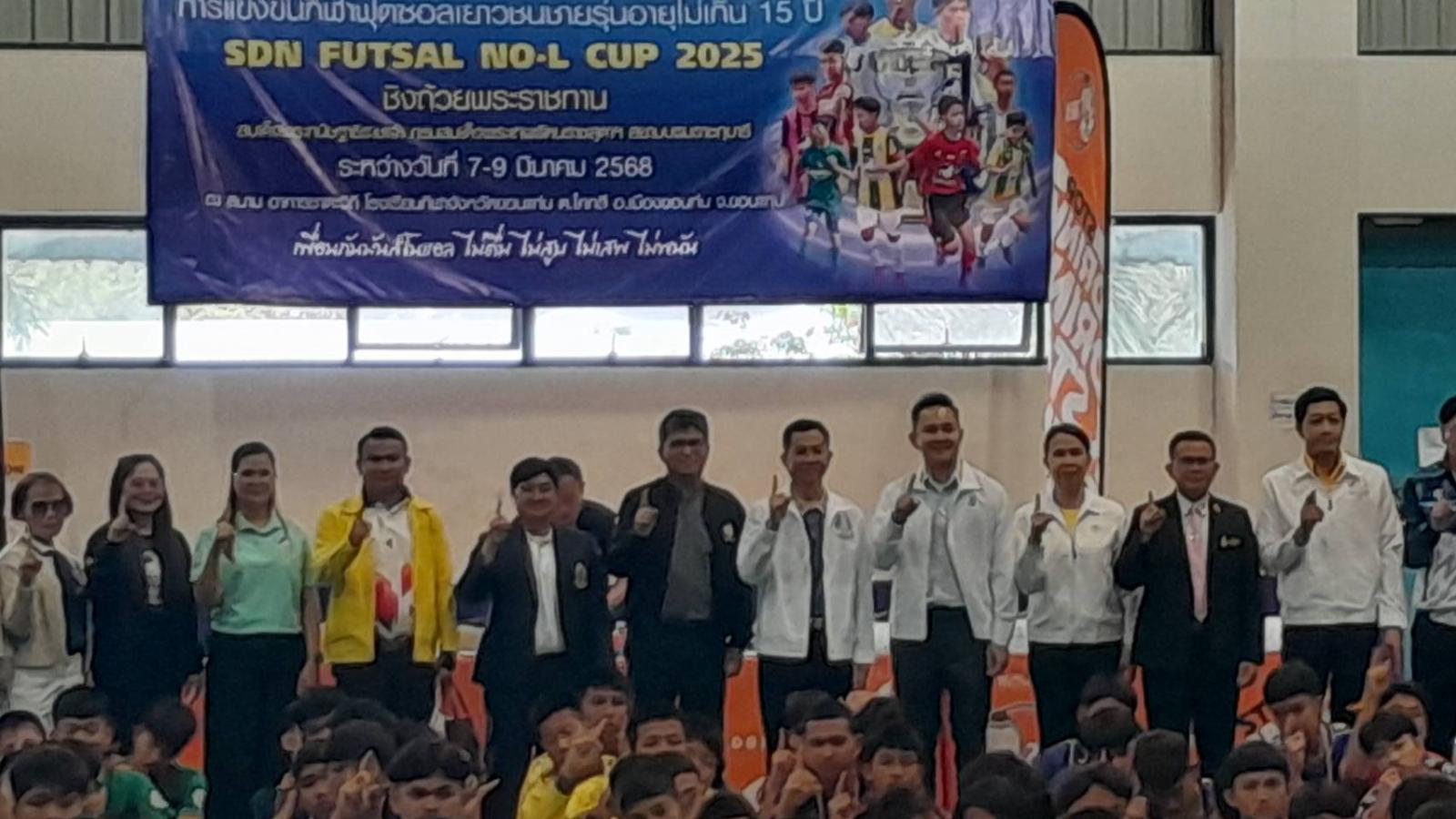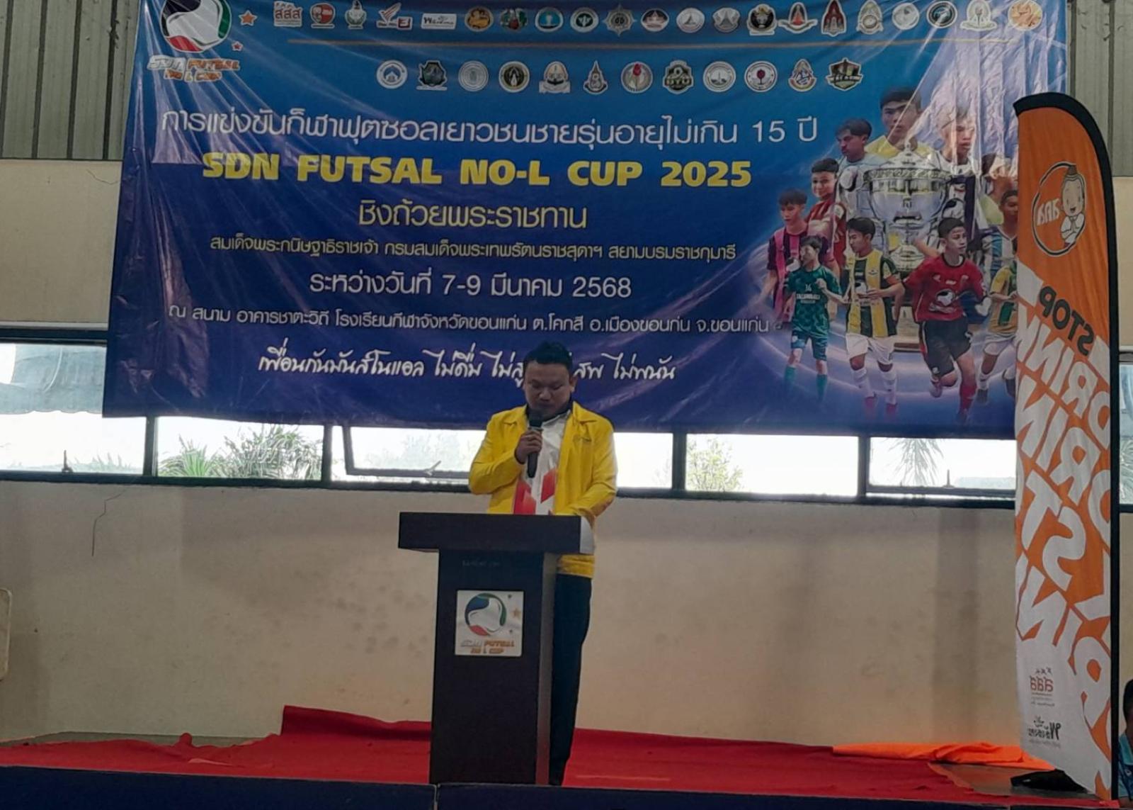 เมื่อวันที่ 7 มีนาคม 2568 เวลา 09.30 น. องค์การบริหารส่วนจังหวัดขอนแก่น นำโดย นายวัฒนา ช่างเหลา นายกองค์การบริหารส่วนจังหวัดขอนแก่น มอบหมายให้ นายกิตติชัย อุทธา ผู้อำนวยการส่วนบริหารการศึกษา รักษาราชการแทน ผู้อำนวยการสำนักการศึกษา ศาสนาและวัฒนธรรม เข้าร่วมพิธีเปิดการแข่งขันกีฬาฟุตซอลเยาวชน SDN FUTSAL NO – L CUP 2025 Inspired by Thai PBS ชิงถ้วยพระราชทาน สมเด็จพระกนิษฐาธิราชเจ้า กรมสมเด็จพระเทพรัตราชสุดาฯ สยามบรมราชกุมารี (รอบคัดเลือกภาคอีสานตอนบน) และพิธีลงนาม MOU สนับสนุนการสร้างค่านิยมการป้องกันนักดื่ม นักสูบ นักเสพ นักพนัน หน้าใหม่ ภายใต้โครงการแข่งขันกีฬาฟุตซอลเยาวชน SDN FUTSAL NO – L CUP 2025 Inspired by Thai PBS “เพื่อนกัน มันส์โนแอล ไม่ดื่ม ไม่สูบ ไม่เสพ ไม่พนัน” เยาวชนชาย รุ่นอายุไม่เกิน 15 ปี ครั้งที่ 7 จัดโดยสมาคมเครือข่ายองค์กรงดเหล้า และลดปัจจัยเสี่ยงต่อสุขภาพ โอกาสนี้ได้รับเกียรติกล่าวต้อนรับ นายพันธ์เทพ เสาโกศล รองผู้ว่าราชการจังหวัดขอนแก่น ประธานในพิธี โดยมี นายคงกริช พงษ์พันธ์ ท่องเที่ยวและกีฬาจังหวัดขอนแก่น เป็นผู้กล่าวรายงาน และมีผู้แทนจากหน่วยงานเภาครัฐ ภาคเอกชน เข้าร่วม ณ สนามฟุตซอล อาคารชาตะวิถี โรงเรียนกีฬาจังหวัดขอนแก่น
