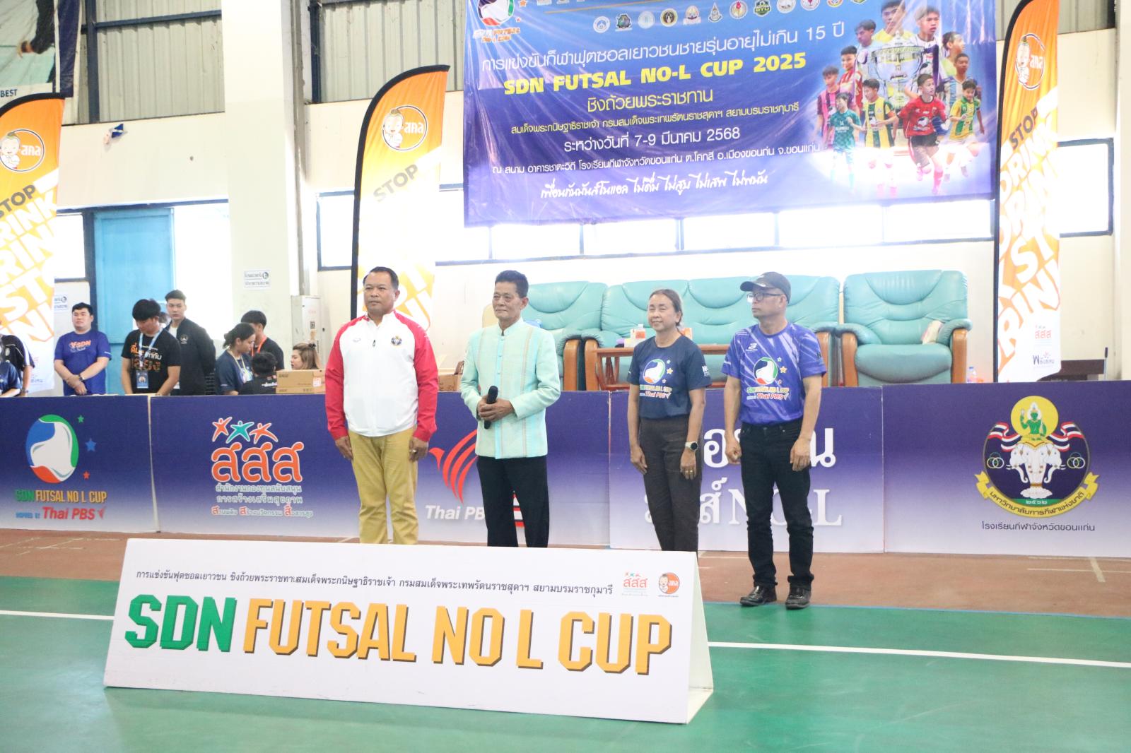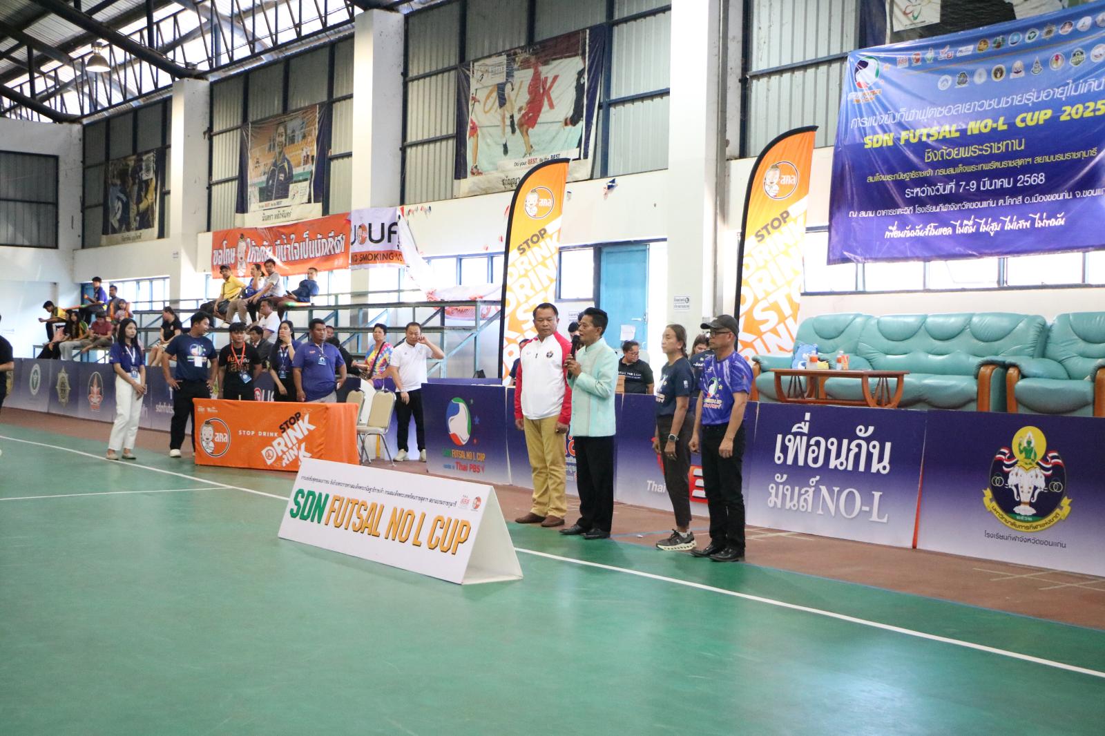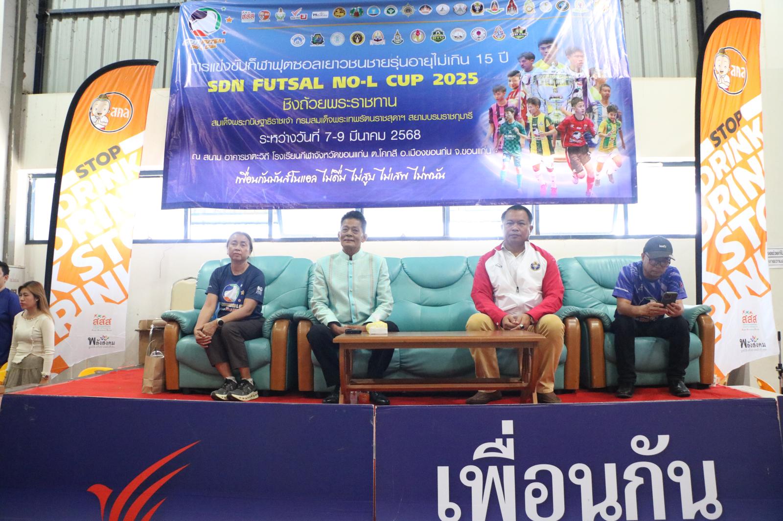 เมื่อวันที่ 9 มีนาคม 2568 เวลา 15.00 น. องค์การบริหารส่วนจังหวัดขอนแก่น นำโดยนายวัฒนา ช่างเหลา นายกองค์การบริหารส่วนจังหวัดขอนแก่น มอบหมายให้ นายอดุลย์ คามดิษฐ์ รองนายกองค์การบริหารส่วนจังหวัดขอนแก่น ชมการแข่งขันคู่ชิงชนะเลิศ และมอบถ้วยรางวัล โครงการSDN FUTSAL NO – L CUP 2025 Inspired by Thai PBS “เพื่อนกัน มันส์โนแอล ไม่ดื่ม ไม่สูบ ไม่เสพ ไม่พนัน” เยาวชนชาย รุ่นอายุไม่เกิน 15 ปี ครั้งที่ 7 จัดโดยสมาคมเครือข่ายองค์กรงดเหล้า และลดปัจจัยเสี่ยงต่อสุขภาพ และร่วมมอบถ้วยรางวัล ให้แก่นักกีฬา ในโอกาสนี้มี สิบเอกเสกสันต์ ชุ่มอภัย ผู้อำนวยการโรงเรียนกีฬาจังหวัดขอนแก่น, นายปรีชา แสนรัตน์ ผู้ประสานงานเครือข่ายงดเหล้าจังหวัดร้อยเอ็ด ,นางกัลยา เลิศล้ำ ผู้ประสานงานเครือข่ายงดเหล้าจังหวัดกาฬสินธุ์ และมีผู้แทนจากหน่วยงานเภาครัฐ ภาคเอกชน เข้าร่วม ณ สนามฟุตซอล อาคารชาตะวิถี โรงเรียนกีฬาจังหวัดขอนแก่น