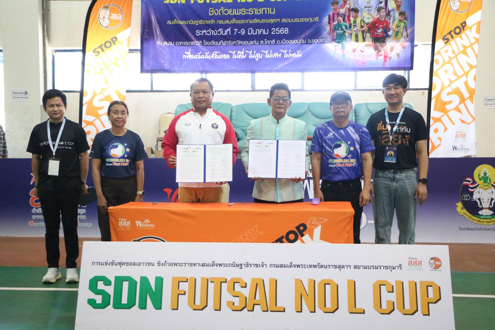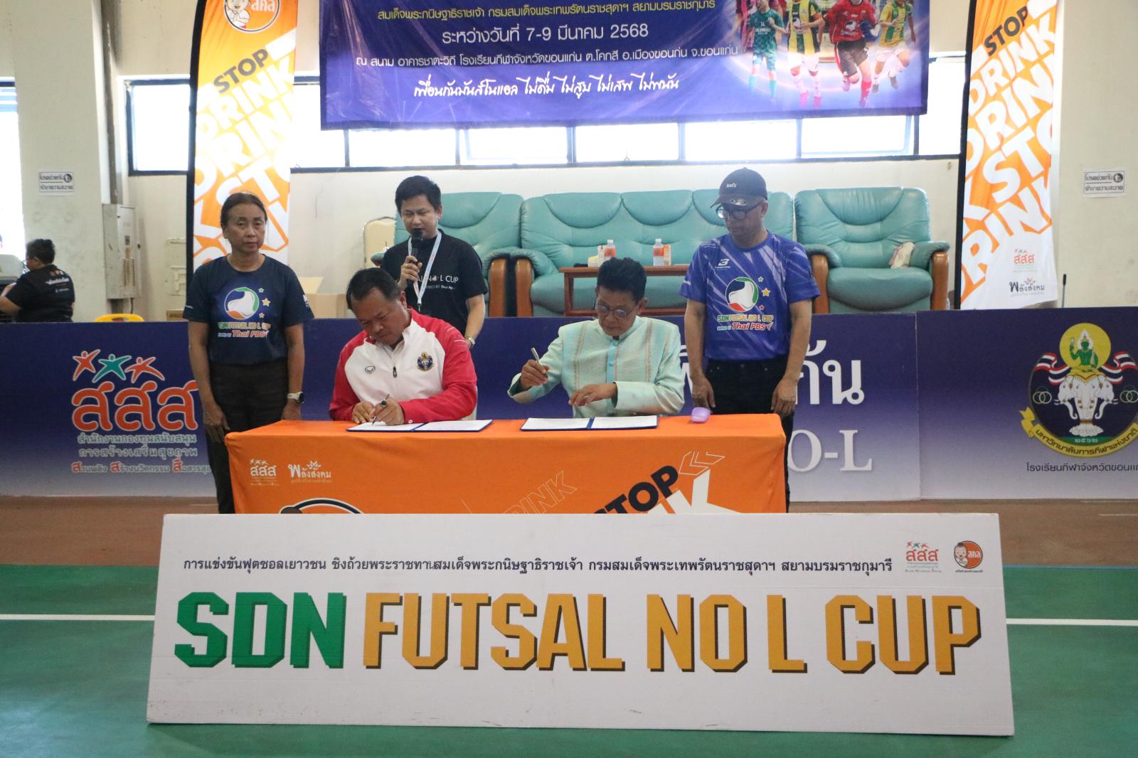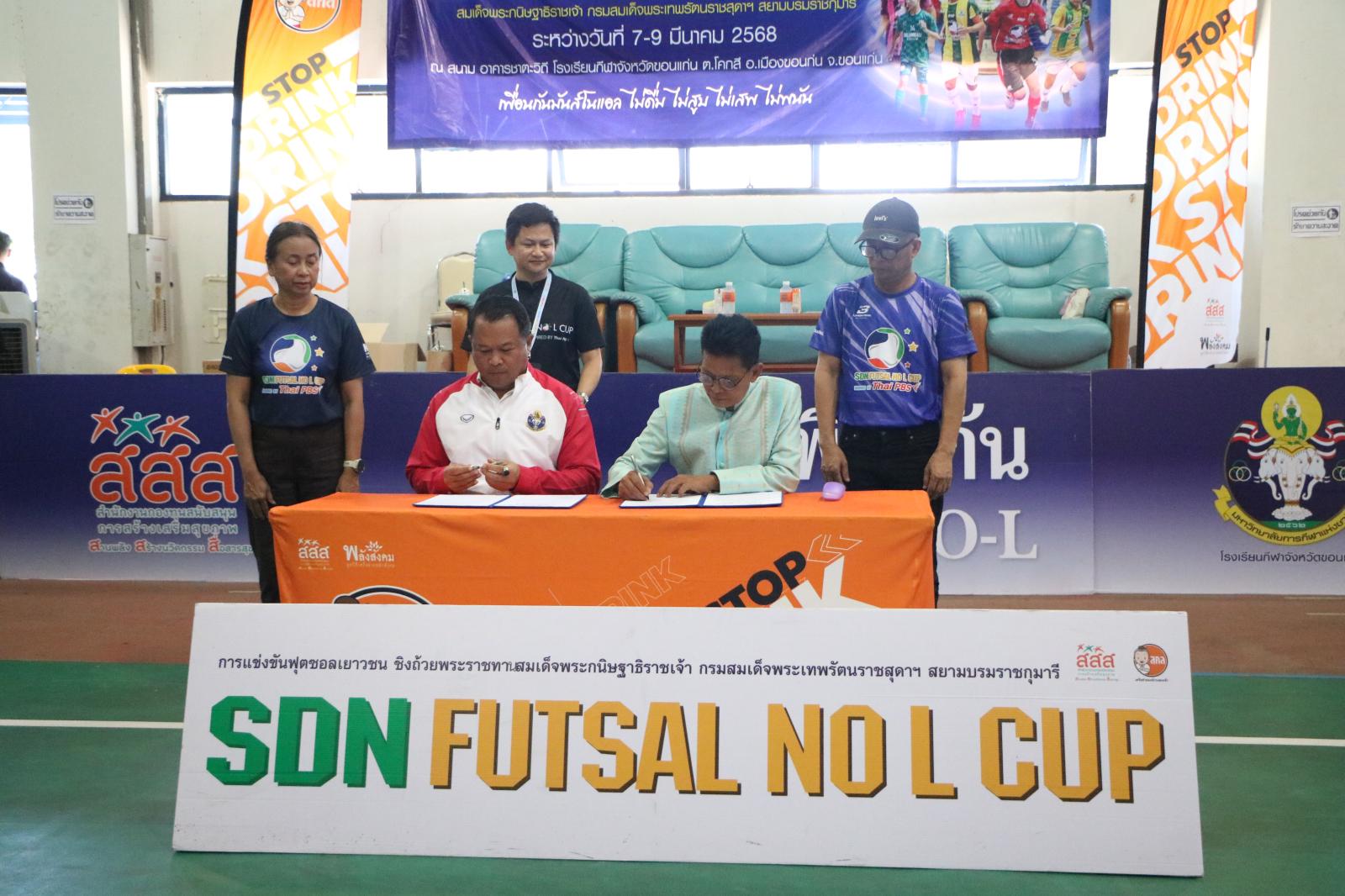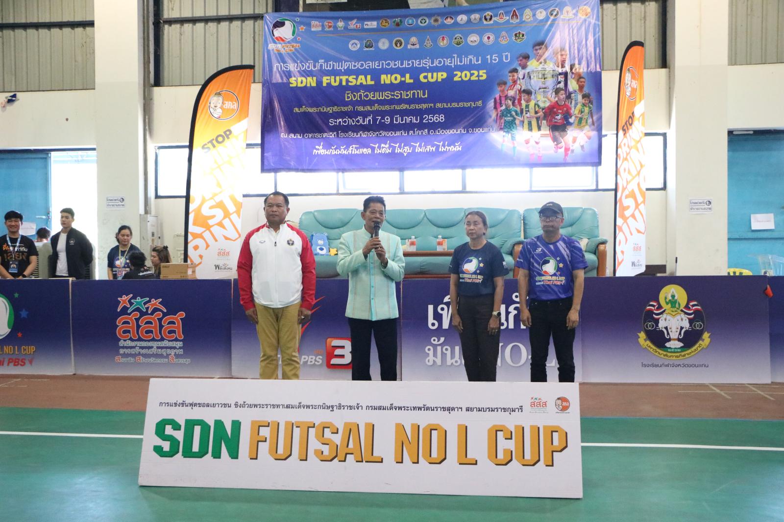 เมื่อวันที่ 9 มีนาคม 2568 เวลา 15.00 น. องค์การบริหารส่วนจังหวัดขอนแก่น นำโดยนายวัฒนา ช่างเหลา นายกองค์การบริหารส่วนจังหวัดขอนแก่น มอบหมายให้ นายอดุลย์ คามดิษฐ์ รองนายกองค์การบริหารส่วนจังหวัดขอนแก่น ชมการแข่งขันคู่ชิงชนะเลิศ และมอบถ้วยรางวัล โครงการSDN FUTSAL NO – L CUP 2025 Inspired by Thai PBS “เพื่อนกัน มันส์โนแอล ไม่ดื่ม ไม่สูบ ไม่เสพ ไม่พนัน” เยาวชนชาย รุ่นอายุไม่เกิน 15 ปี ครั้งที่ 7 จัดโดยสมาคมเครือข่ายองค์กรงดเหล้า และลดปัจจัยเสี่ยงต่อสุขภาพ และร่วมมอบถ้วยรางวัล ให้แก่นักกีฬา ในโอกาสนี้มี สิบเอกเสกสันต์ ชุ่มอภัย ผู้อำนวยการโรงเรียนกีฬาจังหวัดขอนแก่น, นายปรีชา แสนรัตน์ ผู้ประสานงานเครือข่ายงดเหล้าจังหวัดร้อยเอ็ด ,นางกัลยา เลิศล้ำ ผู้ประสานงานเครือข่ายงดเหล้าจังหวัดกาฬสินธุ์ และมีผู้แทนจากหน่วยงานเภาครัฐ ภาคเอกชน เข้าร่วม ณ สนามฟุตซอล อาคารชาตะวิถี โรงเรียนกีฬาจังหวัดขอนแก่น