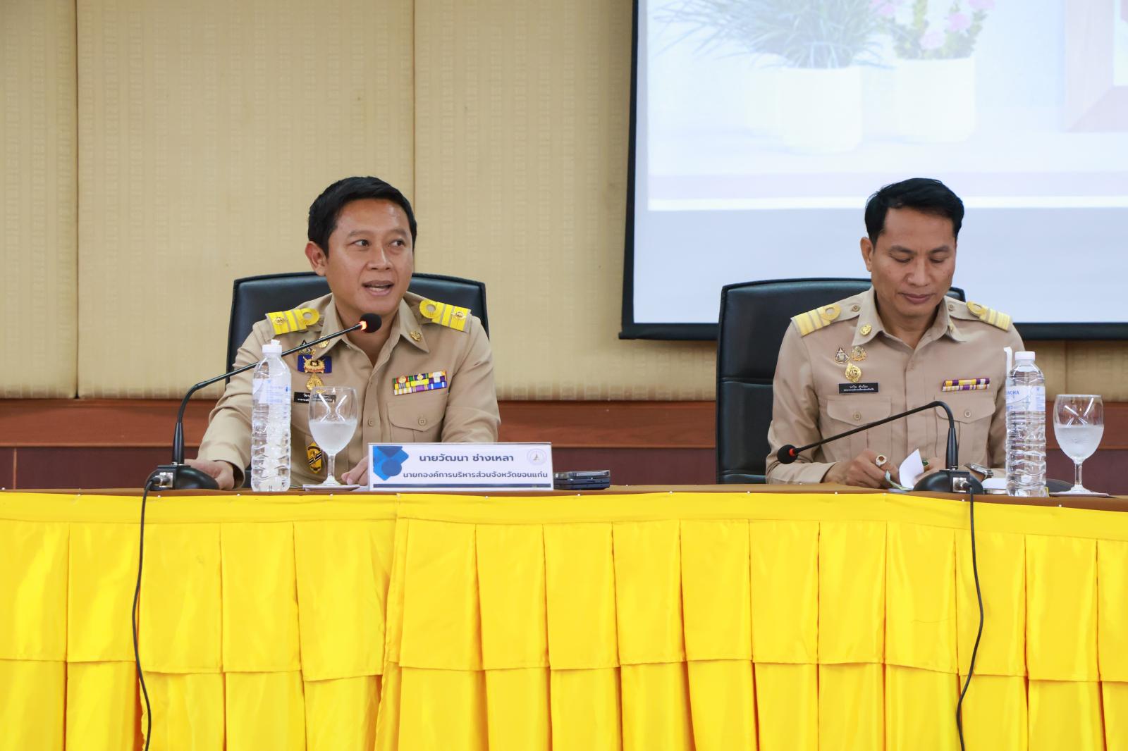 เมื่อวันที่ 10 มีนาคม 2568 เวลา 09.30 น. องค์การบริหารส่วนจังหวัดขอนแก่น นำโดย นายวัฒนา ช่างเหลา นายกองค์การบริหารส่วนจังหวัดขอนแก่น เป็นประธานในการประชุมข้าราชการ พนักงาน องค์การบริหารส่วนจังหวัดขอนแก่น ครั้งที่ 3/2568 พร้อมด้วย นางดวงแข อรรณนพพร นายนาวิน คำเวียง นายอดุลย์ คามดิษฐ์ รองนายกองค์การบริหารส่วนจังหวัดขอนแก่น นายเดชกุญชรฐ์ วนาทรัพย์ดำรง นายอภัย โพธิ์ศรี นางสาวปริตา เตือนจันทึก นายสอิสร์ โบราณ ที่ปรึกษานายกองค์การบริหารส่วนจังหวัดขอนแก่น ว่าที่ร้อยเอกพงเจตน์ พรกุณา ปลัดองค์การบริหารส่วนจังหวัดขอนแก่น หัวหน้าส่วนราชการ ผู้บริหารสถานศึกษาฯ ผู้บริหาร รพ.สต. ข้าราชการ เจ้าหน้าที่ และพนักงาน สังกัดองค์การบริหารส่วนจังหวัดขอนแก่นเข้าร่วมประชุม ณ หอประชุมองค์การบริหารส่วนจังหวัดขอนแก่น อ.เมืองขอนแก่น จ.ขอนแก่น