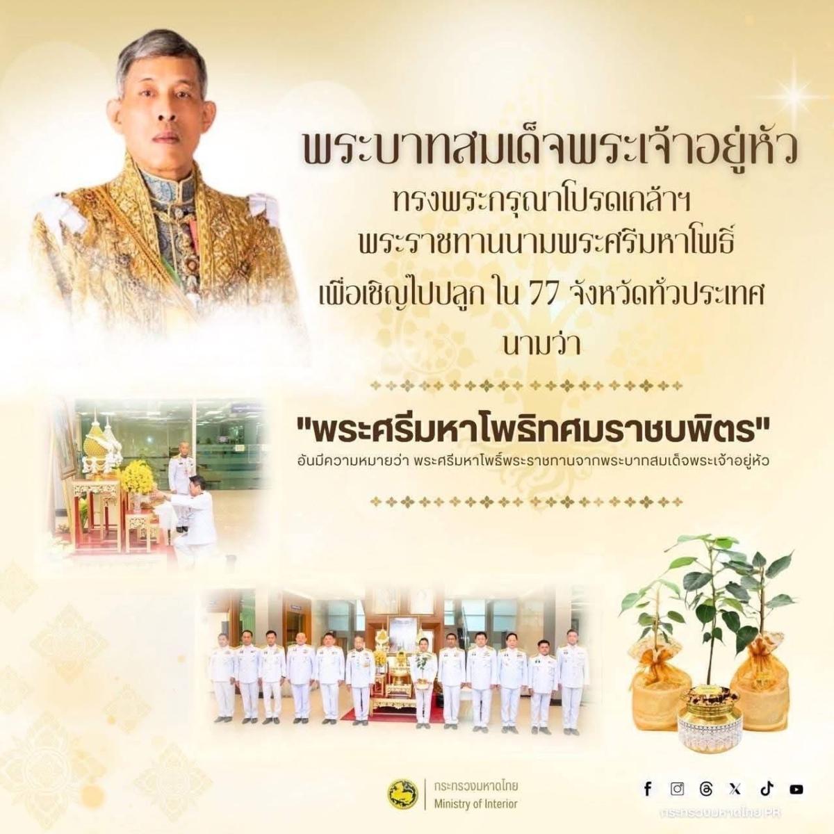 ที่ประชุมรับทราบว่า พระบาทสมเด็จพระเจ้าอยู่หัวทรงพระกรุณาโปรดเกล้าโปรดกระหม่อมพระราชทานพระศรีมหาโพธิ์ให้แก่กระทรวงมหาดไทยเพื่อเชิญไปมอบให้แก่ทุกจังหวัดนำไปปลูกเพื่อความเป็นสิริมงคลเนื่องในโอกาสพระราชพิธีสมมงคลพระชนมายุเท่า พระบาทสมเด็จพระพุทธยอดฟ้าจุฬาโลกมหาราช สมเด็จพระปฐมบรมกษัตริยาธิราชแห่งราชวงศ์จักรี พุทธศักราช 2568 โดยสํานักพระราชวังได้จัดพิธีมอบพระศรีมหาโพธิ์ให้แก่กระทรวงมหาดไทยเมื่อวันศุกร์ที่ 17 มกราคม 2568 ที่ผ่านมา โดยมีพลอากาศเอกสมพงษ์ สุขวิมล เป็นประธาน และปลัดกระทรวงมหาดไทยเป็นผู้แทนกระทรวงมหาดไทยรับมอบ เพื่อนำไปมอบให้แก่ทุกจังหวัดทั่วประเทศนำไปปลูก โดยกระทรวงมหาดไทยกำหนดจัดเตรียมสถานที่ปลูกและก่อสร้างมณฑลปลูก “พระศรีมหาโพธิทศมราชบพิตร” ตามแบบที่กำหนด ให้แล้วเสร็จภายในเดือนเมษายน 2568