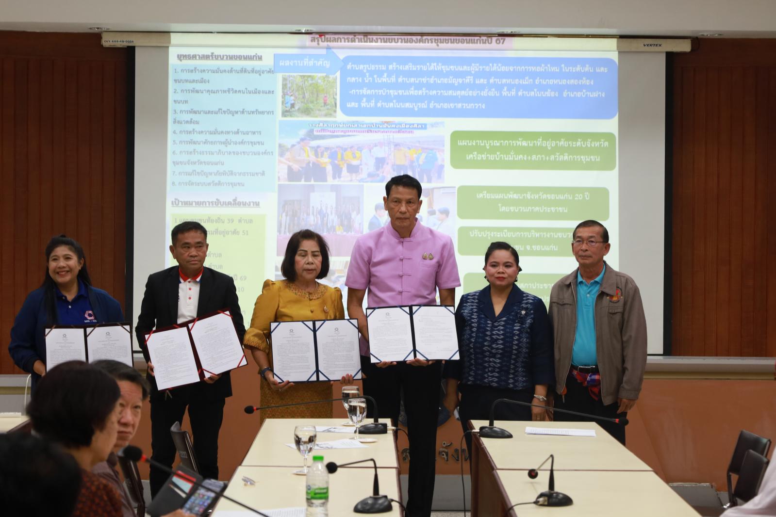 พิธีลงนามความร่วมมือ (MOU) ปี 2568 เวทีเสริมสร้างความเข็มแข็งองค์กรชุมชนและเชื่อมโยงแผนพัฒนาจังหวัดขอนแก่น