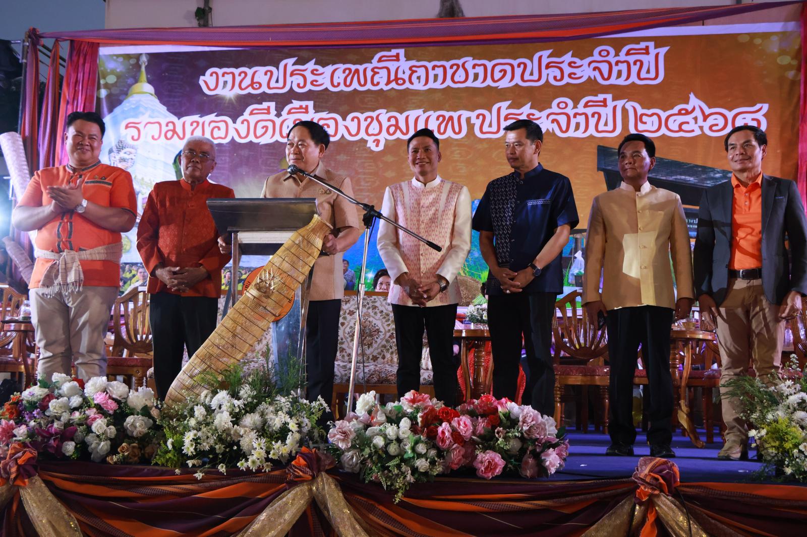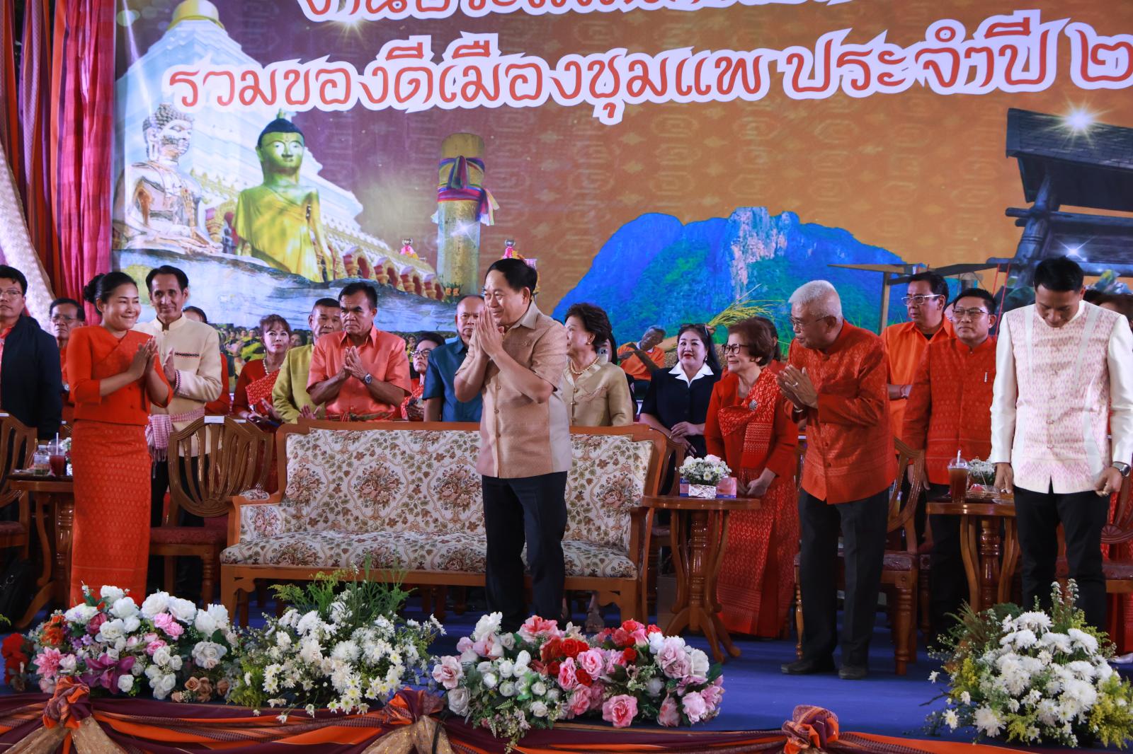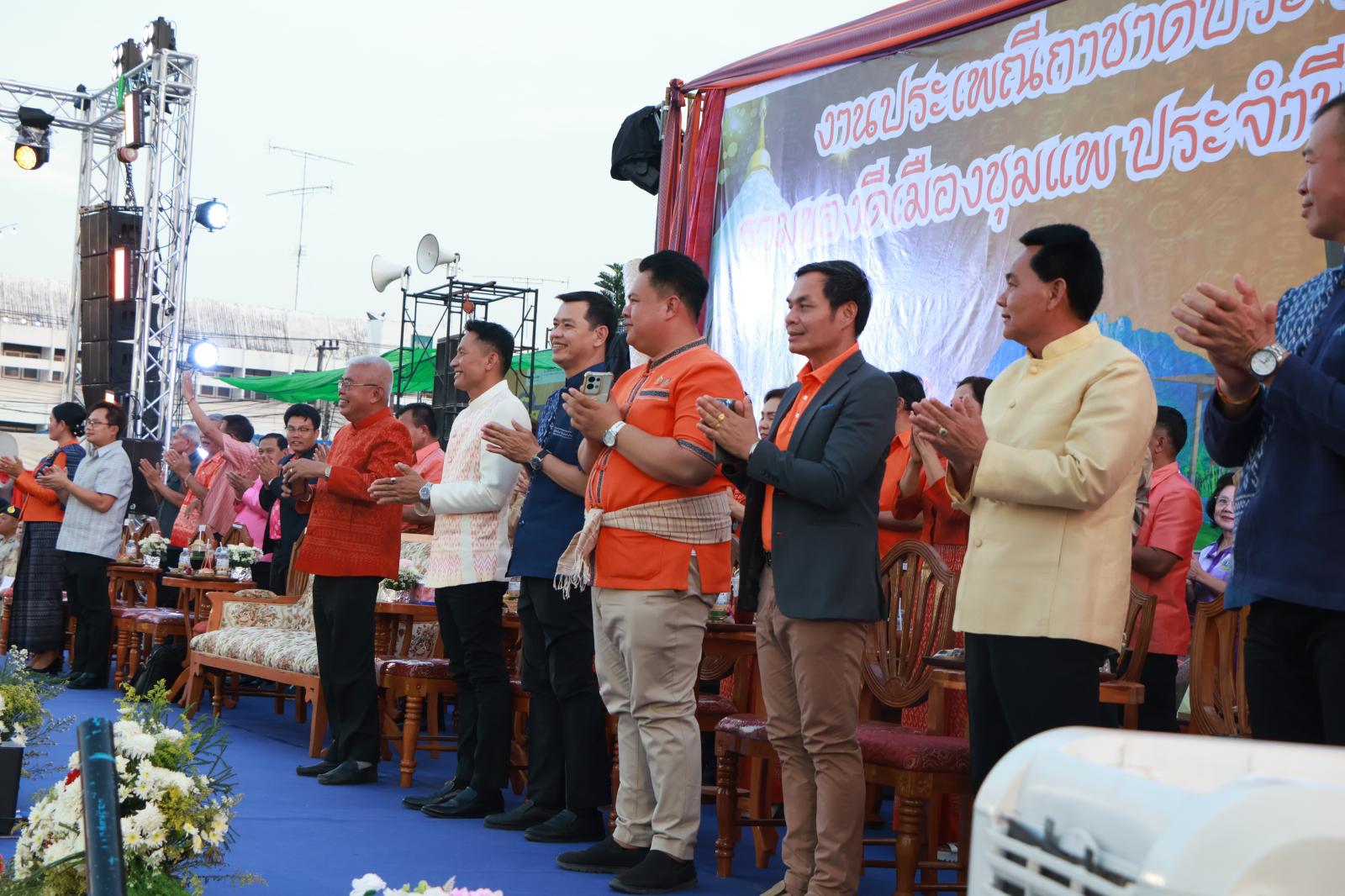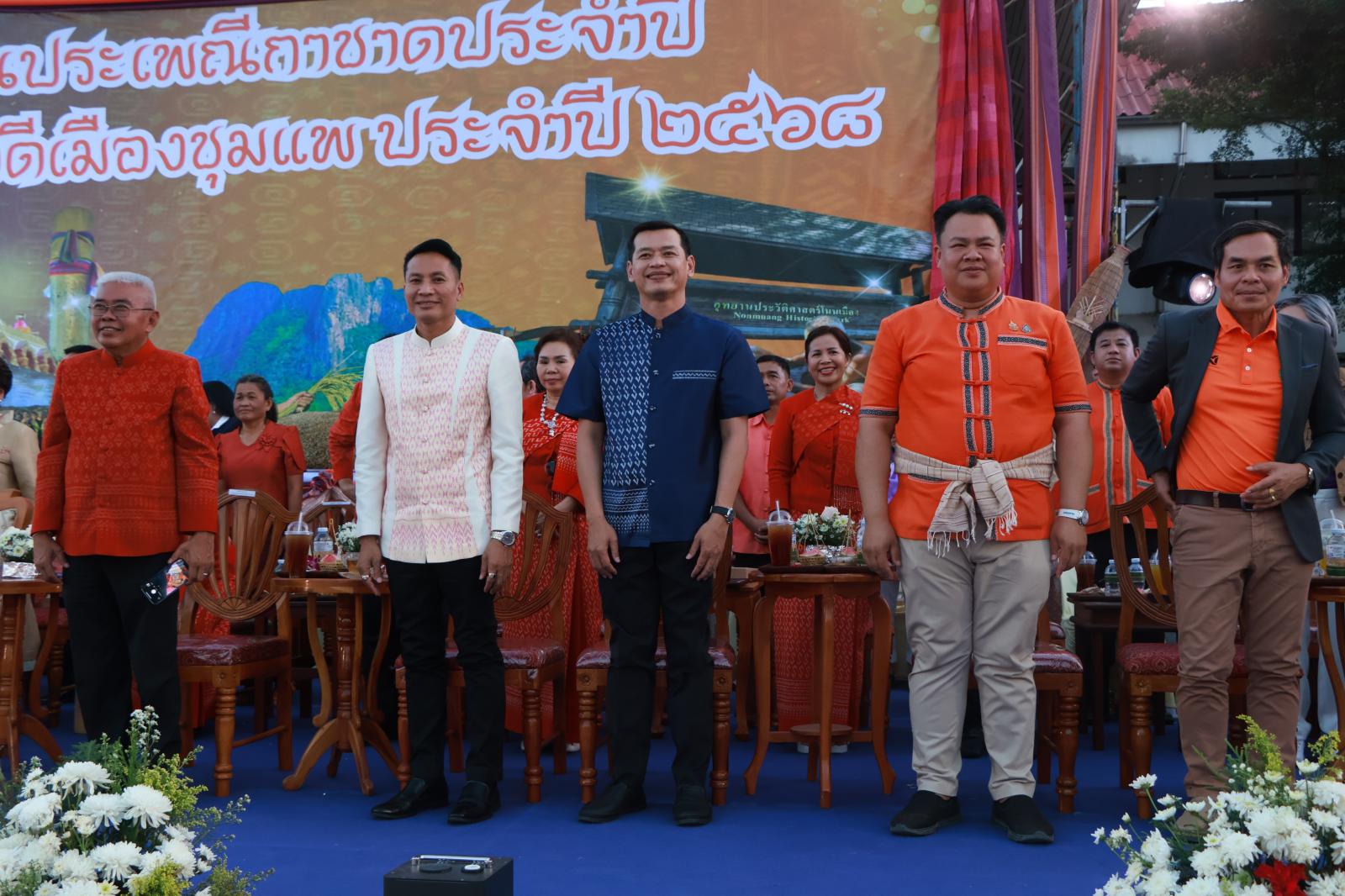 โดยมี นายไกรสร กองฉลาด ผู้ว่าราชการจังหวัดขอนแก่น เป็นประธานในพิธี นางสาวอ้อยใจ คำบุญเรือง นายอำเภอชุมแพ กล่าวรายงาน ในโอกาสนี้มี นายวิศรุต ปู่เพ็ง ที่ปรึกษารัฐมนตรีช่วยว่าการกระทรวงศึกษาธิการ ดร.สมยงค์ แก้วสุพรรณ ประธานสภาวัฒนธรรมจังหวัดขอนแก่น พ.ต.อ.รักชาติ เรืองเจริญ ผู้กำกับการสถานีตำรวจภูธรอำเภอชุมแพ นายนิรุตติ์ ปานนาค รองประธานสภาองค์การบริหารส่วนจังหวัดขอนแก่น(สมาชิกสภาองค์การบริหารส่วนจังหวัดขอนแก่น อำเภอชุมแพ เขต 1) นายสำราญ ศรีภา สมาชิกสภาองค์การบริหารส่วนจังหวัดขอนแก่น อำเภอชุมแพ เขต 3 หัวหน้าส่วนราชการ ผู้บริหารองค์กรปกครองส่วนท้องถิ่น กำนัน ผู้ใหญ่บ้าน แขกผู้มีเกียรติ เข้าร่วมพิธี ณ บริเวณสนามหน้าที่ว่าการอำเภอชุมแพ จังหวัดขอนแก่น