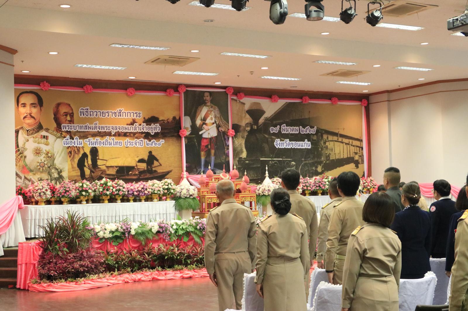 จังหวัดขอนแก่นได้กำหนดจัดพิธีถวายราชสักการะและกล่าวถวานราชสดุดีพระบาทสมเด็จพระจุลจอมเกล้าเจ้าอยู่หัว โดยมีนายพันธ์เทพ เสาโกศล รองผู้ว่าราชการจังหวัดขอนแก่น เป็นประธานในพิธี นำข้าราชการองค์กรปกครองส่วนท้องถิ่นจังหวัดขอนแก่น ข้าราชการ หัวหน้าส่วนราชการยืนตรงถวายความเคารพพระบรมสาทิสลักษณ์ พระบาทสมเด็จพระจุลจอมเกล้าเจ้าอยู่หัว และกล่าวคำถวายราชสดุดีพระบาทสมเด็จพระจุลจอมเกล้าเจ้าอยู่หัว อย่างพร้อมใจกัน ณ ห้องประชุมแก่นเมือง ศาลากลางจังหวัดขอนแก่น ชั้น 1 จังหวัดขอนแก่น
