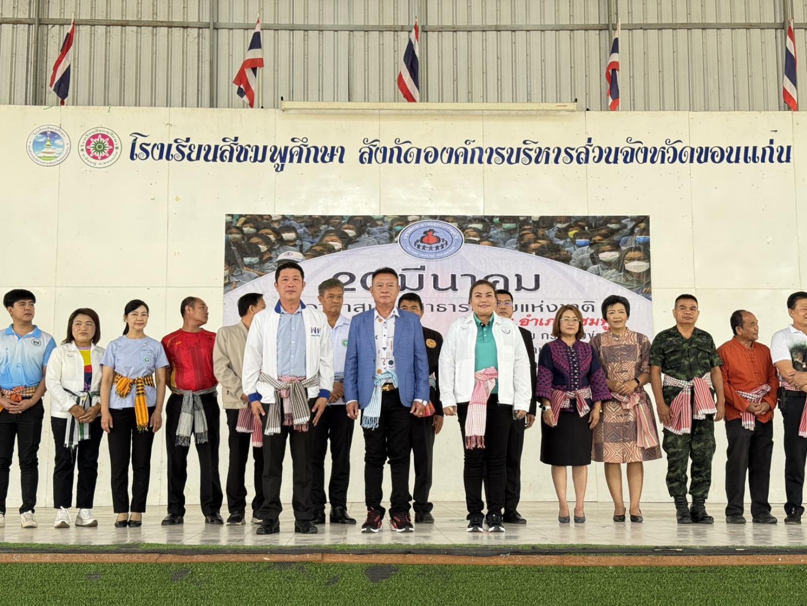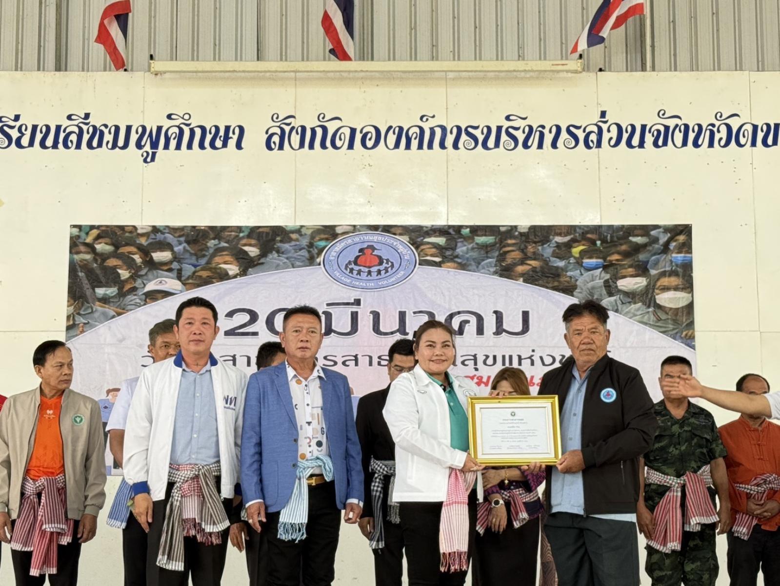 เมื่อวันที่ 20 มีนาคม 2568 เวลา 09.00 น. องค์การบริหารส่วนจังหวัดขอนแก่น นำโดย นายวัฒนา ช่างเหลา นายกองค์การบริหารส่วนจังหวัดขอนแก่น มอบหมายให้นางสาวปริตา เตือนจันทึก ที่ปรึกษานายกองค์การบริหารส่วนจังหวัดขอนแก่น เป็นประธานในพิธีเปิดงานวันอาสาสมัครสาธารณสุขประจำหมู่บ้านในอำเภอสีชมพู โดยมีประธาน อสม. อำเภอสีชมพู กล่าวรายงานถึงวัตถุประสงค์การจัดงาน เพื่อเป็นการเชิดชูเกียรติและสร้างขวัญกำลังใจให้กับ อาสารสมัครสาธารณสุขประจำหมู่บ้านในอำเภอสีชมพู เครือข่ายบริการสุขภาพอำเภอสีชมพู ในโอกาสนี้มี นายจารุพรรณ ภูวสันติ ส.อบจ.ขอนแก่น อ.สีชมพู นายวิธวัช ศรีสุรพล ส.อบจ.ขอนแก่น เขต อ.หนองนาคำ ผู้นำท้องถิ่น ผู้นำท้องที่ ผอ.รพสต. อสม.อำเภอสีชมพู และแขกผู้มีเกียรติ เข้าร่วมกิจกรรมวันรวมพลัง อสม.อำเภอสีชมพู ปี 2568 ณ หอประชุมโรงเรียนสีชมพูศึกษา อำเภอสีชมพู จังหวัดขอนแก่น