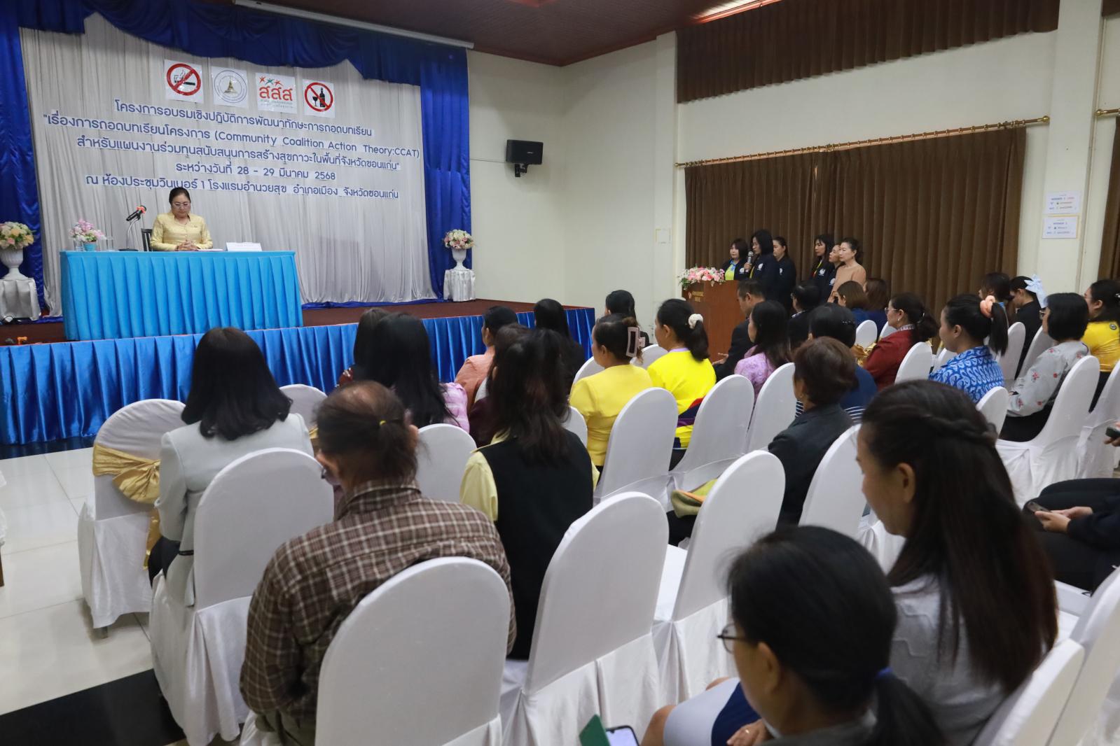 เมื่อวันที่ 28 มีนาคม 2568 เวลา 10.30 น. องค์การบริหารส่วนจังหวัดขอนแก่น นำโดย นายวัฒนา ช่างเหลา นายกองค์การบริหารส่วนจังหวัดขอนแก่น มอบหมายให้ นางดวงแข อรรณนพพร รองนายกองค์การบริหารส่วนจังหวัดขอนแก่น เป็นประธานเปิดโครงการอบรมเชิงปฏิบัติการพัฒนาทักษะการถอดบทเรียน เรื่องการถอดบทเรียนโครงการ(Community Coalition Action Theory : CCAT) สำหรับแผนงานร่วมทุนสนับสนุนการสร้างสุขภาวะในพื้นที่จังหวัดขอนแก่น โดยมี นางสาวนิศากร ดอนกระสินธุ์ ผู้อำนวยการกองสาธารณสุข กล่าวรายงาน ในโอกาสนี้มี หัวหน้าส่วนราชการ ผู้รับทุน วิทยากรกระบวนการ คณะทำงานภายใต้แผนงานร่วมทุนฯ และเจ้าหน้าที่กองสาธารณสุขสังกัด อบจ.ขอนแก่น เข้าร่วมในพิธี ณ โรงแรมอำนวยสุข อ.เมืองขอนแก่น จ.ขอนแก่น