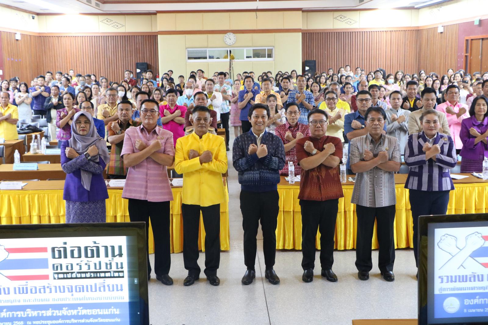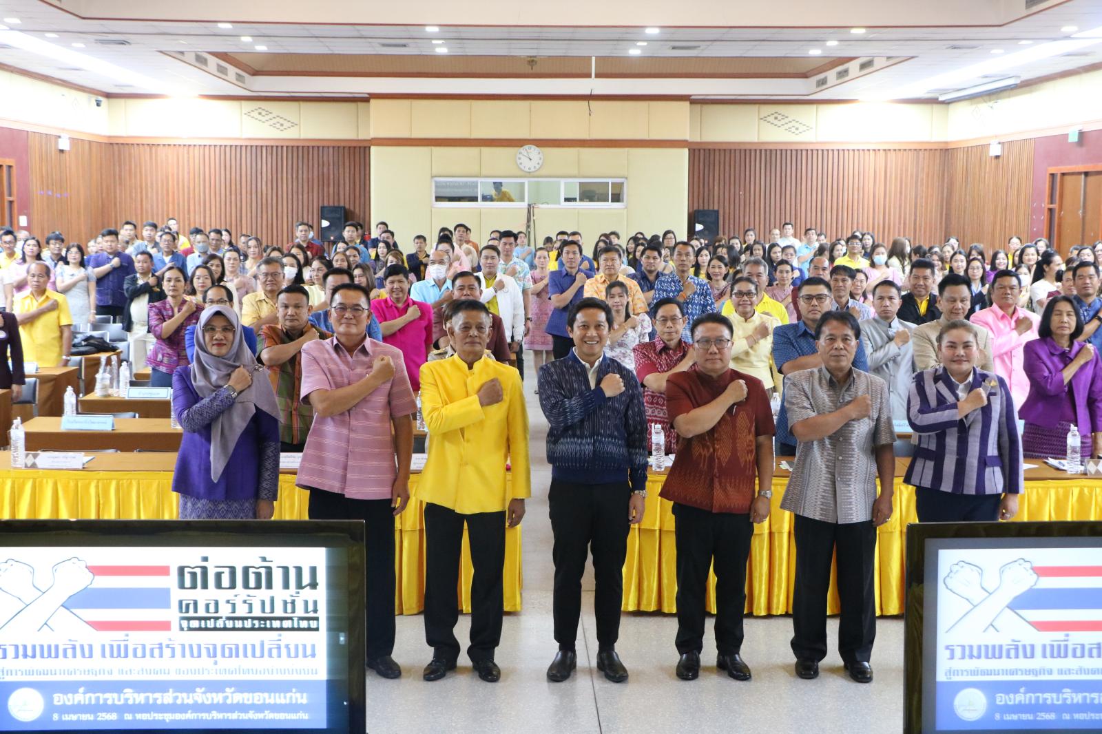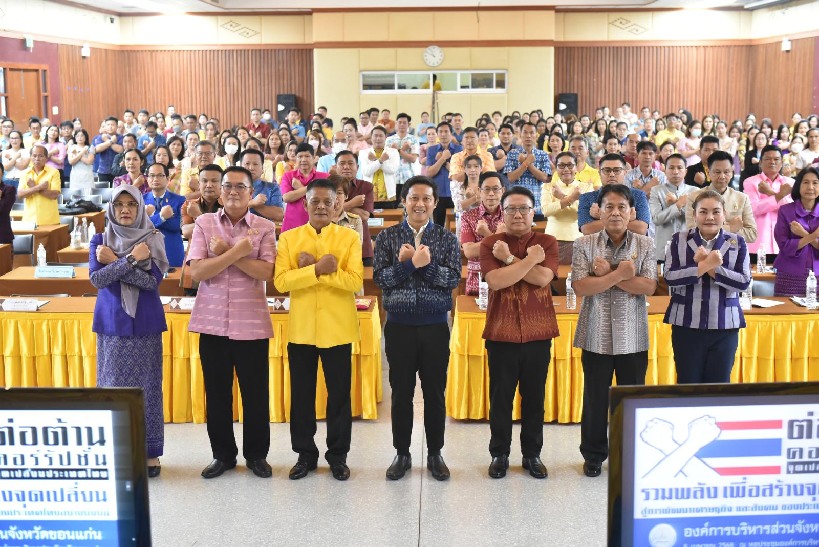 เมื่อวันที่ 8 มีนาคม 2568 เวลา 09.30 น. องค์การบริหารส่วนจังหวัดขอนแก่น ประชุมข้าราชการ พนักงาน องค์การบริหารส่วนจังหวัดขอนแก่น ครั้งที่ 4/2568 โดยมี นายวัฒนา ช่างเหลา นายก อบจ.ขอนแก่น เป็นประธานในการประชุม ซึ่งก่อนเริ่มการประชุมในครั้งนี้องค์การบริหารส่วนจังหวัดขอนแก่นจัดกิจกรรมสร้างวัฒนธรรมในการปฏิเสธการรับของขวัญและของกำนัลตามนโยบาย No Gift Policy เพื่อขับเคลื่อนกิจกรรมตามแผนปฏิรูปประเทศ ด้านการป้องกันและปราบปรามการทุจริต No Gift Policy การสร้างค่านิยมในการปฏิบัติหน้าที่ให้เป็นวัฒนธรรมสุจริตขององค์การบริหารส่วนจังหวัดขอนแก่น ในโอกาสนี้มี นายอภัย โพธิ์ศรี นางสาวปริตา เตือนจันทึก นายสอิสร์ โบราณ ที่ปรึกษานายก อบจ.ขอนแก่น ว่าที่ร้อยเอกพงเจตน์ พรกุณา ปลัด อบจ.ขอนแก่น นางอาซีซะห์ ว่องไว รองปลัด อบจ.ขอนแก่น หัวหน้าส่วนราชการ ผู้บริหารสถานศึกษาฯ ผู้บริหาร รพ.สต. ข้าราชการ เจ้าหน้าที่ และพนักงาน สังกัดองค์การบริหารส่วนจังหวัดขอนแก่นเข้าร่วมประชุม ณ หอประชุมองค์การบริหารส่วนจังหวัดขอนแก่น อ.เมืองขอนแก่น จ.ขอนแก่น