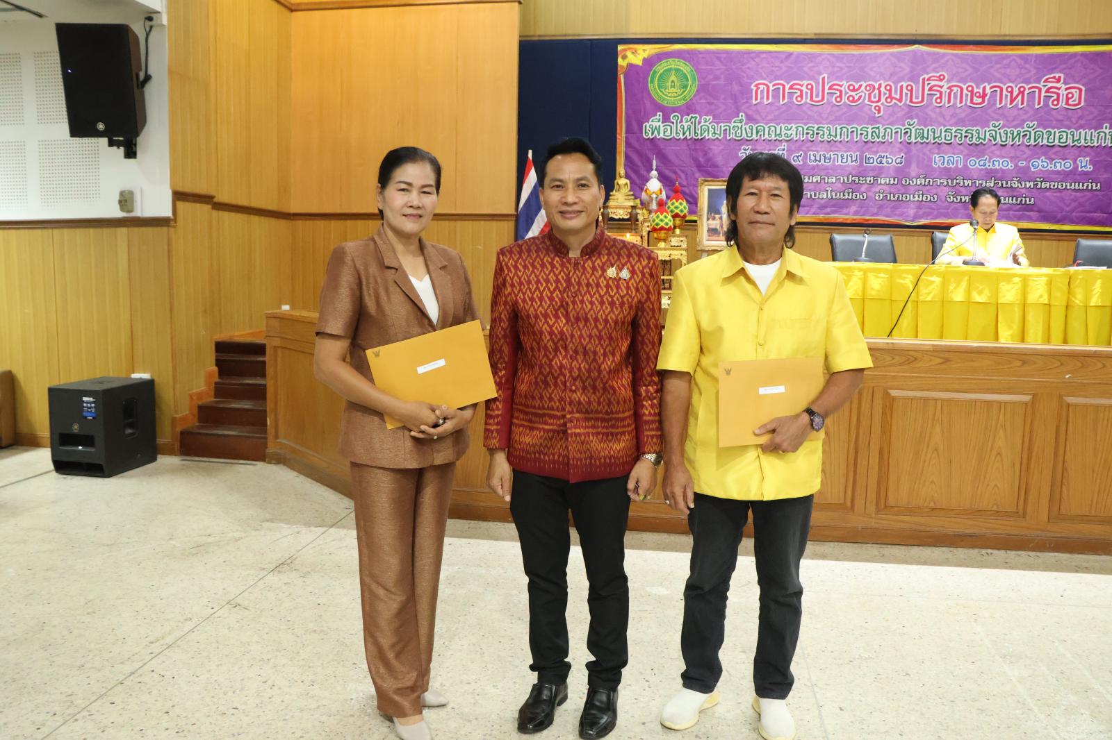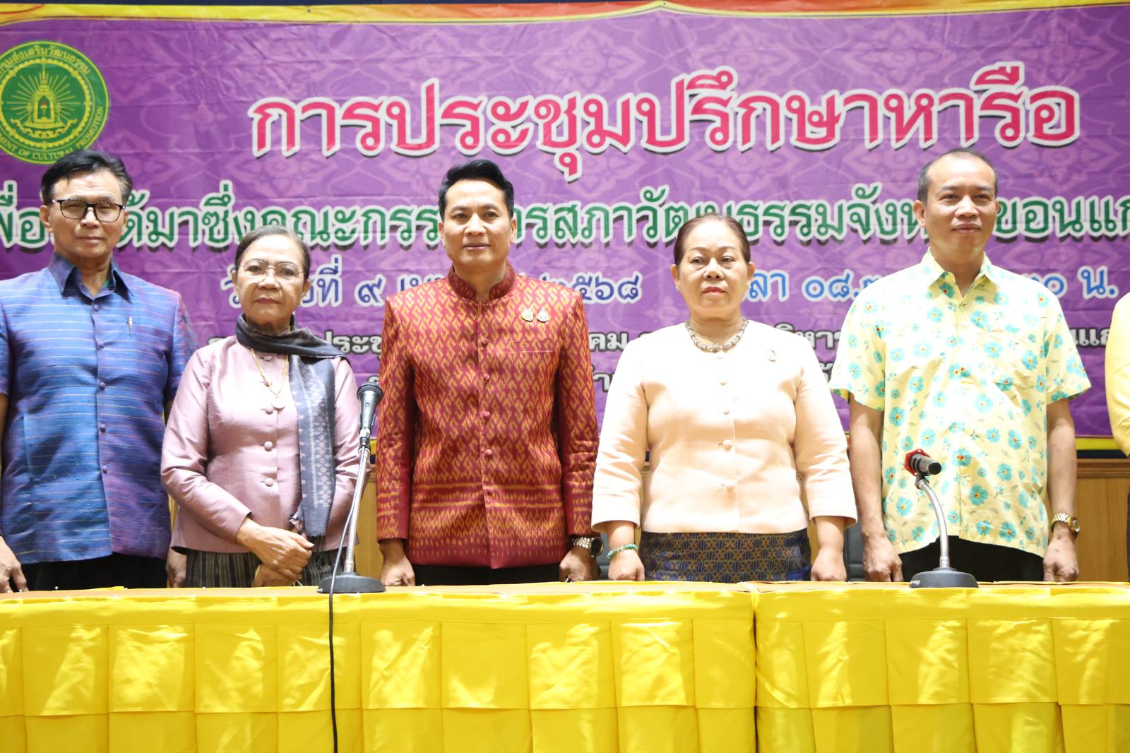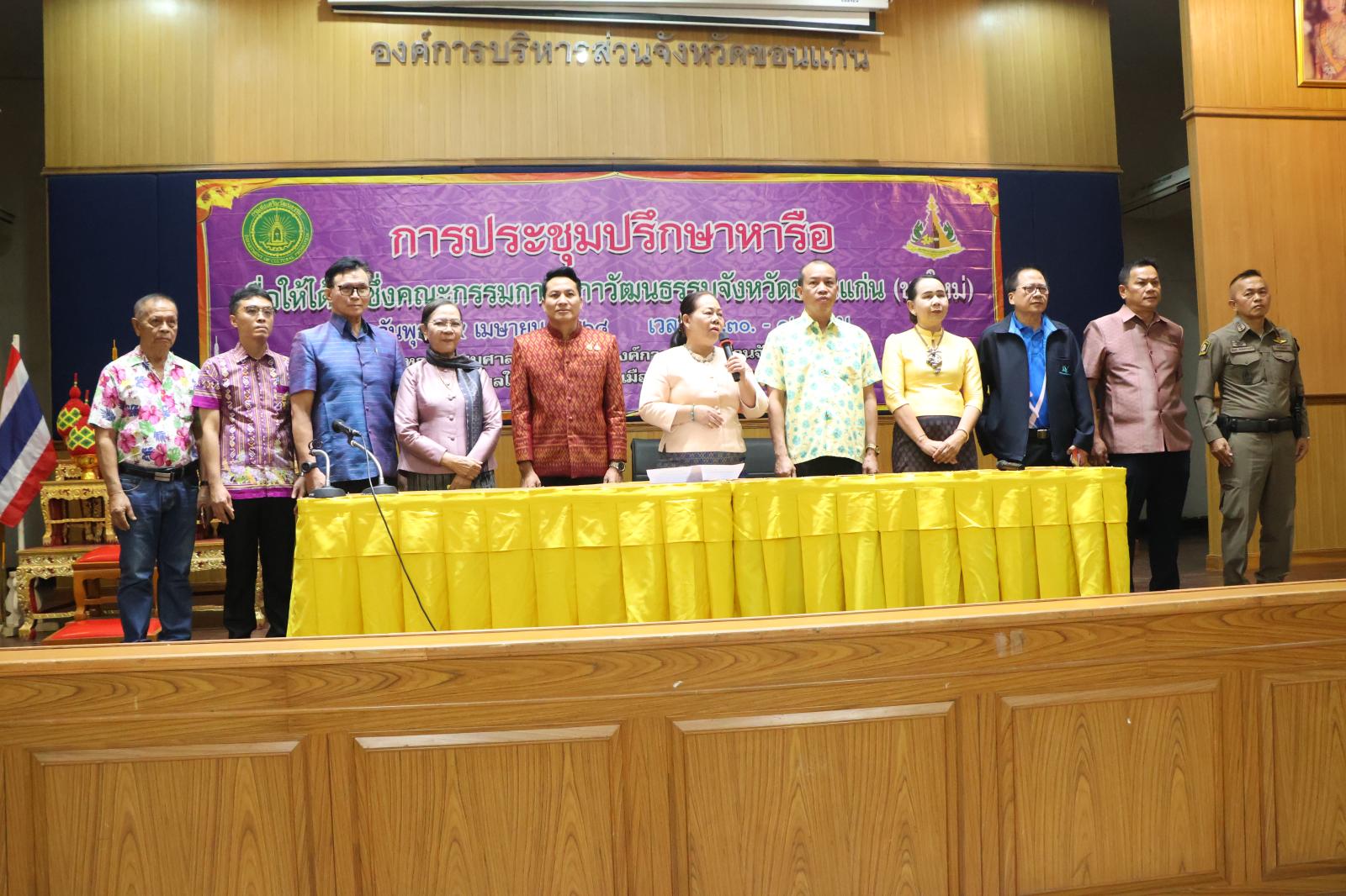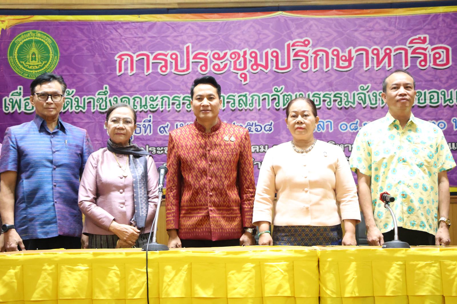 เมื่อวันที่ 9 เมษายน 2568 เวลา 09.30 น. องค์การบริหารส่วนจังหวัดขอนแก่น นำโดย นายวัฒนา ช่างเหลา นายกองค์การบริหารส่วนจังหวัดขอนแก่น มอบหมายให้ นายนาวิน คำเวียง รองนายกองค์การบริหารส่วนจังหวัดขอนแก่น เข้าร่วมสังเกตการณ์ ในการประชุมปรึกษาหารือ เพื่อให้ได้มาซึ่งคณะกรรมการสภาวัฒนธรรมจังหวัดขอนแก่นชุดใหม่ โดยมี นายประจวบ รักแพทย์ รองผู้ว่าราชการจังหวัดขอนแก่น เป็นประธานในพิธี นางศิระดา มะลาสาย วัฒนธรรมจังหวัดขอนแก่นกล่าวต้อนรับ ในโอกาสนี้มี นายวัชระ อันโยธา ศึกษาธิการจังหวัดขอนแก่น นางจิรภา เชื้อดวงผุย พัฒนาการจังหวัดขอนแก่น นางราตรี ศรีวิไล ศิลปินแห่งชาติ ท้องถิ่นจังหวัด พาณิชย์จังหวัด ประธานสภาวัฒนธรรมทั้ง 26 อำเภอ เครือข่ายภาคเอกชน เครือข่ายปราชญ์ชาวบ้านเครือข่ายภาครัฐและประชาชน เข้าร่วมประชุม ณ หอประชุมศาลาประชาคมองค์การบริหารส่วนจังหวัดขอนแก่น อำเภอเมือง จังหวัดขอนแก่น
