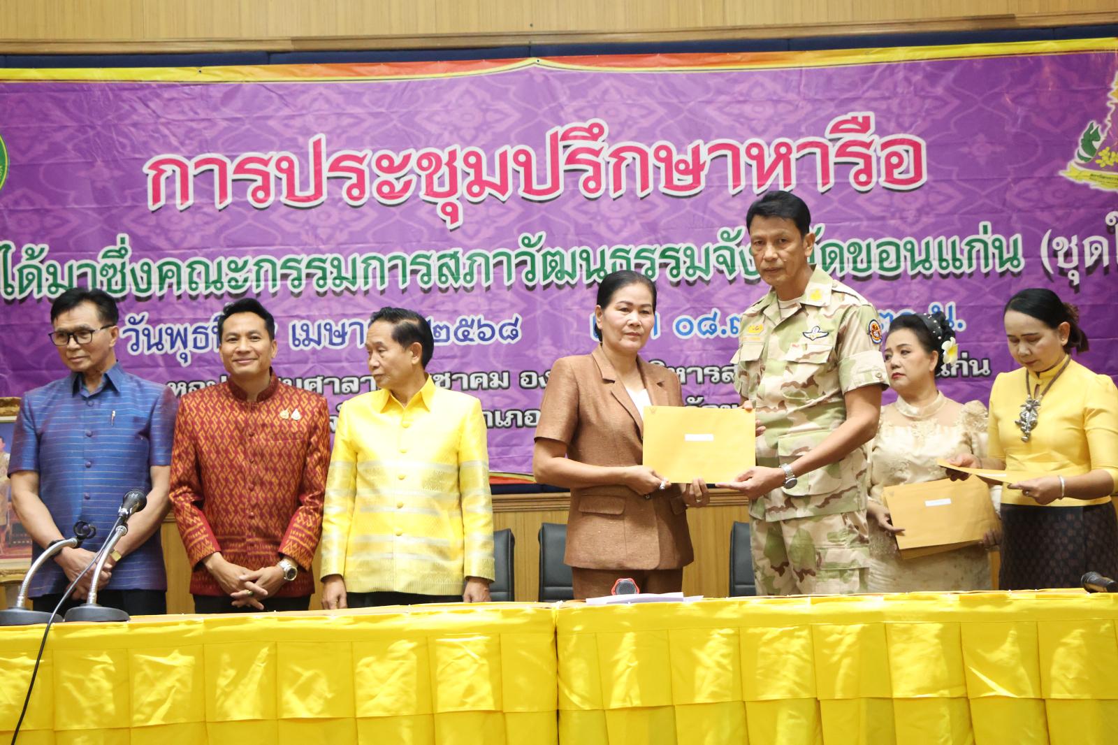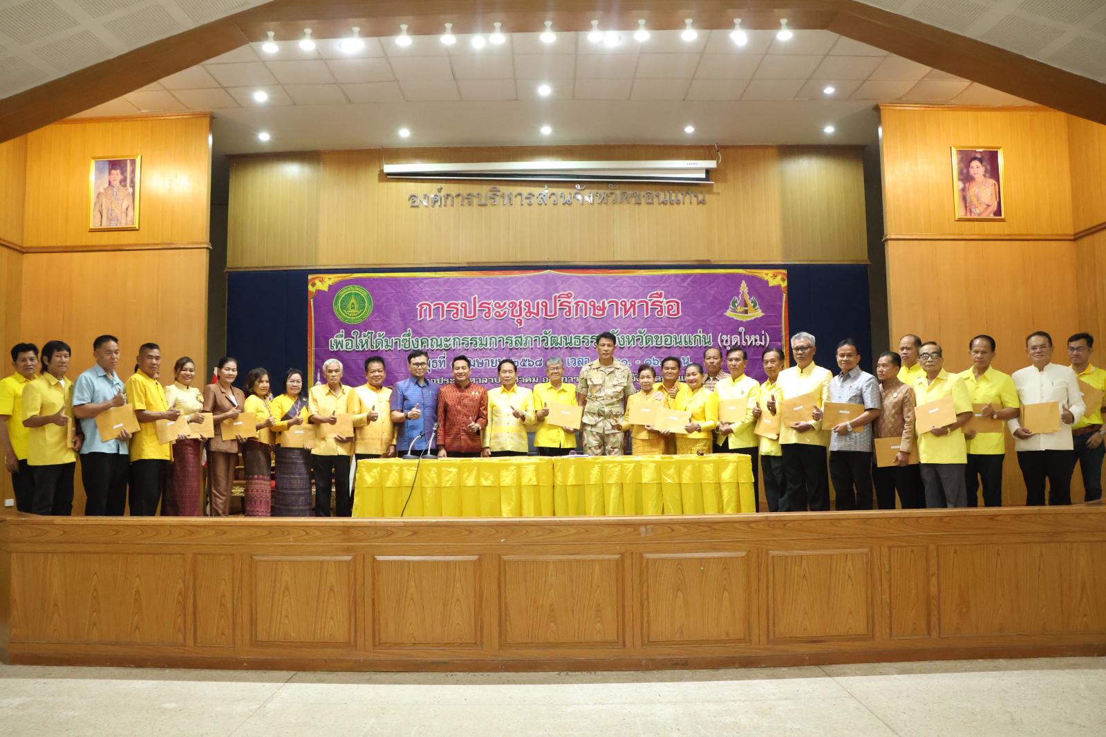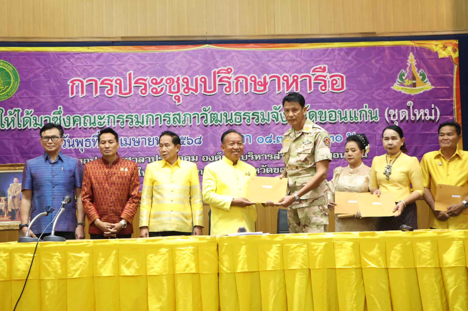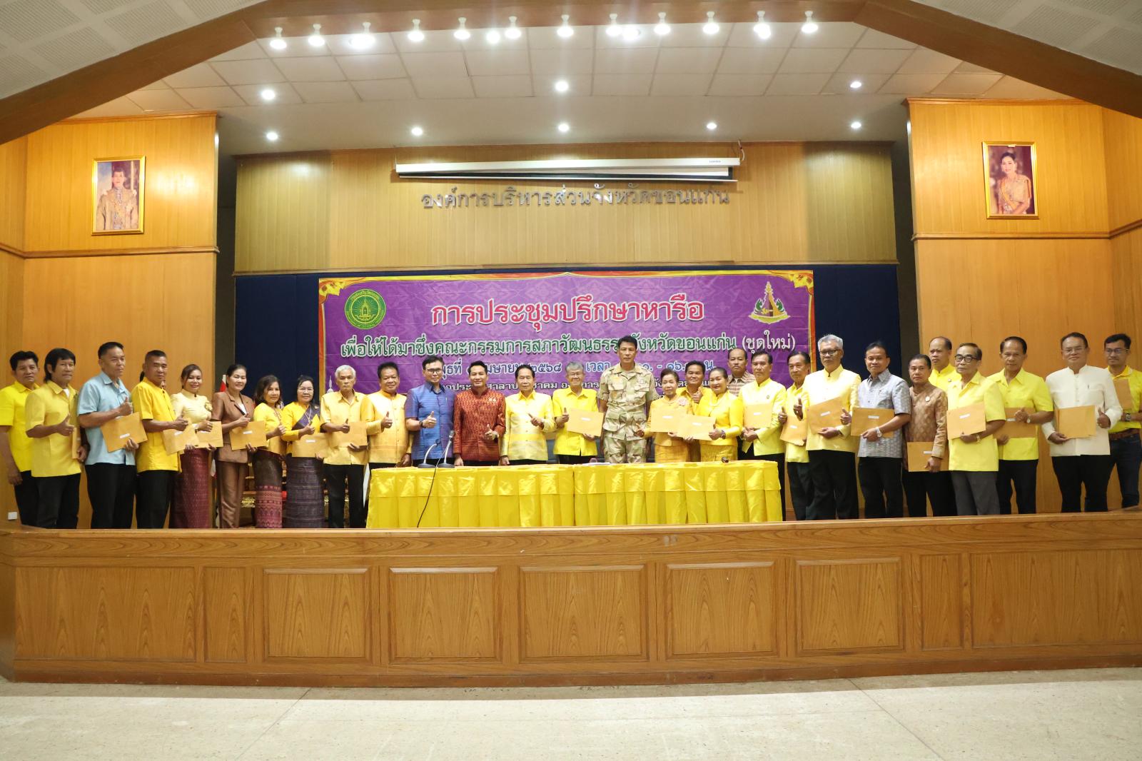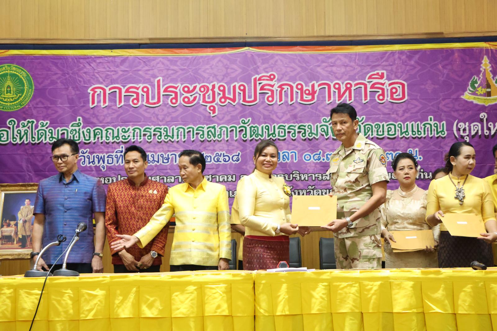 เมื่อวันที่ 9 เมษายน 2568 เวลา 09.30 น. องค์การบริหารส่วนจังหวัดขอนแก่น นำโดย นายวัฒนา ช่างเหลา นายกองค์การบริหารส่วนจังหวัดขอนแก่น มอบหมายให้ นายนาวิน คำเวียง รองนายกองค์การบริหารส่วนจังหวัดขอนแก่น เข้าร่วมสังเกตการณ์ ในการประชุมปรึกษาหารือ เพื่อให้ได้มาซึ่งคณะกรรมการสภาวัฒนธรรมจังหวัดขอนแก่นชุดใหม่ โดยมี นายประจวบ รักแพทย์ รองผู้ว่าราชการจังหวัดขอนแก่น เป็นประธานในพิธี นางศิระดา มะลาสาย วัฒนธรรมจังหวัดขอนแก่นกล่าวต้อนรับ ในโอกาสนี้มี นายวัชระ อันโยธา ศึกษาธิการจังหวัดขอนแก่น นางจิรภา เชื้อดวงผุย พัฒนาการจังหวัดขอนแก่น นางราตรี ศรีวิไล ศิลปินแห่งชาติ ท้องถิ่นจังหวัด พาณิชย์จังหวัด ประธานสภาวัฒนธรรมทั้ง 26 อำเภอ เครือข่ายภาคเอกชน เครือข่ายปราชญ์ชาวบ้านเครือข่ายภาครัฐและประชาชน เข้าร่วมประชุม ณ หอประชุมศาลาประชาคมองค์การบริหารส่วนจังหวัดขอนแก่น อำเภอเมือง จังหวัดขอนแก่น