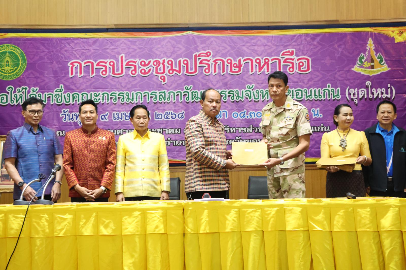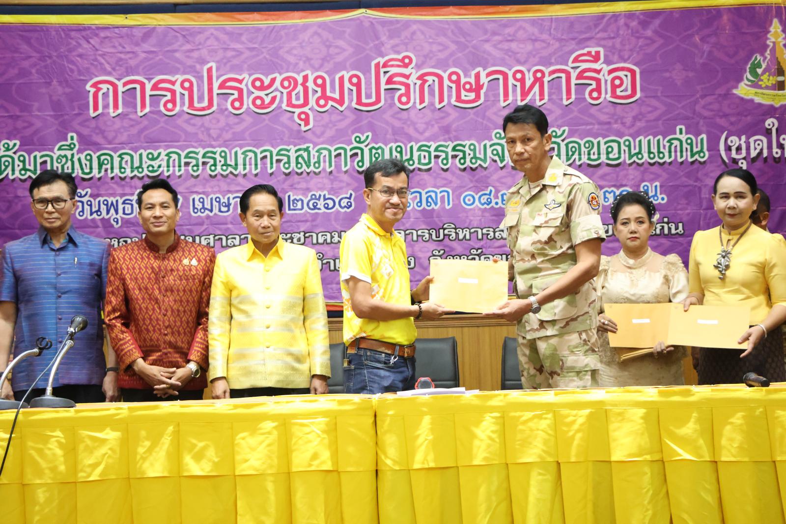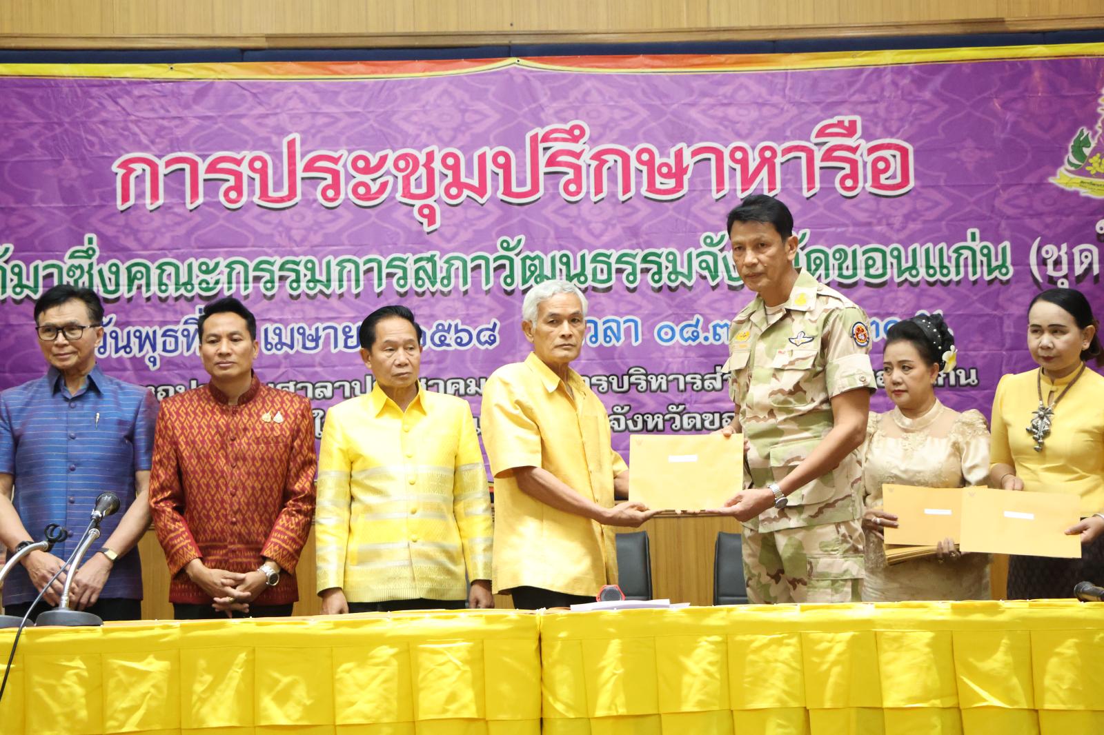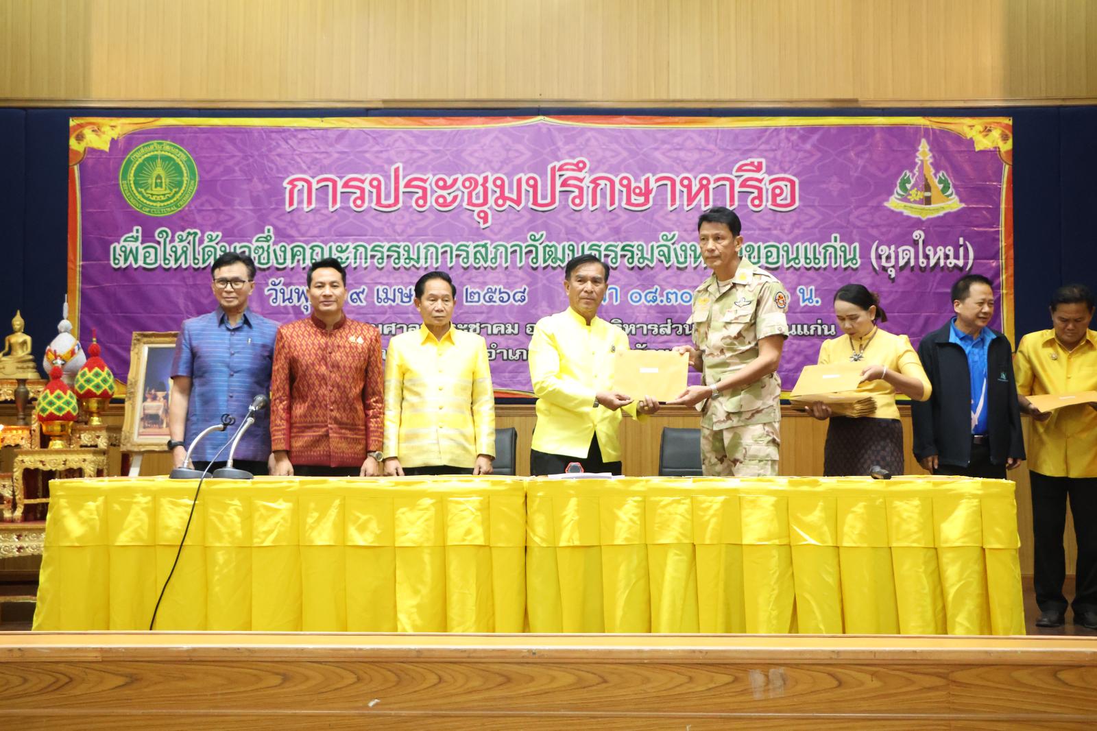 เมื่อวันที่ 9 เมษายน 2568 เวลา 09.30 น. องค์การบริหารส่วนจังหวัดขอนแก่น นำโดย นายวัฒนา ช่างเหลา นายกองค์การบริหารส่วนจังหวัดขอนแก่น มอบหมายให้ นายนาวิน คำเวียง รองนายกองค์การบริหารส่วนจังหวัดขอนแก่น เข้าร่วมสังเกตการณ์ ในการประชุมปรึกษาหารือ เพื่อให้ได้มาซึ่งคณะกรรมการสภาวัฒนธรรมจังหวัดขอนแก่นชุดใหม่ โดยมี นายประจวบ รักแพทย์ รองผู้ว่าราชการจังหวัดขอนแก่น เป็นประธานในพิธี นางศิระดา มะลาสาย วัฒนธรรมจังหวัดขอนแก่นกล่าวต้อนรับ ในโอกาสนี้มี นายวัชระ อันโยธา ศึกษาธิการจังหวัดขอนแก่น นางจิรภา เชื้อดวงผุย พัฒนาการจังหวัดขอนแก่น นางราตรี ศรีวิไล ศิลปินแห่งชาติ ท้องถิ่นจังหวัด พาณิชย์จังหวัด ประธานสภาวัฒนธรรมทั้ง 26 อำเภอ เครือข่ายภาคเอกชน เครือข่ายปราชญ์ชาวบ้านเครือข่ายภาครัฐและประชาชน เข้าร่วมประชุม ณ หอประชุมศาลาประชาคมองค์การบริหารส่วนจังหวัดขอนแก่น อำเภอเมือง จังหวัดขอนแก่น