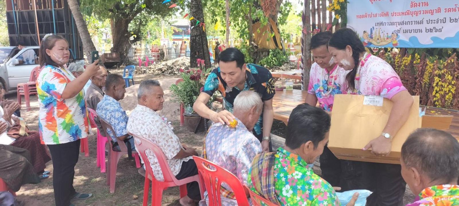 วมกิจกรรมทำบุญทอดผ้าป่าและพิธีรดน้ำดำหัวผู้สูงอายุ เนื่องในประเพณีวันสงกรานต์ ประจำปี 2568