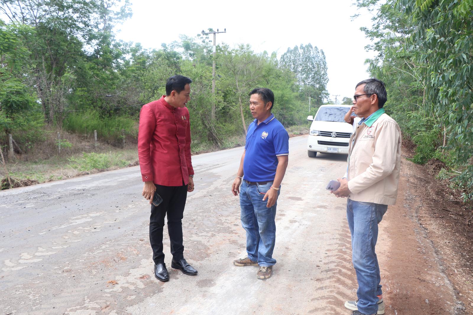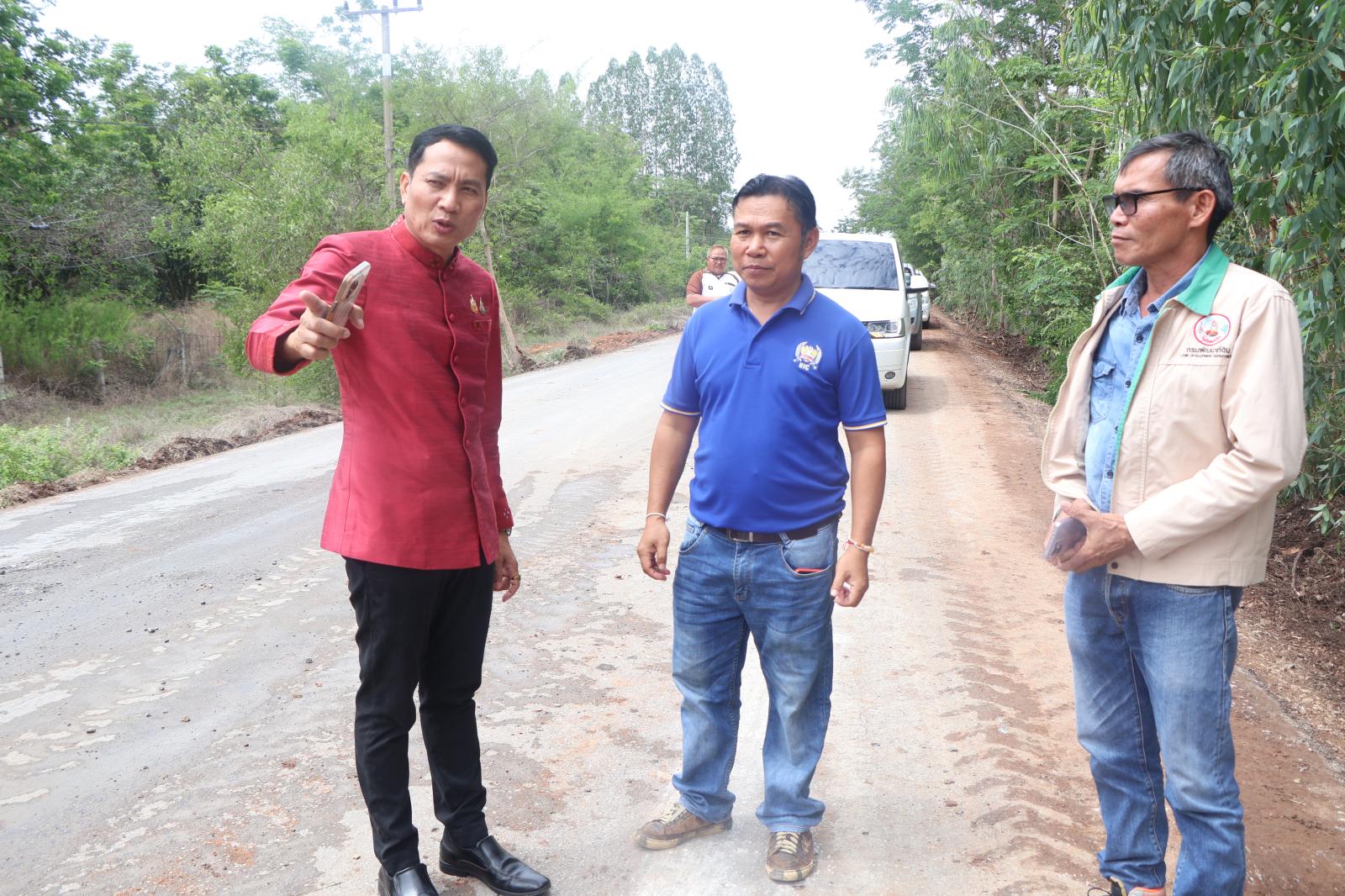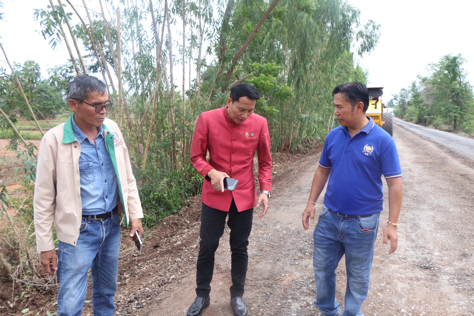 ้นายนาวิน คำเวียง ลงพื้นที่ตรวจถนนเส้น บ้านหนองบัว-บ้านคำหัวช้าง