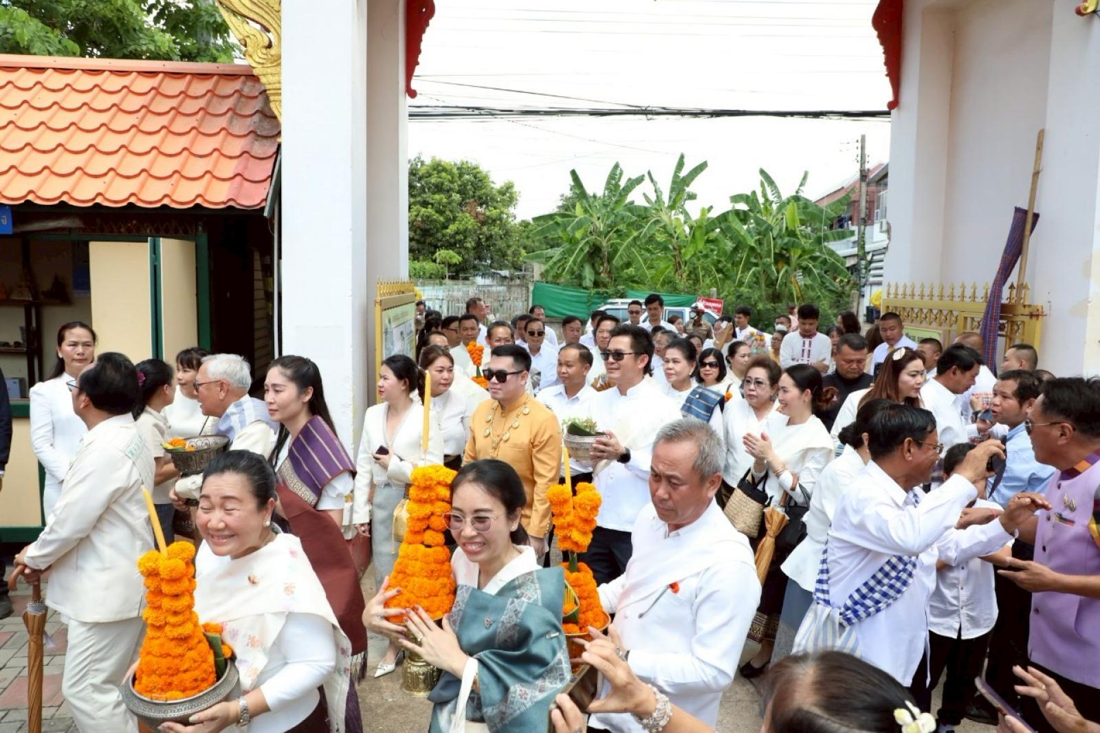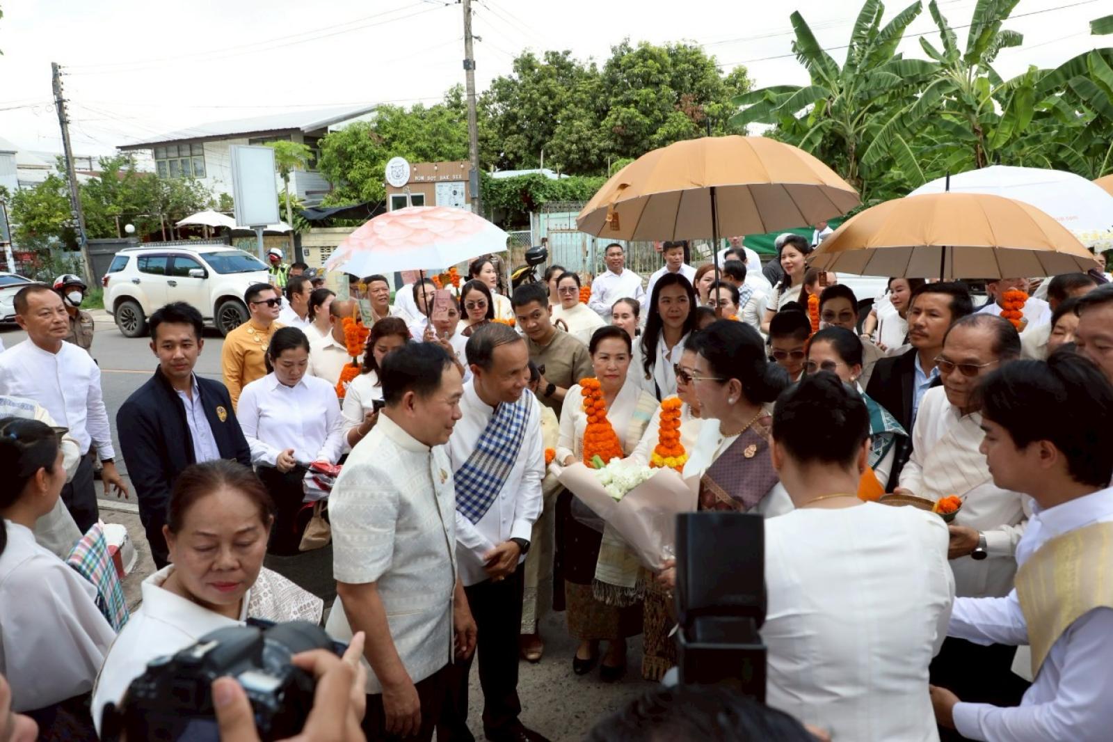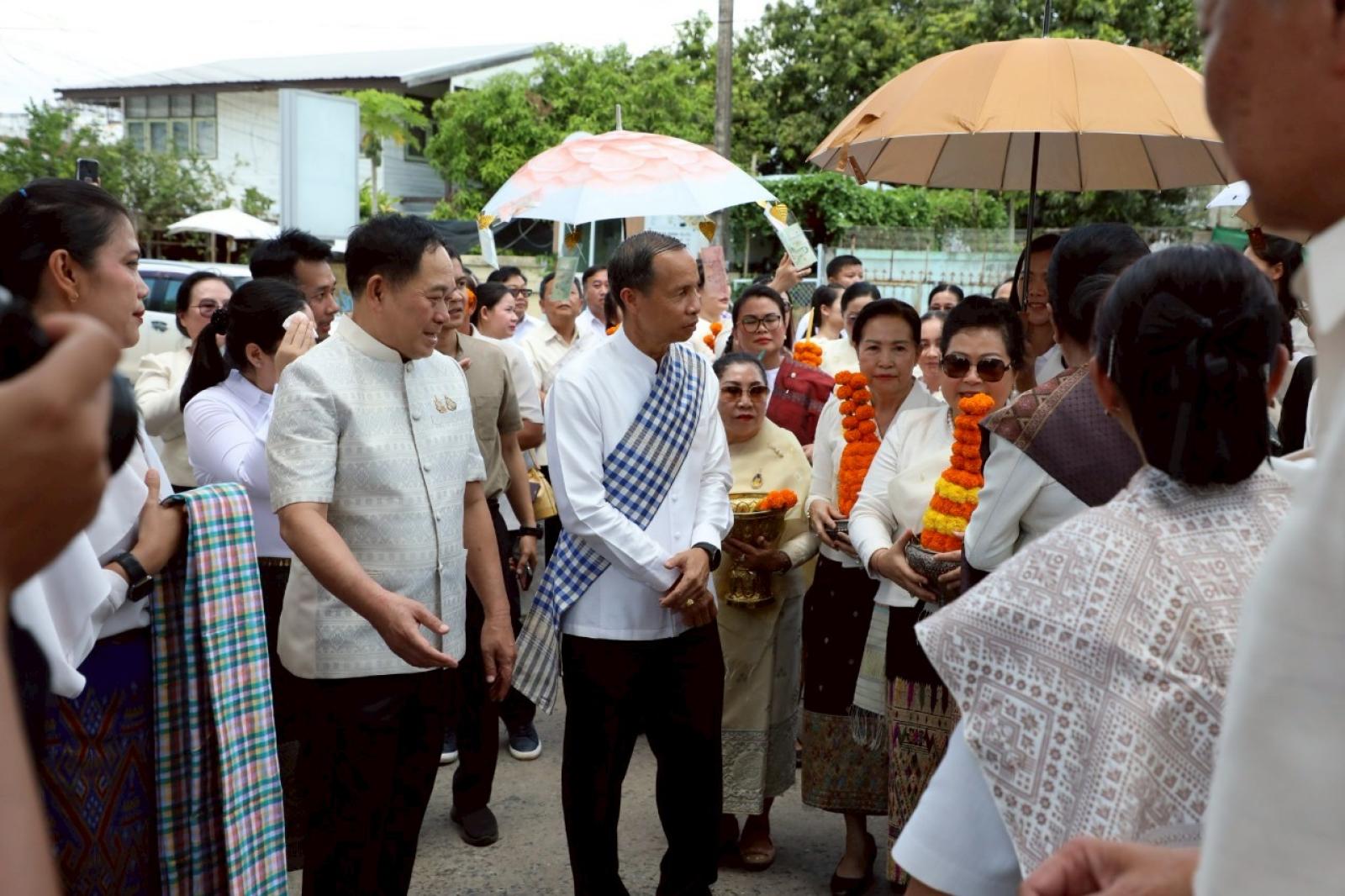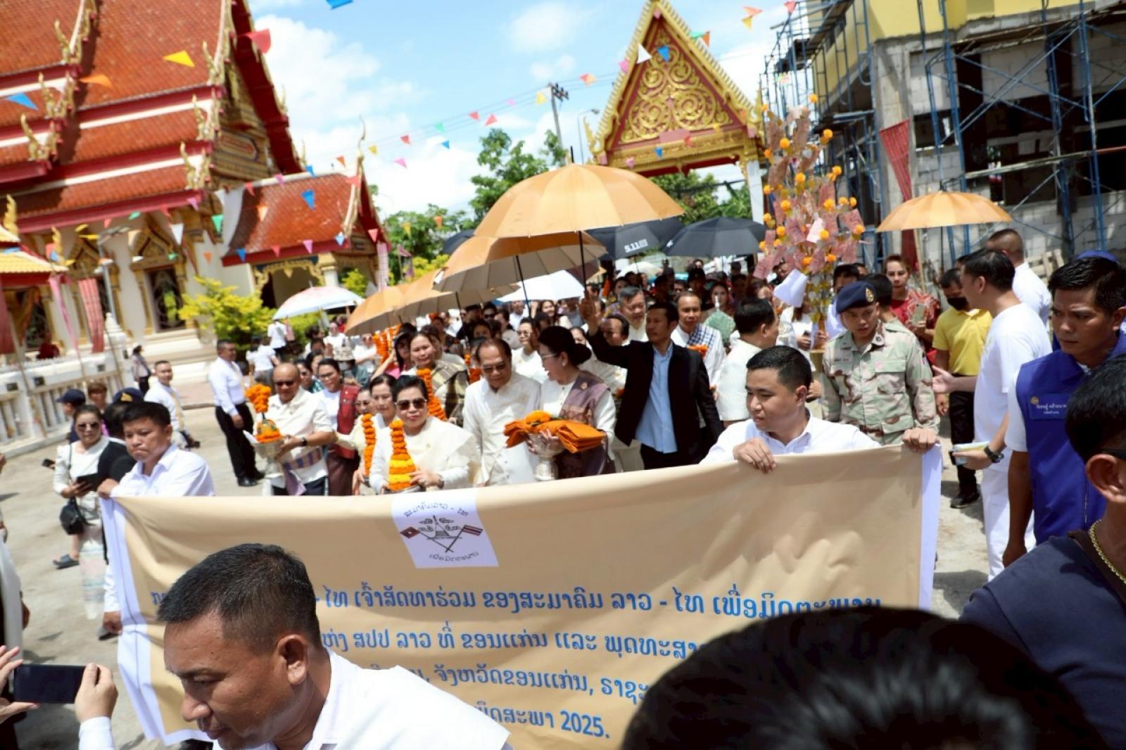 เพื่อร่วมเฉลิมฉลองเนื่องในวันสถาปนาความสัมพันธ์ทางการทูตลาว -ไทยครบรอบ 75 ปี และวันก่อตั้งสมาคมมิตรภาพลาว-ไทย โดยมีนายไกรสร กองฉลาด ผู้ว่าราชการจังหวัดขอนแก่น ร่วมต้อนรับในพิธี ณ วัดศรีนวล ตำบลในเมือง อำเภอเมืองขอนแก่น จังหวัดขอนแก่น
