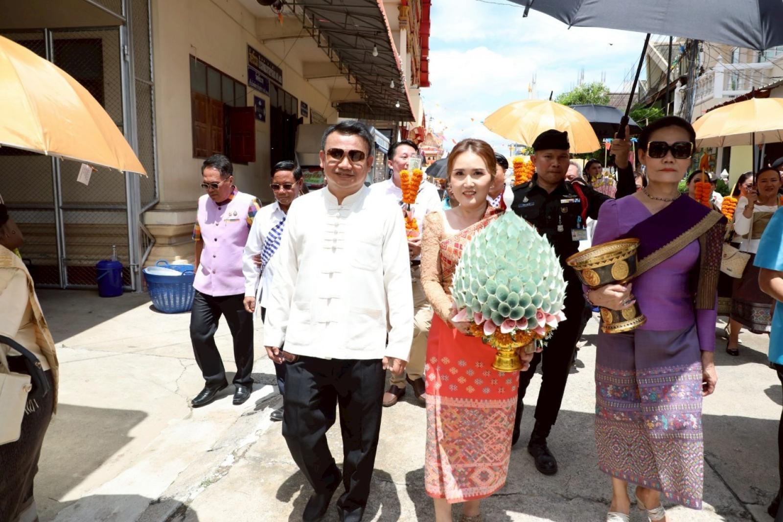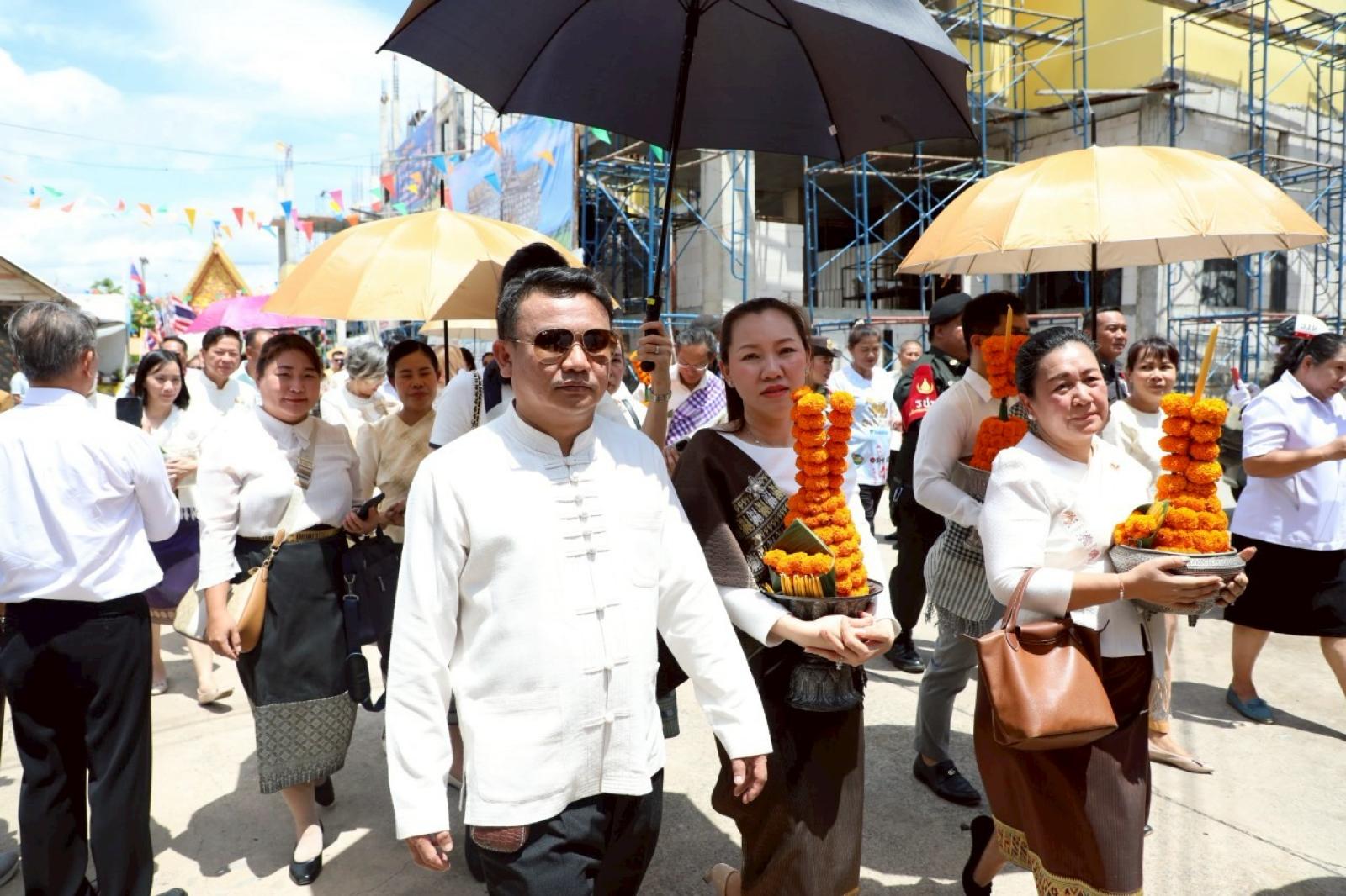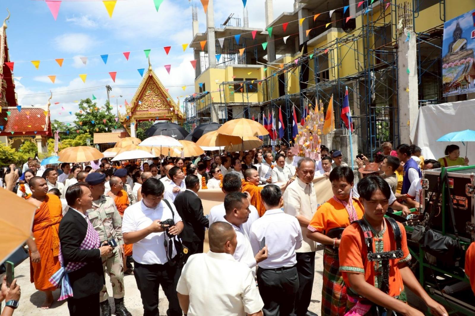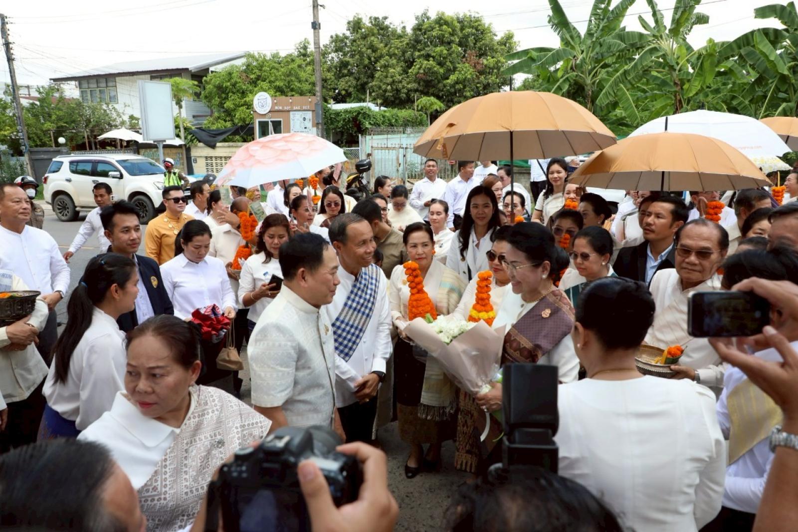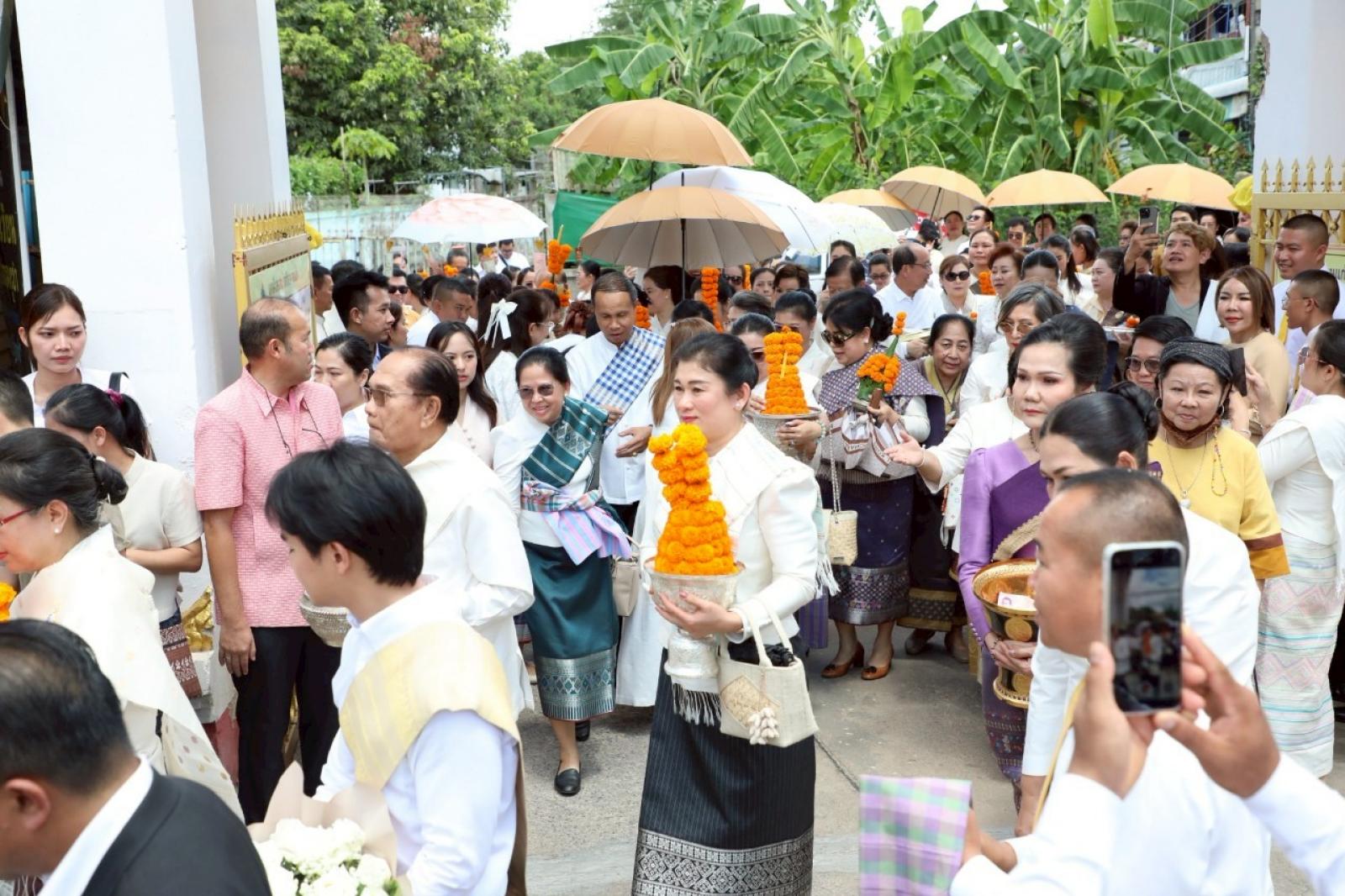 เพื่อร่วมเฉลิมฉลองเนื่องในวันสถาปนาความสัมพันธ์ทางการทูตลาว -ไทยครบรอบ 75 ปี และวันก่อตั้งสมาคมมิตรภาพลาว-ไทย โดยมีนายไกรสร กองฉลาด ผู้ว่าราชการจังหวัดขอนแก่น ร่วมต้อนรับในพิธี ณ วัดศรีนวล ตำบลในเมือง อำเภอเมืองขอนแก่น จังหวัดขอนแก่น