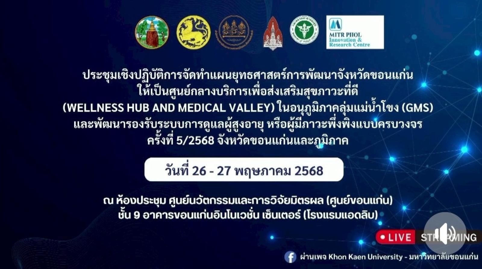 ในวันที่ 26 พฤษภาคม 2568 เวลา 09.30 น. องค์การบริหารส่วนจังหวัดขอนแก่น นำโดย นายวัฒนา ช่างเหลา นายกองค์การบริหารส่วนจังหวัดขอนแก่น มอบหมายให้ ว่าที่ร้อยเอกพงเจตน์ พรกุณา ปลัดองค์การบริหารส่วนจังหวัดขอนแก่น ร่วมประชุมเชิงปฏิบัติการจัดทำแผนยุทธศาสตร์การพัฒนาจังหวัดขอนแก่น ให้เป็นส่วนศูนย์กลางบริการเพื่อส่งเสริมสุขภาวะที่ดี (wellness hub and medical valley) ในอนุภูมิภาคลุ่มแม่น้ำโขง(GMS) และพัฒนารองรับระบบการดูแลผู้สูงอายุหรือผู้มีภาวะพึ่งพิงแบบครบวงจร ครั้งที่ 5/2568 จังหวัดขอนแก่นและภูมิภาค และร่วมอภิปรายเรื่องศักยภาพและทิศทางการพัฒนาจังหวัดขอนแก่น สู่การเป็น Wellness hub ภายใต้ยุทธศาสตร์ชาติและแผนพัฒนาในระดับต่างๆ ณห้องประชุม ศูนย์นวัตกรรมและการวิจัยมิตรผล (ศูนย์ขอนแก่น) ชั้น 9 อาคารขอนแก่น innovation Center โรงแรมแอดลีบ ต.ในเมือง อ.เมือง จ.ขอนแก่น