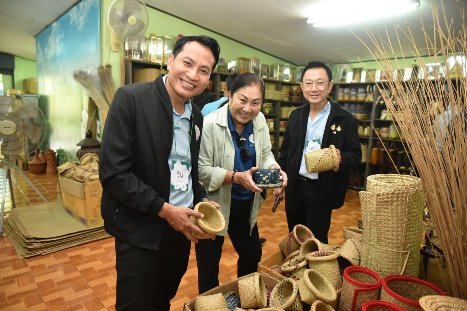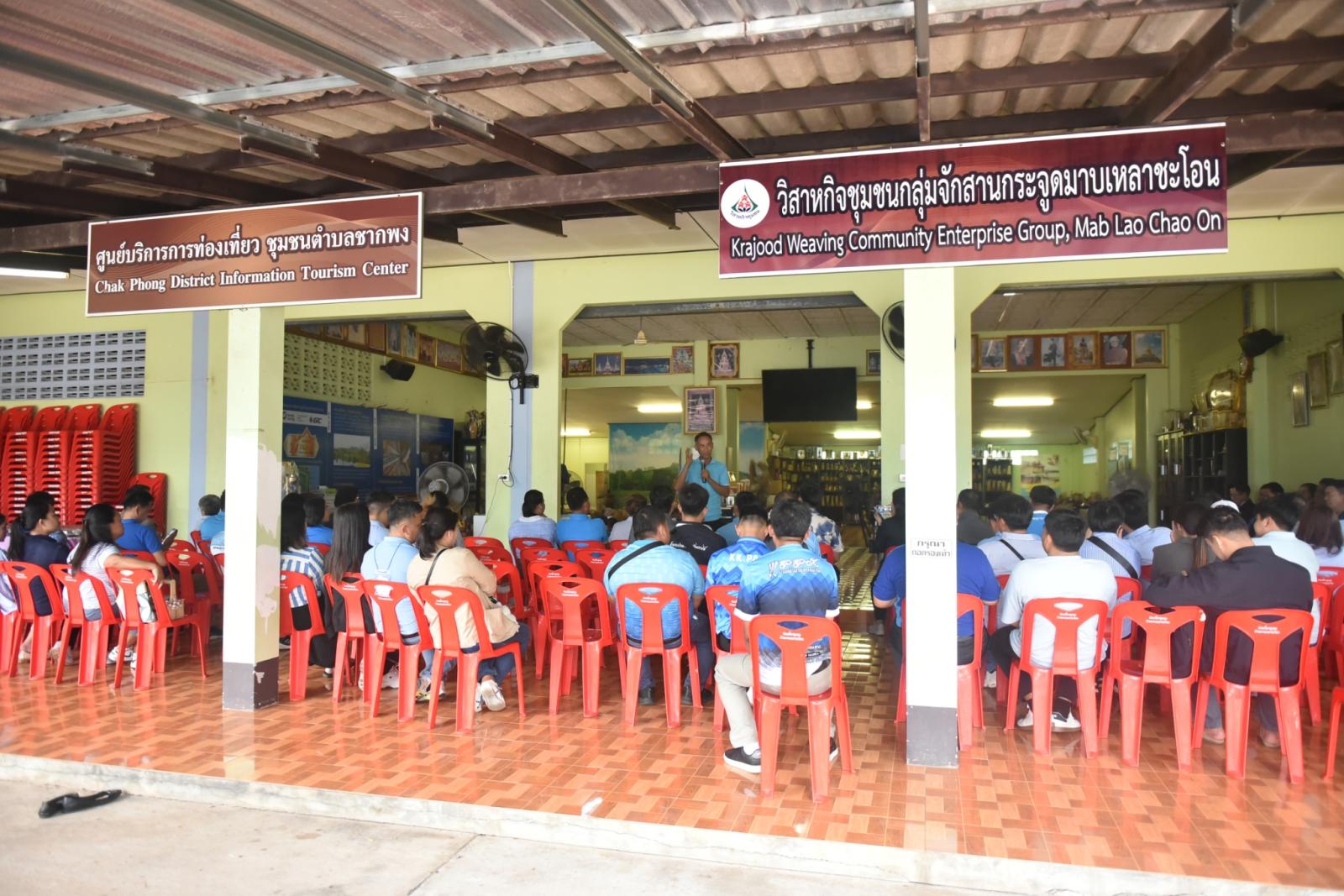 3. ศึกษาดูงานด้านการนำวัสดุในท้องถิ่นมาเพิ่มมูลค่า การสร้างงานสร้างอาชีพให้แก่คนในชุมชน ณ วิสาหกิจชุมชนบ้านมาบชะโอน ต.ซากพง อ.แกลง จ.ระยอง โดยมี นายมนตรี ยิ้มเยื้อน ประธานวิสาหกิจชุมชนกลุ่มจักสานกระจูดมาบเหลาชะโอน บรรยายให้ความรู้และให้การต้อนรับ