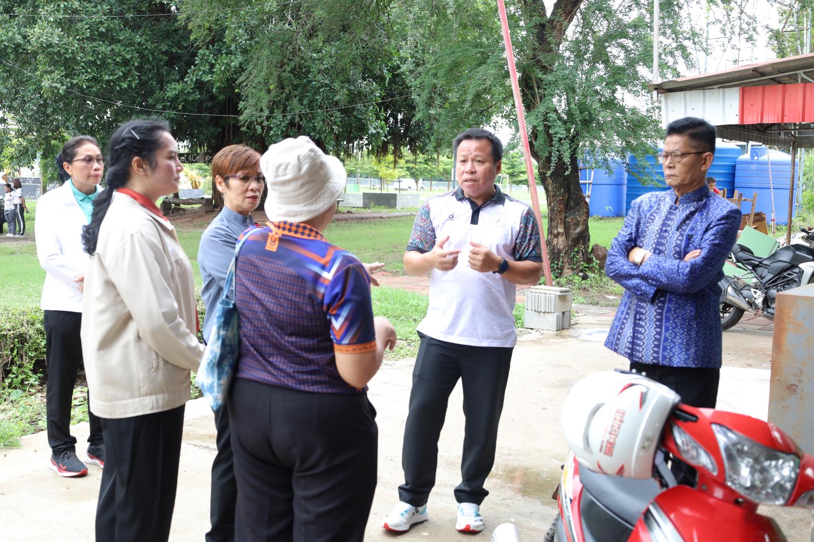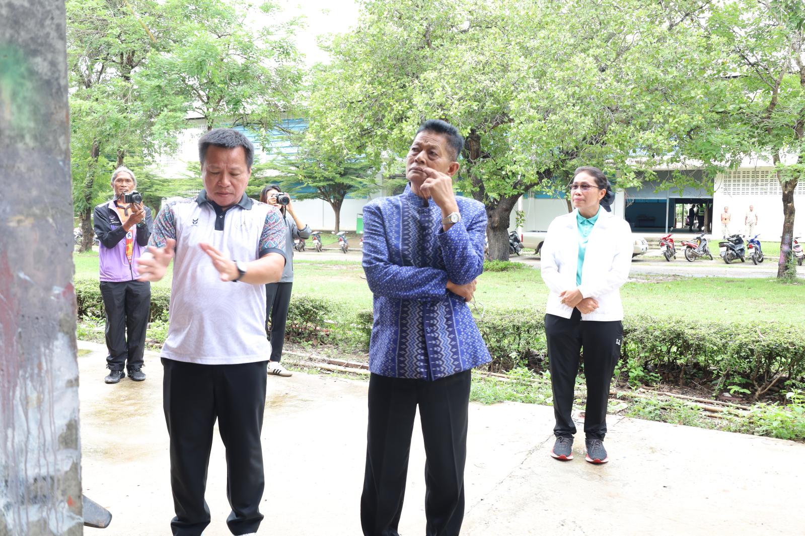 ตรวจเยี่ยมโรงเรียน อาคาร ห้องพักนักกีฬา โรงเรียนพระยืนวิทยาคาร และโรงเรียนศรีเสมาวิทยาเสริม