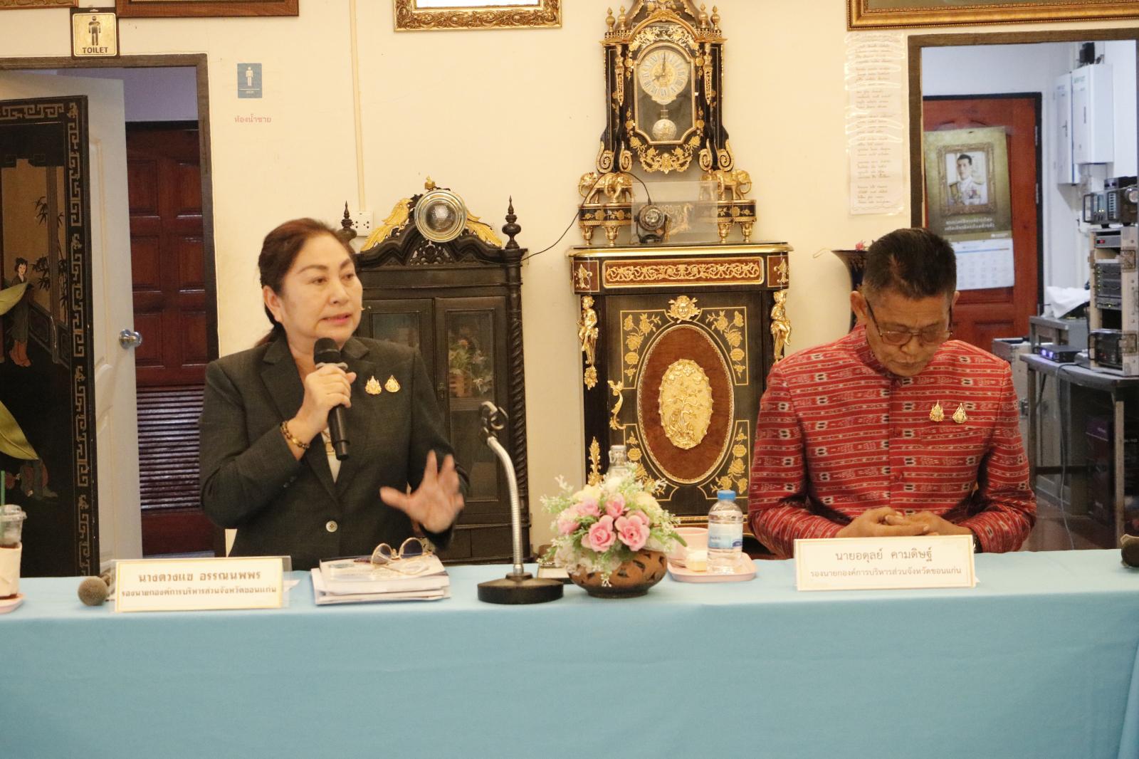 เมื่อวันที่ 25 มิถุนายน 2568 เวลา 09.00น. องค์การบริหารส่วนจังหวัดขอนแก่น นำโดย นายวัฒนา ช่างเหลา นายกองค์การบริหารส่วนจังหวัดขอนแก่น มอบหมายให้ นางดวงแข อรรณนพพร รองนายกองค์การบริหารส่วนจังหวัดขอนแก่น เป็นประธานการประชุมนิเทศติดตามและประเมินผลงาน ของสถานีอนามัยเฉลิมพระเกียรติ 60 พรรษา นวมินทราชินี และโรงพยาบาลส่งเสริมสุขภาพตำบล ประจำปี 2568 (โซนที่ 1 ประกอบด้วย อ.อุบลรัตน์ อ.น้ำพอง อ.เขาสวนกวาง อ.กระนวน) โดยมี นายสุนิตร นาทัน ผู้อำนวยการโรงพยาบาลส่งเสริมสุขภาพตำบลม่วงหวาน กล่าวรายงานการประชุม ในโอกาสนี้มี นายสมเกียรติ ชูศรีทอง หัวหน้าฝ่ายบริหารงานสาธารณสุข องค์การบริหารส่วนจังหวัดขอนแก่น นายรวีสิน แวงโสธรณ์ ส.อบจ.ขอนแก่น อำเภอน้ำพอง เขต2 นายเอกชัย สืบสารคาม ส.อบจ.ขอนแก่น อำเภอกระนวน เขต1 นางกรรณิการ์ สืบสารคาม ส.อบจ.ขอนแก่น อำเภอกระนวน เขต2 นายรุ่งโรจน์ เย็นสบายส.อบจ.ขอนแก่น อำเภออุบลรัตน์ นายธนะวัฒน์ เต็มธนกิจไพศาล ส.อบจ.ขอนแก่น อำเภอเขาสวนกวาง ผอ.และเจ้าหน้าที่ รพ.สต. เข้าร่วมประชุม ณ ห้องประชุมโรงแรมเจ็ดพี่น้อง อ.อุบลรัตน์ จ.ขอนแก่น