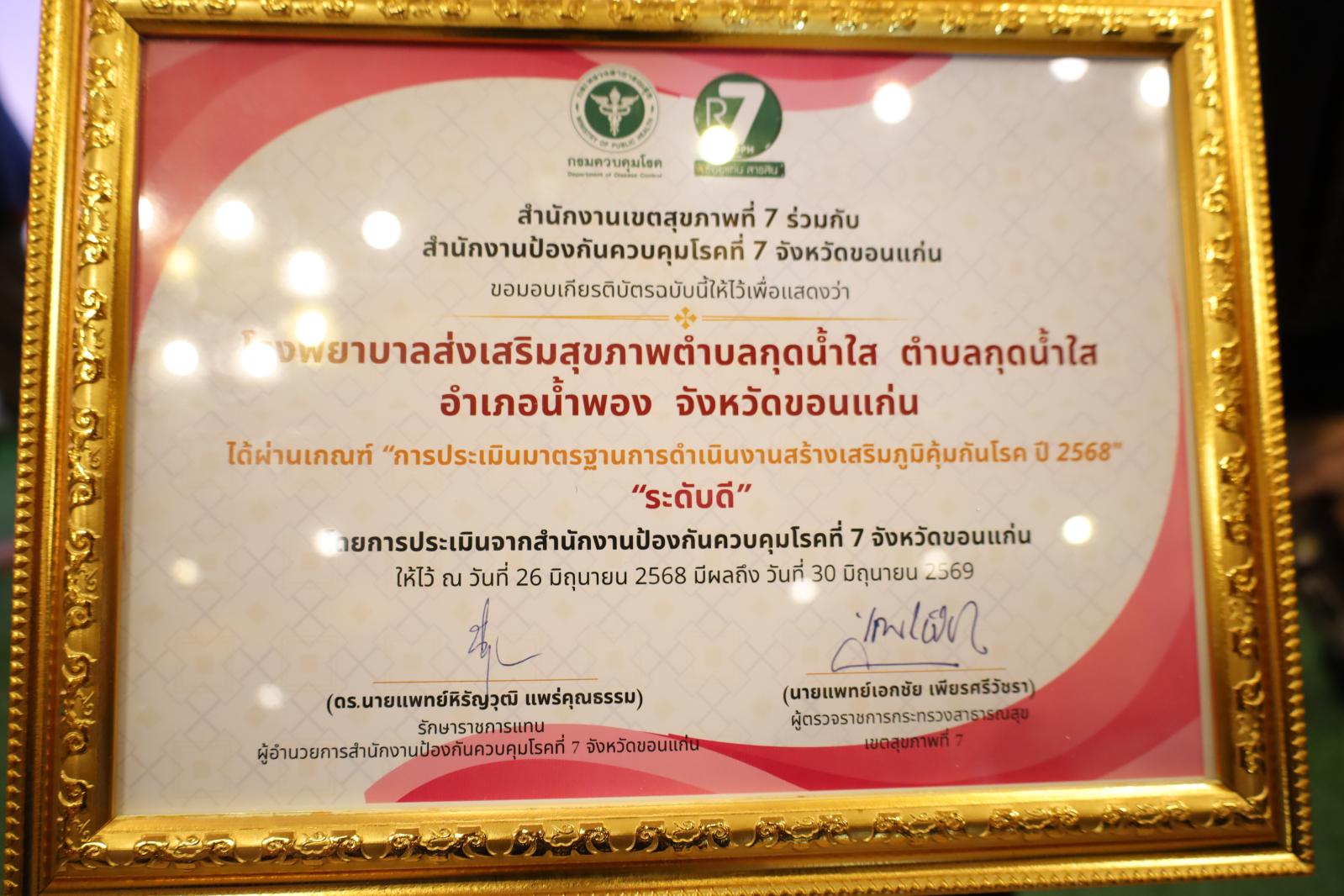 เข้ารับใบประกาศนียบัตร “การประเมินมาตรฐานการดำเนินงานสร้างเสริมภูมิคุ้มกันโรค เขตสุขภาพที่ 7 ประจำปีงบประมาณ 2568”
